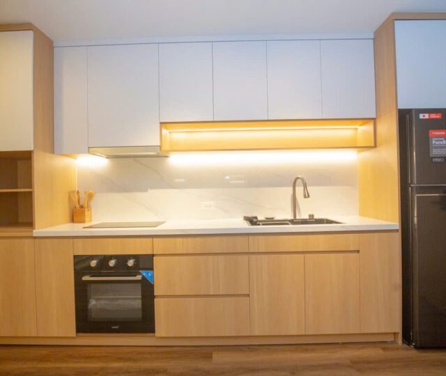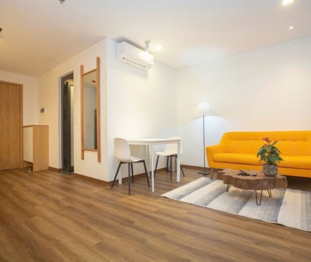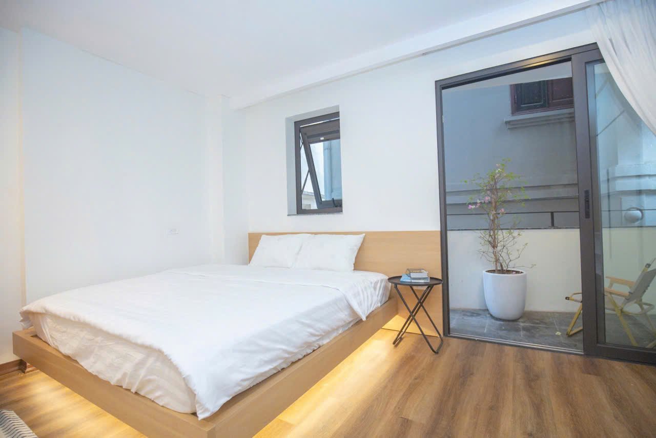Discover this modern studio apartment on Xuan Dieu, Tay Ho. This bright, open-plan space features a full kitchen with an oven, a private balcony, and stylish Scandinavian-inspired decor. Ideal for a chic city lifestyle.