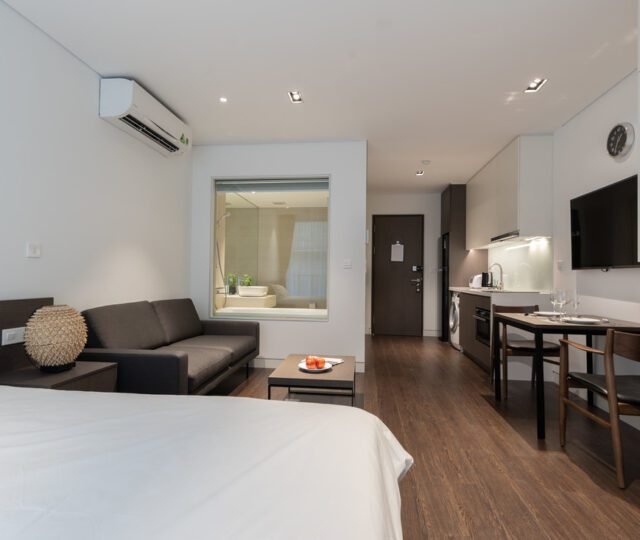 Discover urban living at its finest in this modern studio apartment at the Sweethome Building on To Ngoc Van. Featuring sleek design, ample natural light, and top-notch amenities, this cozy space is perfect for city dwellers. Enjoy a vibrant neighborhood with cafes, shops, and parks just steps away. Experience comfort and convenience in one stylish package!