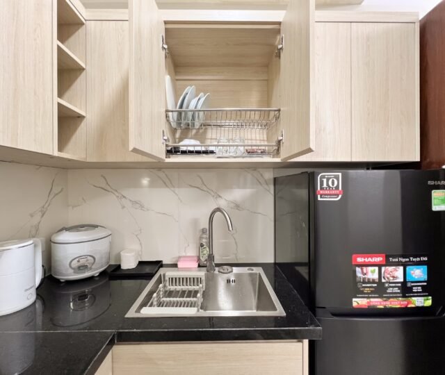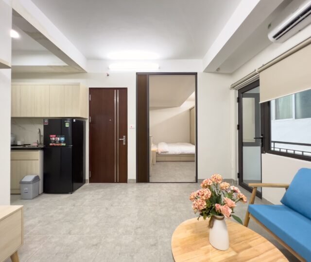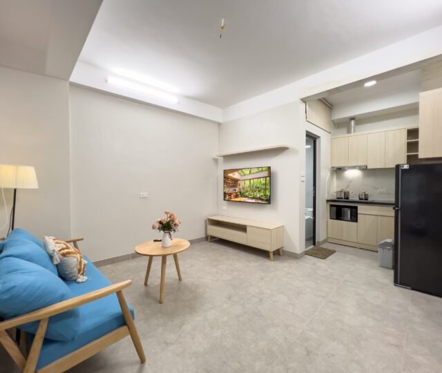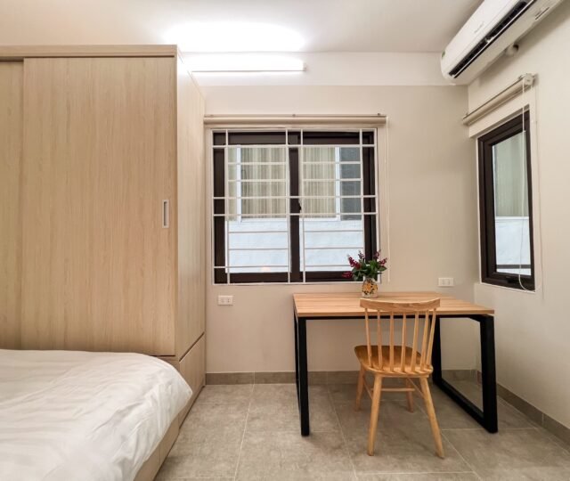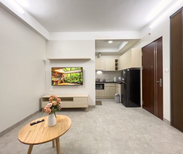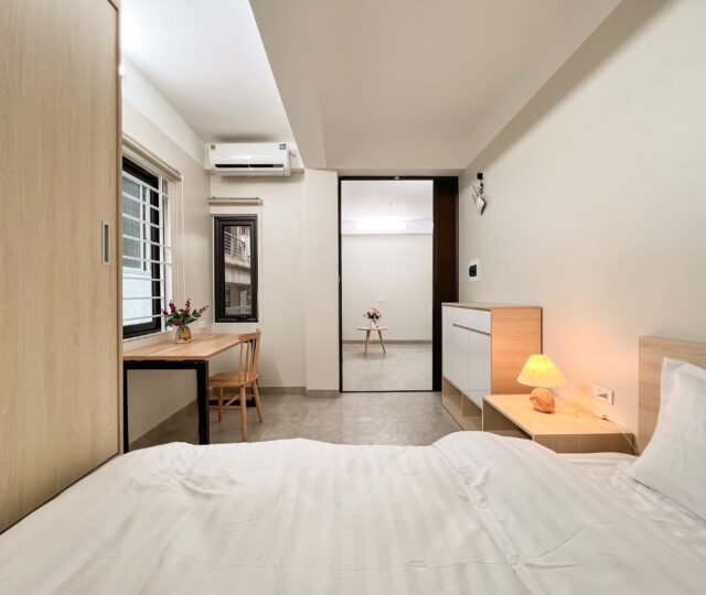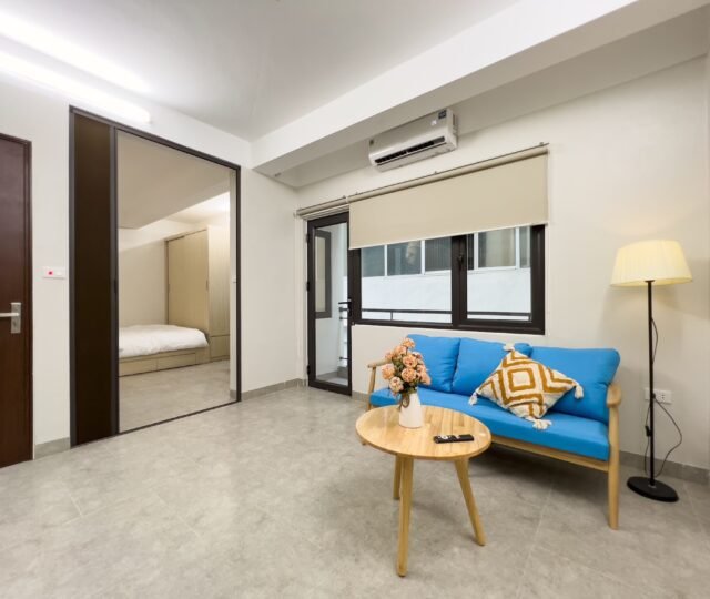 Explore this modern one-bedroom apartment at 90 Buoi, Ba Dinh, Hanoi. It is fully furnished, in a prime location, and perfect for comfortable city living.