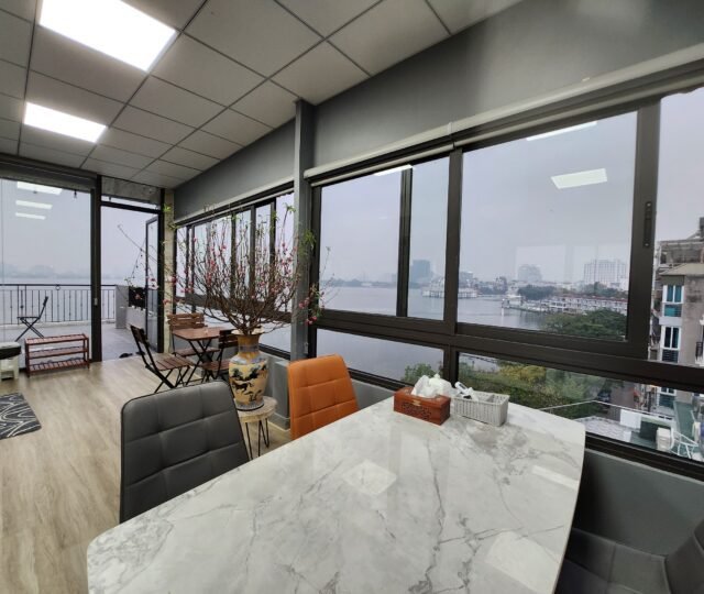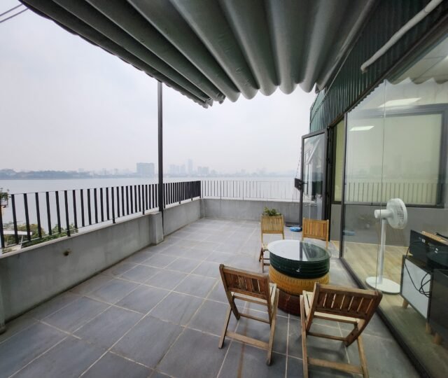 Perched at the top of a quiet building in the peaceful Vu Mien peninsula (Yen Phu Village), this unique penthouse studio apartment offers unmatched tranquility and panoramic views over West Lake.