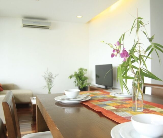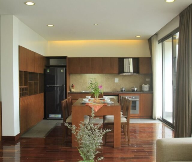 This cozy 2-bedroom apartment on Quang Khanh Street offers a homely atmosphere and a scenic lake view balcony. Available for long-term and short-term rentals, it provides a comfortable and charming living space in Hanoi. The apartment features well-furnished rooms, a fully equipped kitchen, and a dining area. Located in a convenient neighborhood with access to amenities and transportation, it is an ideal choice for a home-away-from-home experience.