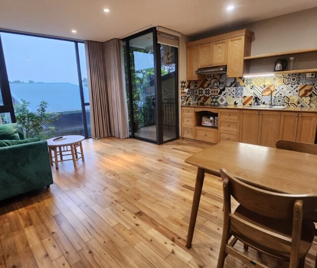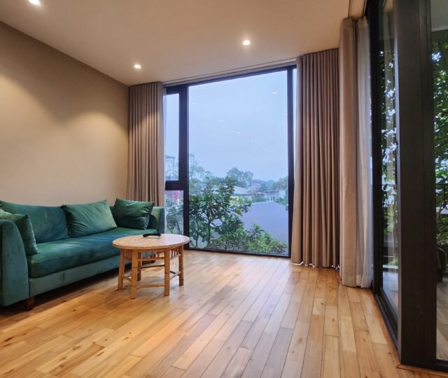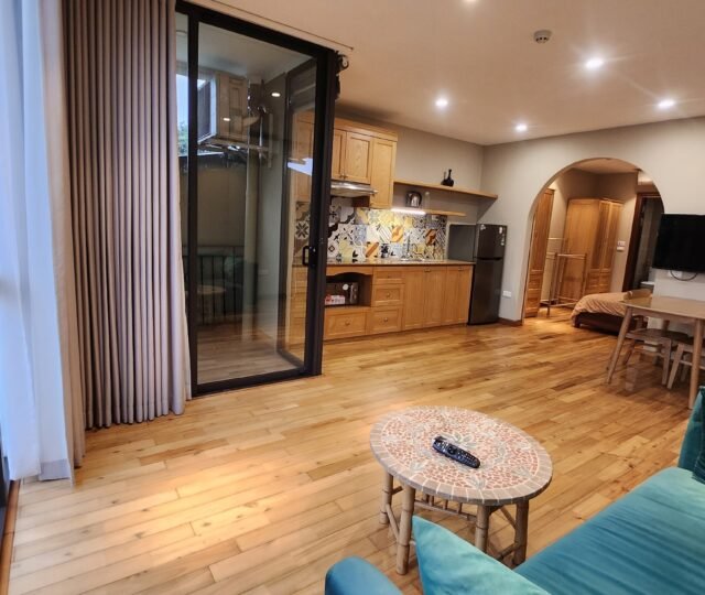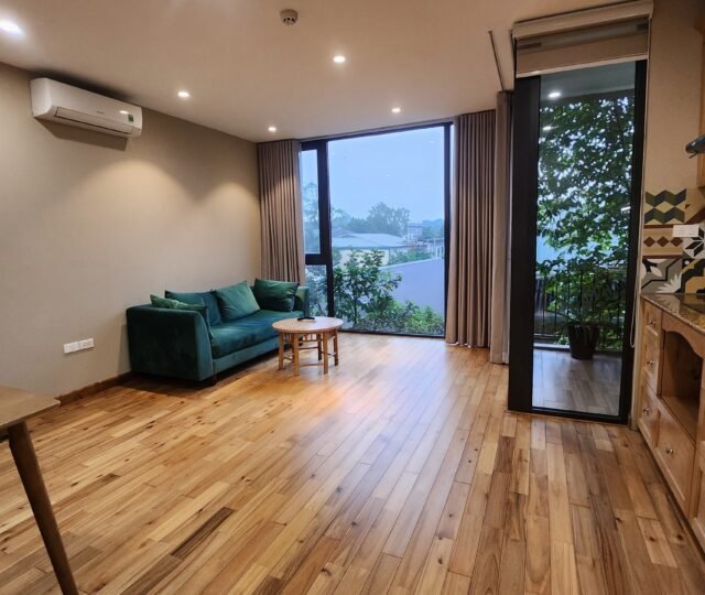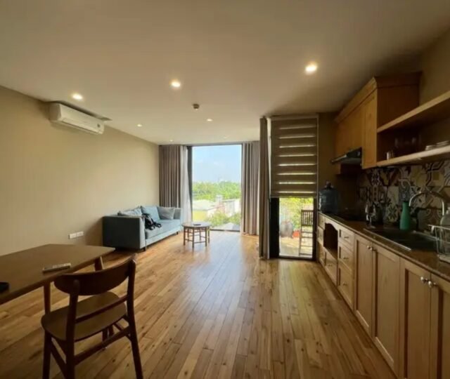 Experience modern comfort and classic elegance in this charming 1-bedroom apartment in sought-after Xom Chua. Wooden floors, a balcony, and a luxurious bathtub create a delightful ambiance. The living area is cozy with ample natural light and serene neighborhood views. The bedroom offers tranquility with natural light and an ensuite luxurious bathroom with a bathtub. Nestled in Xom Chua, this apartment offers a peaceful retreat in the heart of the city, perfect for both everyday living. Discover your new home today!