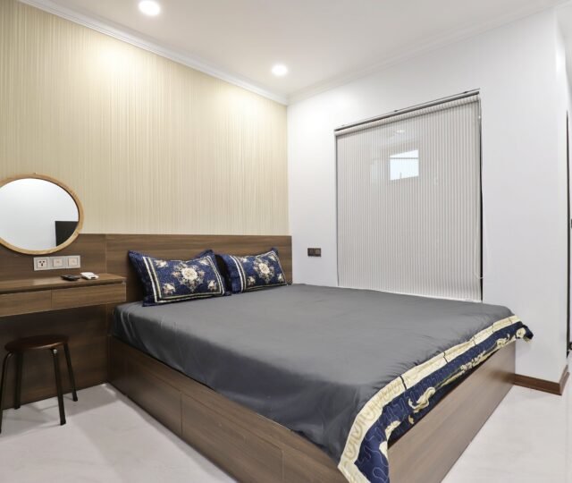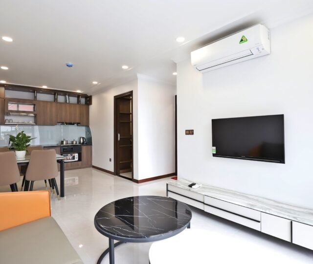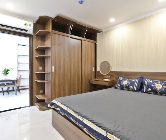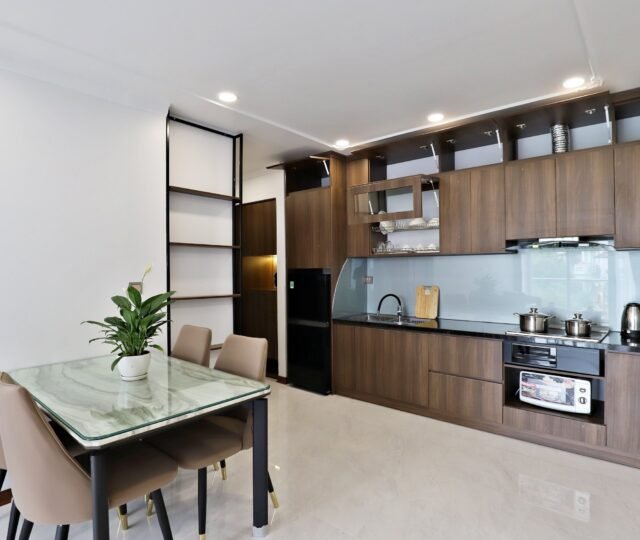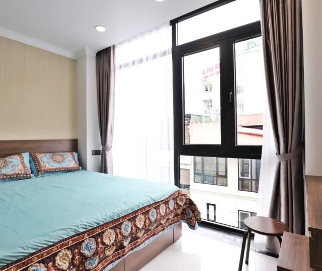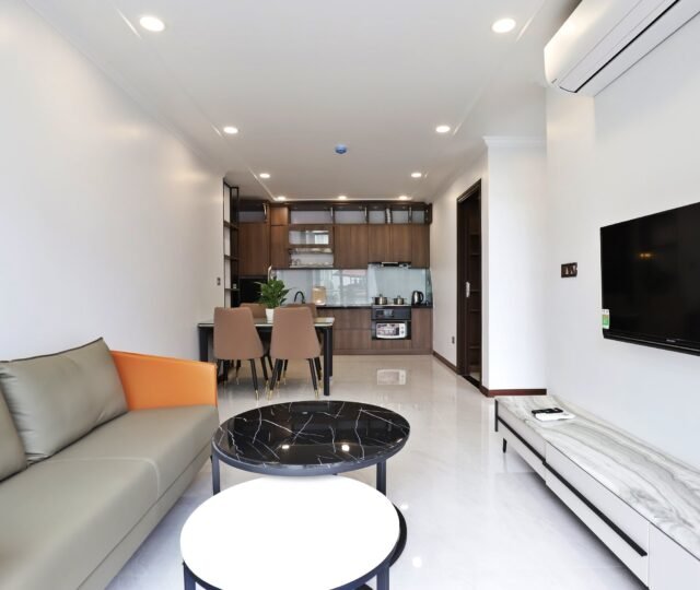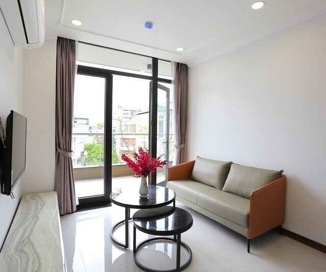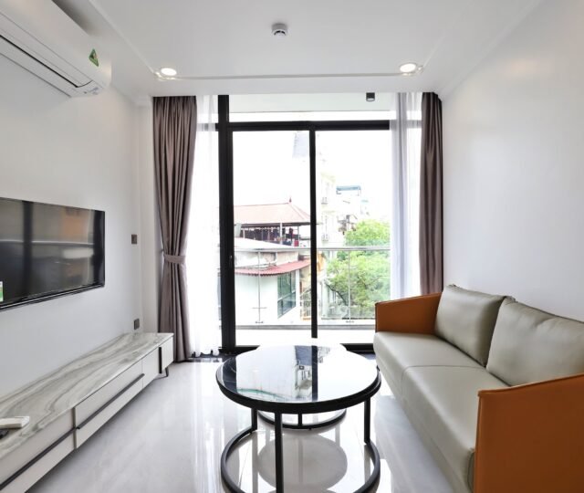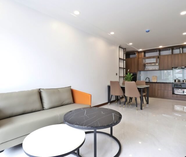 Modern 2-bedroom serviced apartment on Truc Bach Island, Hanoi. Fully furnished with contemporary design, housekeeping service, and city views – ideal for comfort and convenience.
