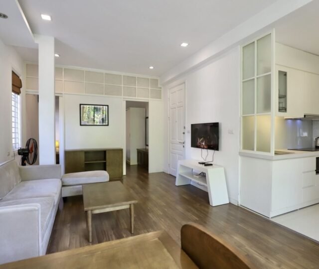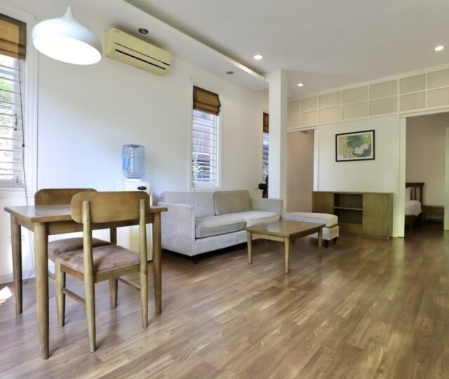 Located at 29 Nguyen Chi Thanh Street. Conveniently located near Ngoc Khanh Lake, Lotte Shopping Center, and Sunny Hotel, with numerous restaurants, cafes, and stores nearby. Each 60m² apartment features 1 bedroom, 1 bathroom with a bathtub, and an open-plan living and kitchen area. Fully furnished with wooden floors, large windows for natural light, and a balcony with a street view. Enjoy 24/7 management, high-speed internet, daily cleaning, and additional services like maintenance, pest control, and laundry. Perfect for expats seeking comfort and convenience in Hanoi.