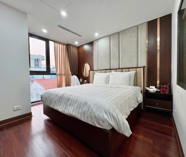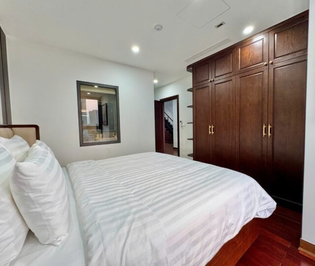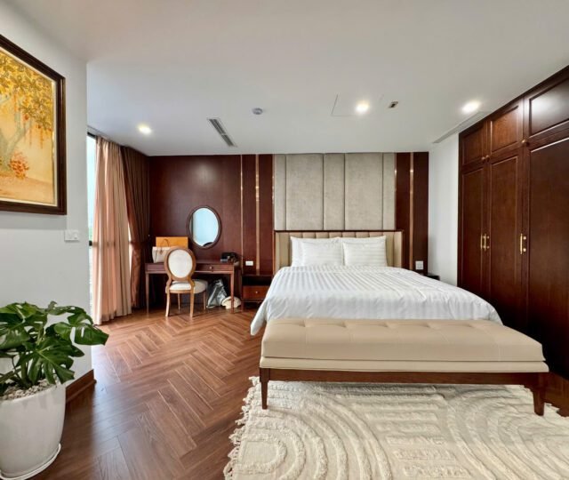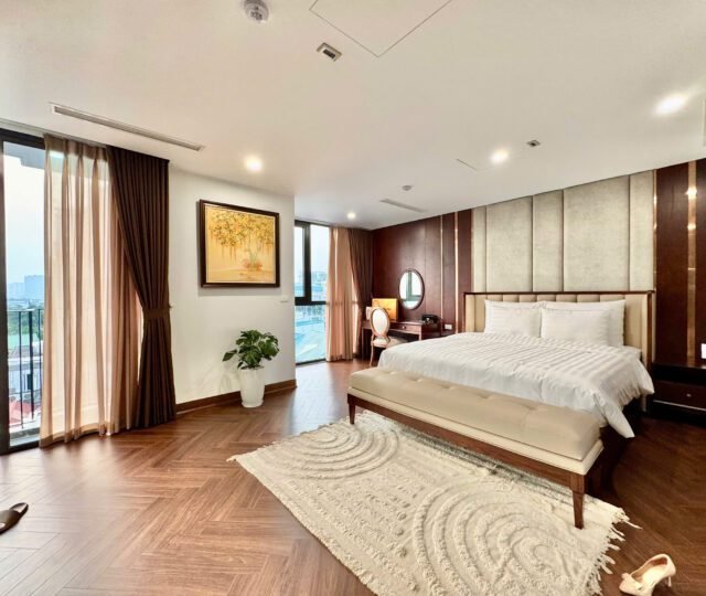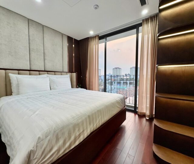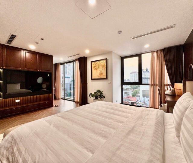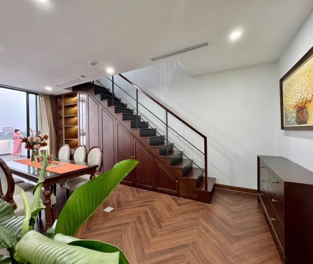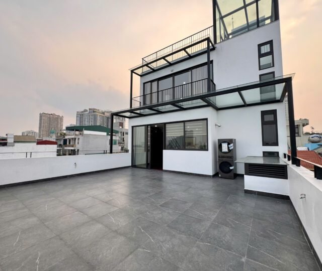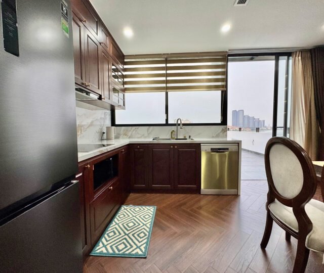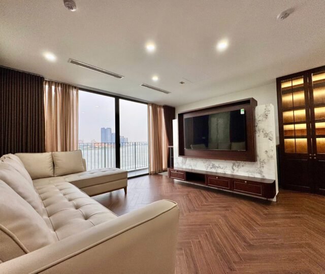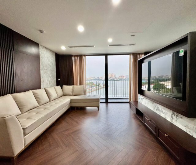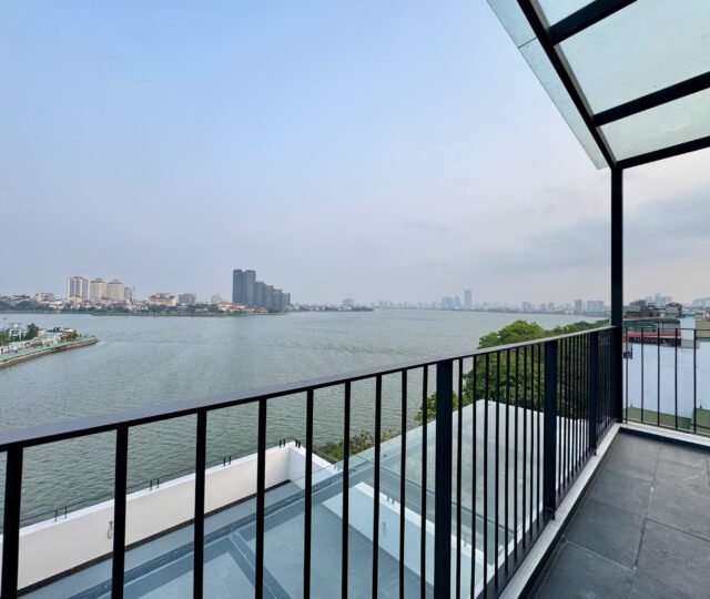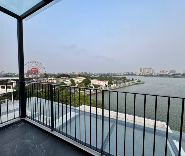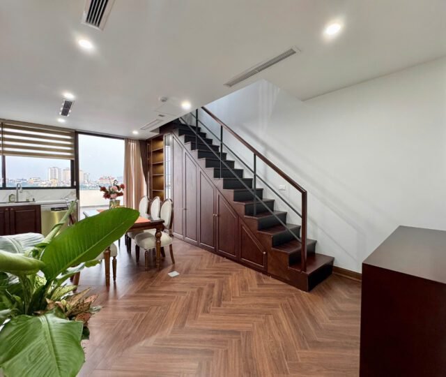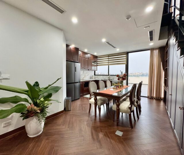 Spacious 3-bedroom duplex apartment for rent on Nhat Chieu Street, Tay Ho—200 sqm with stunning lake view, large balcony, modern furniture, and full amenities. Rent includes internet, cable TV, water, and cleaning service.