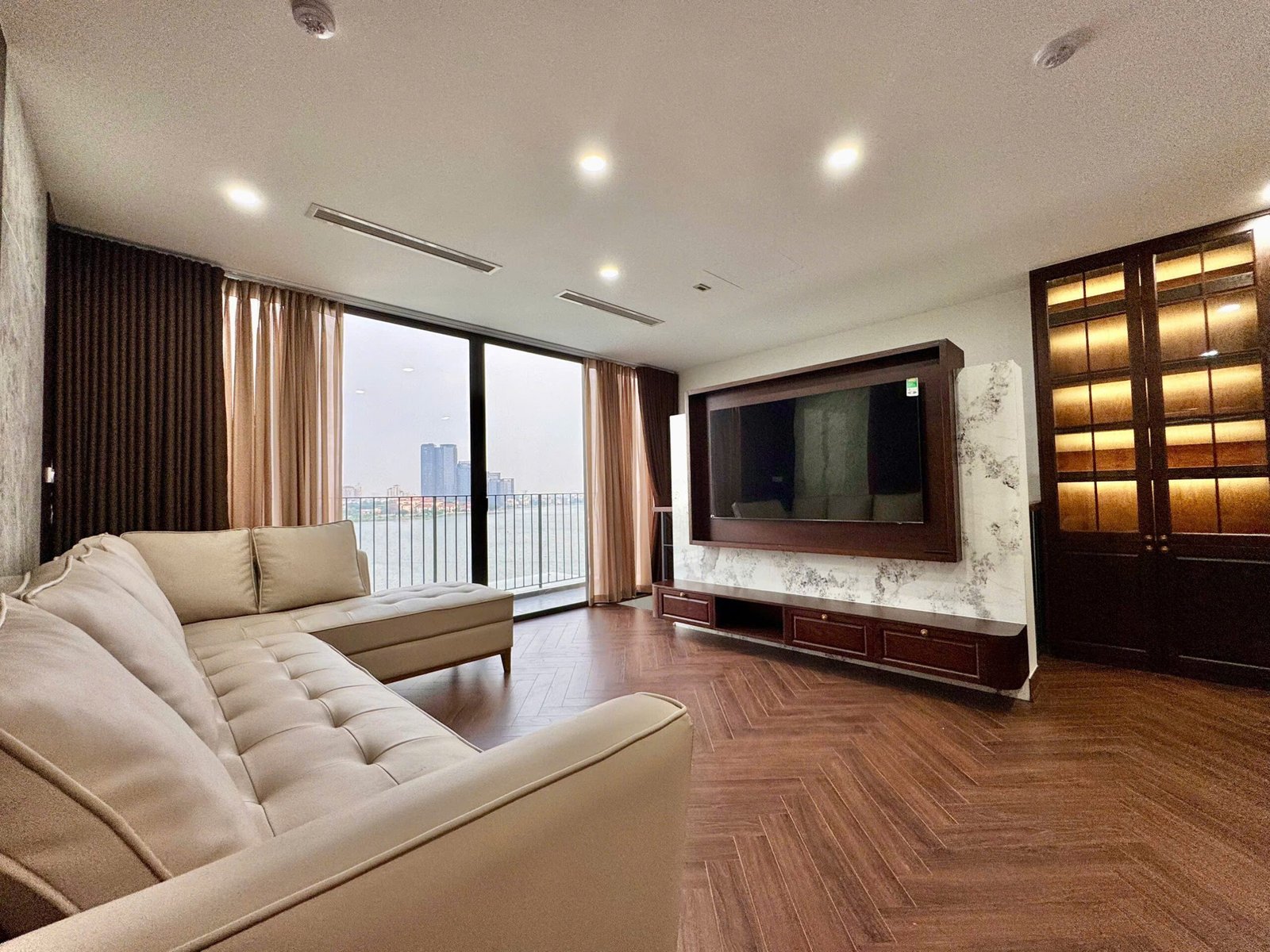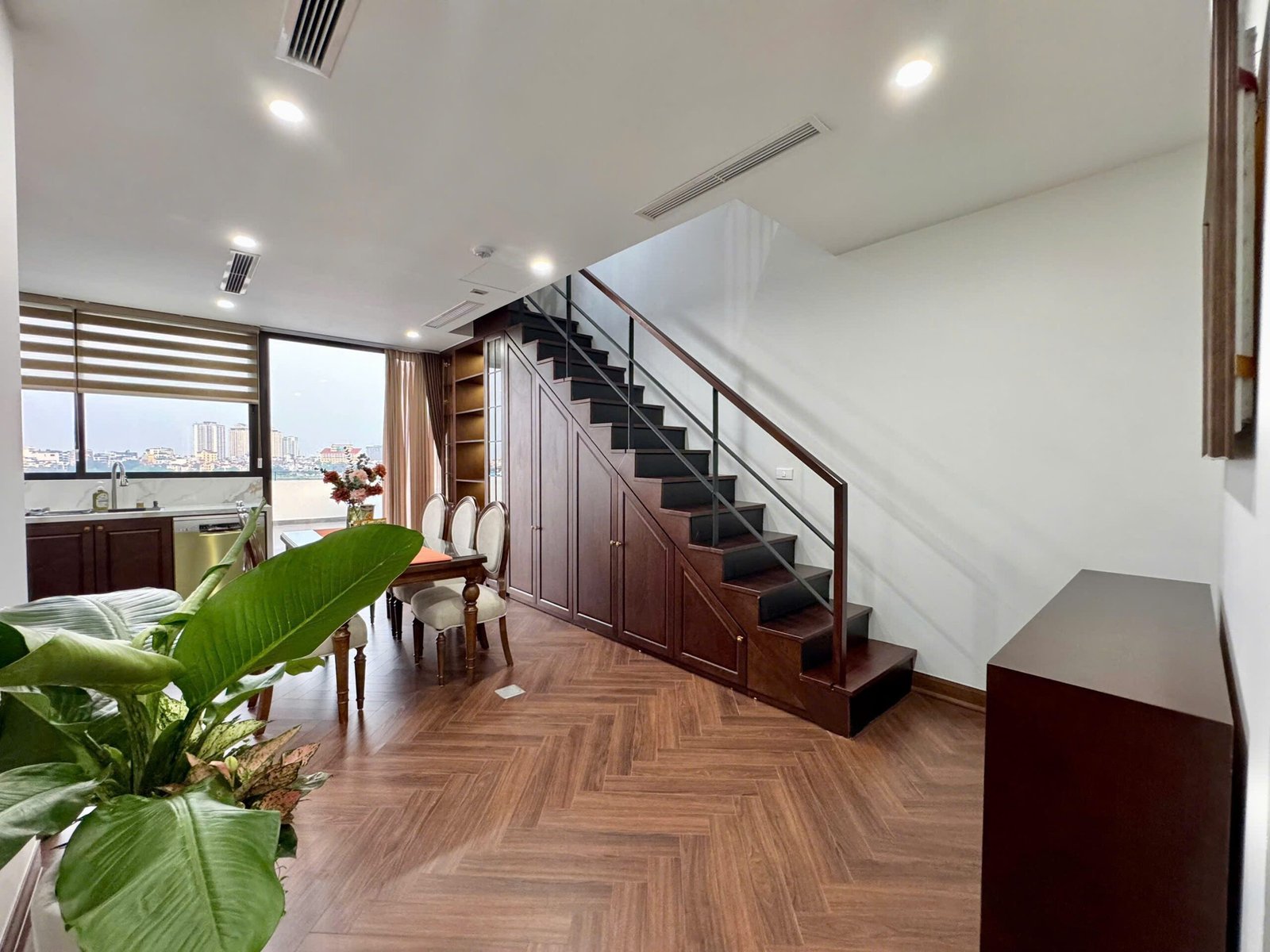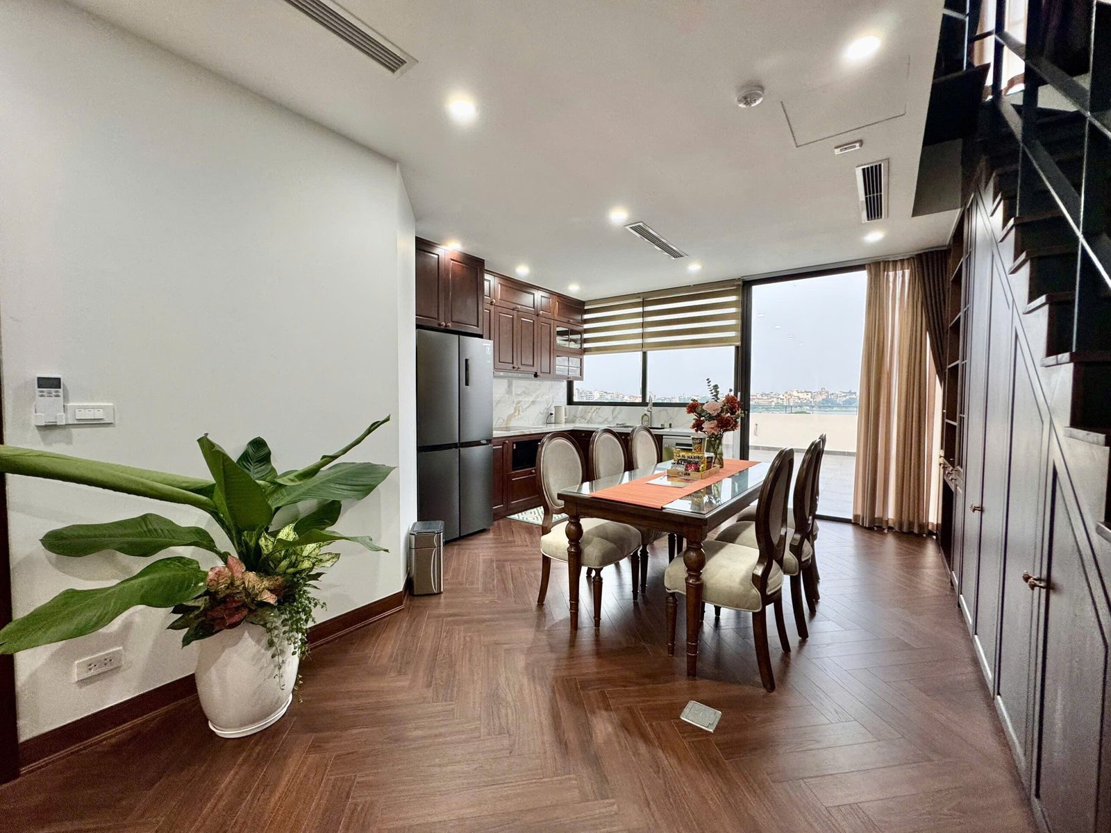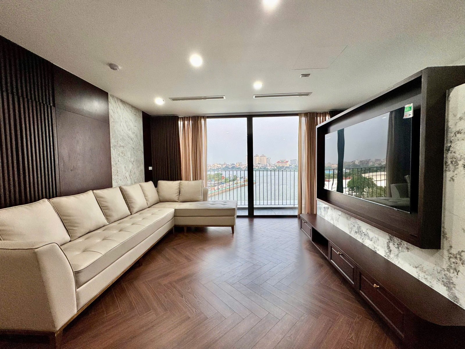 Spacious 3-bedroom duplex apartment for rent on Nhat Chieu Street, Tay Ho—200 sqm with stunning lake view, large balcony, modern furniture, and full amenities. Rent includes internet, cable TV, water, and cleaning service.