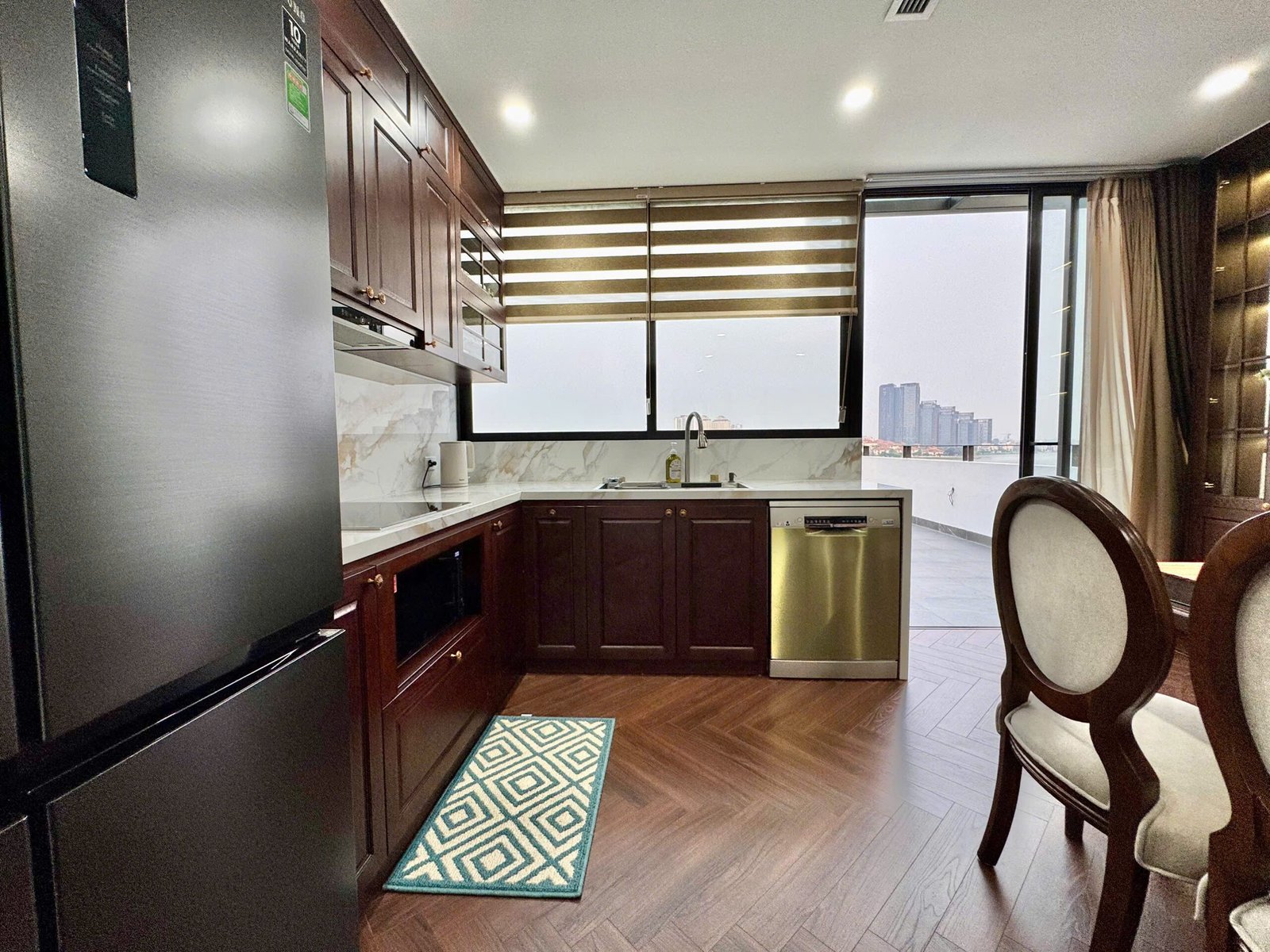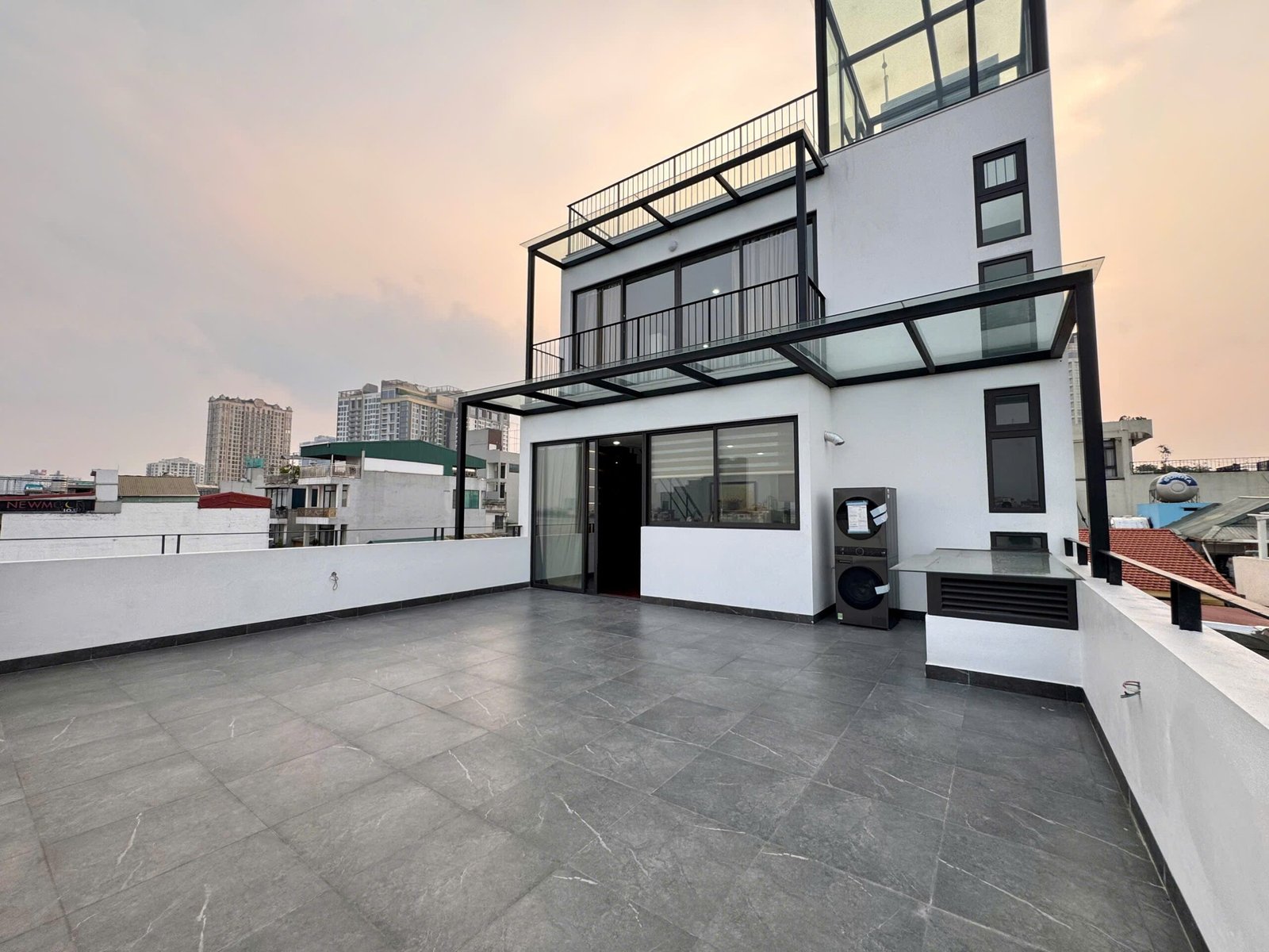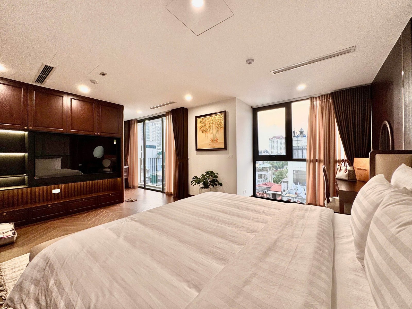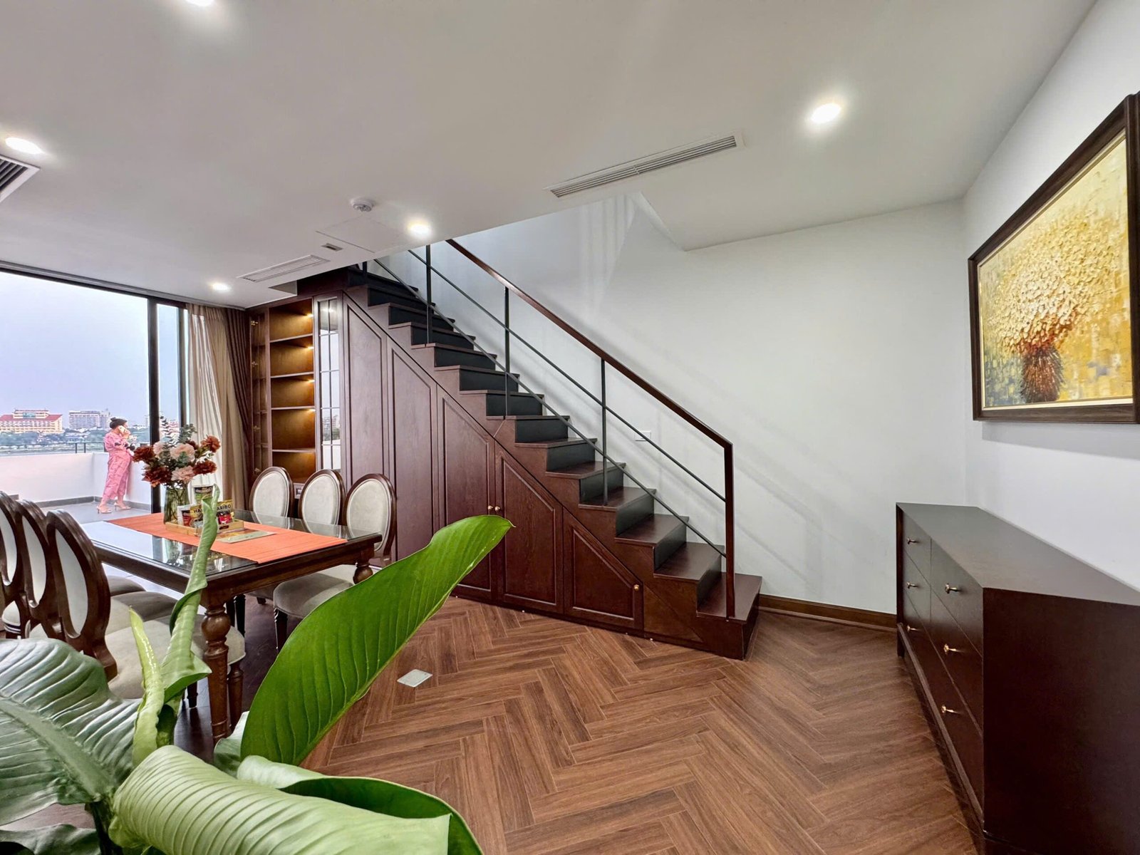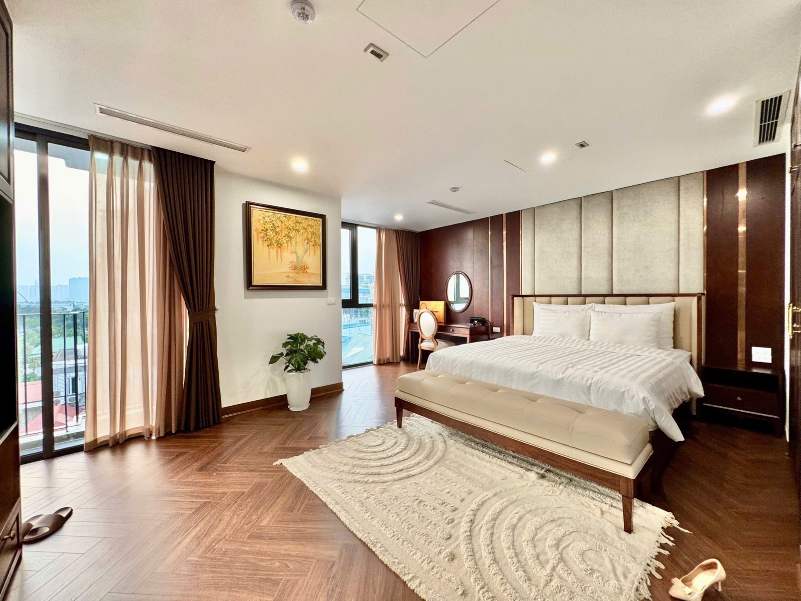 Spacious 3-bedroom duplex apartment for rent on Nhat Chieu Street, Tay Ho—200 sqm with stunning lake view, large balcony, modern furniture, and full amenities. Rent includes internet, cable TV, water, and cleaning service.
