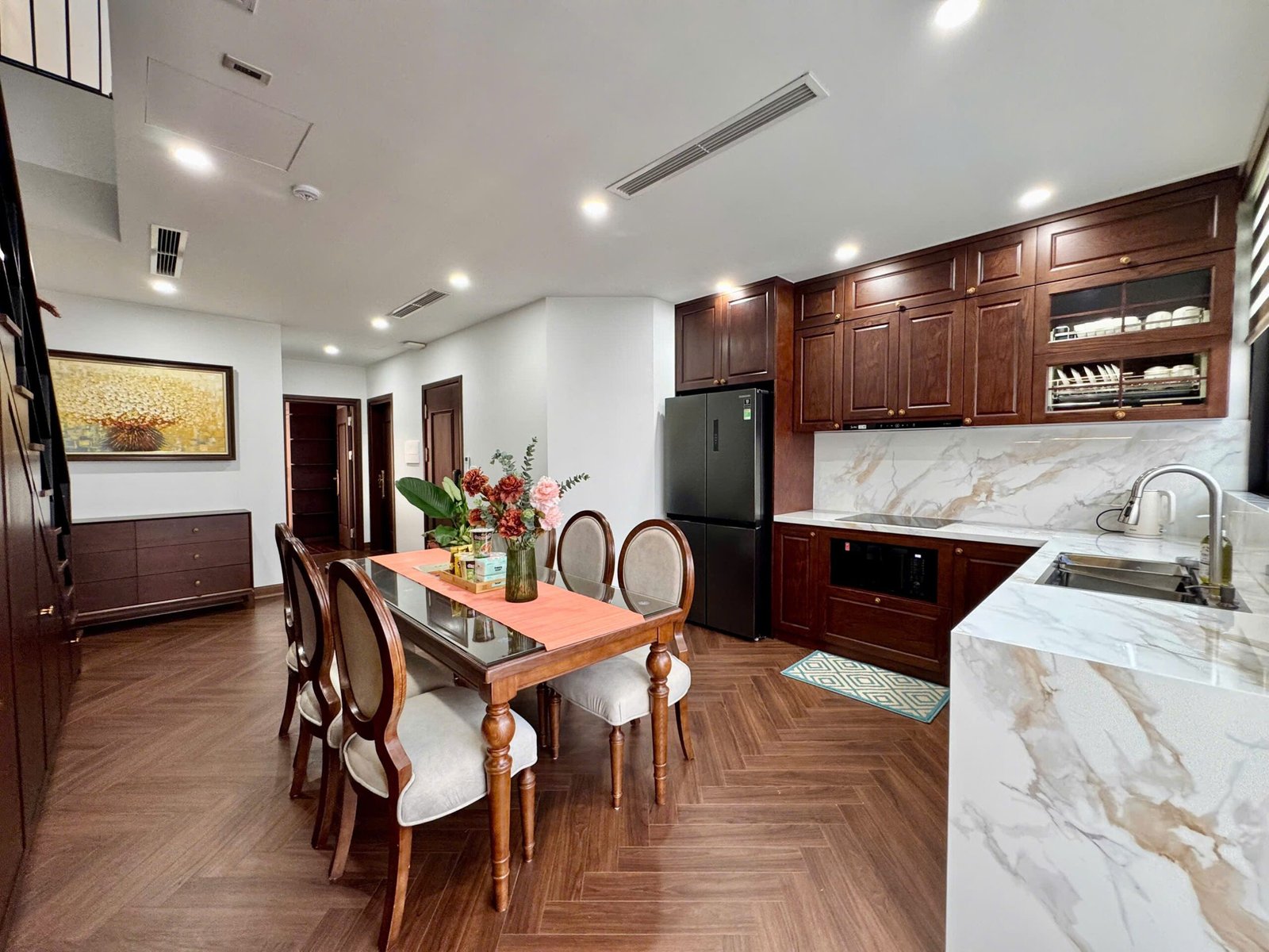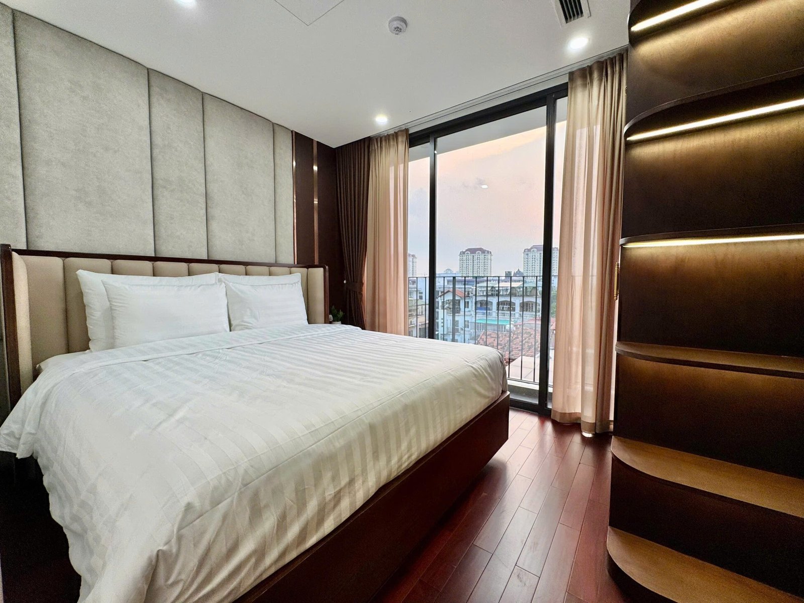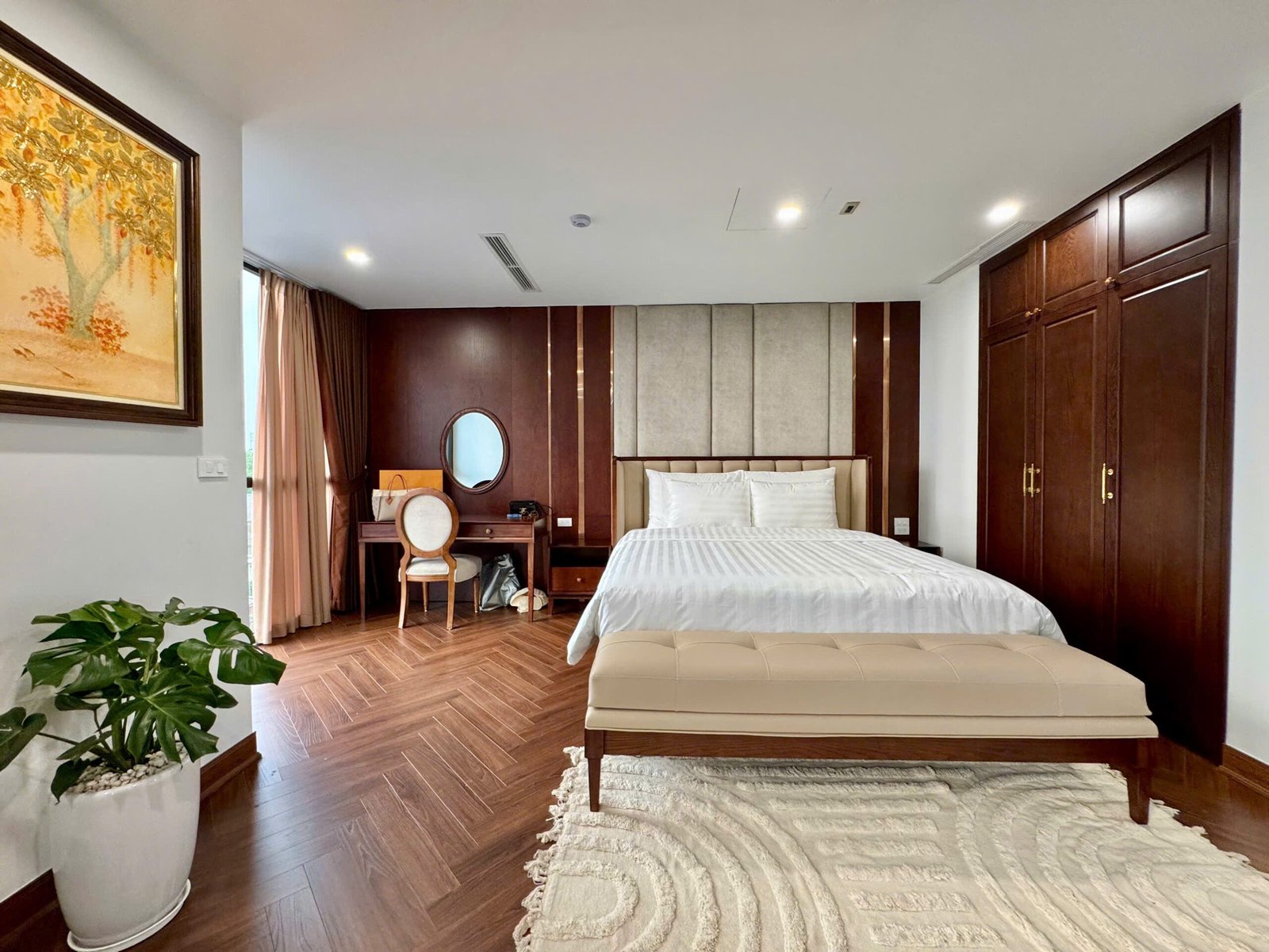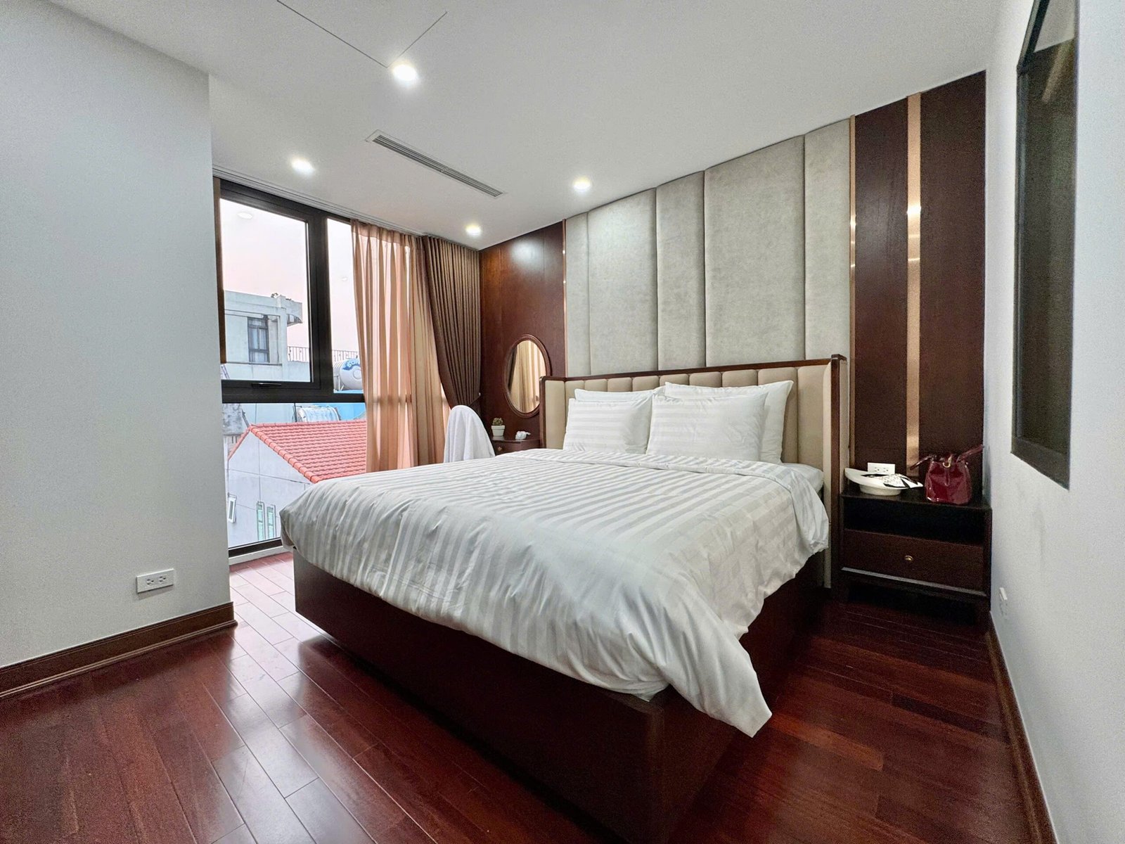 Spacious 3-bedroom duplex apartment for rent on Nhat Chieu Street, Tay Ho—200 sqm with stunning lake view, large balcony, modern furniture, and full amenities. Rent includes internet, cable TV, water, and cleaning service.