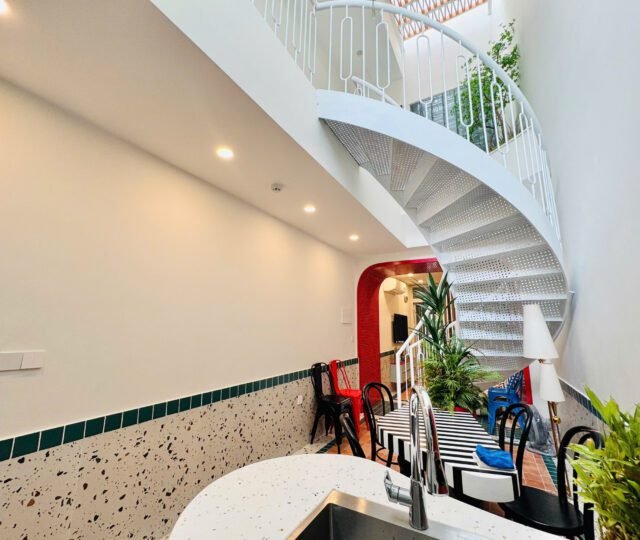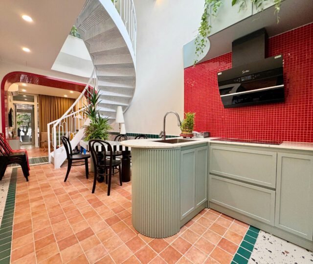 Located in the heart of Tây Hồ on Nhat Chieu Street, this stunning 2-bedroom duplex spans 80 sqm over 2 floors. The apartment features a spacious living area, modern open kitchen, and 2 bathrooms. With a spiral staircase, colorful accents, and abundant natural light, it offers a unique and inviting living space.