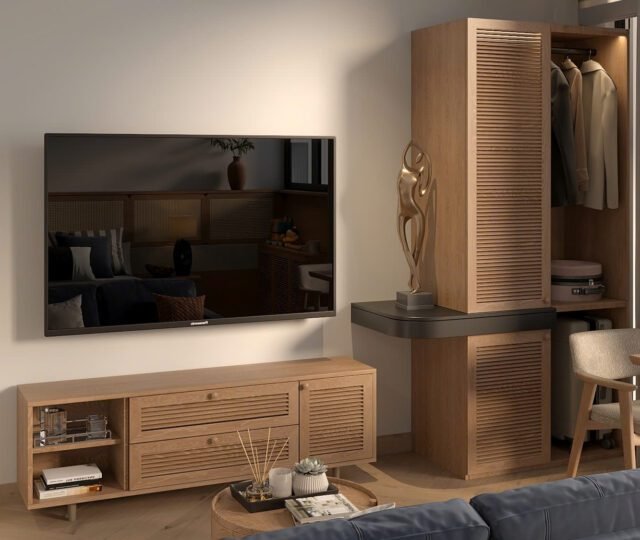 Fully furnished with A/C, fridge, TV, bed, and wardrobe