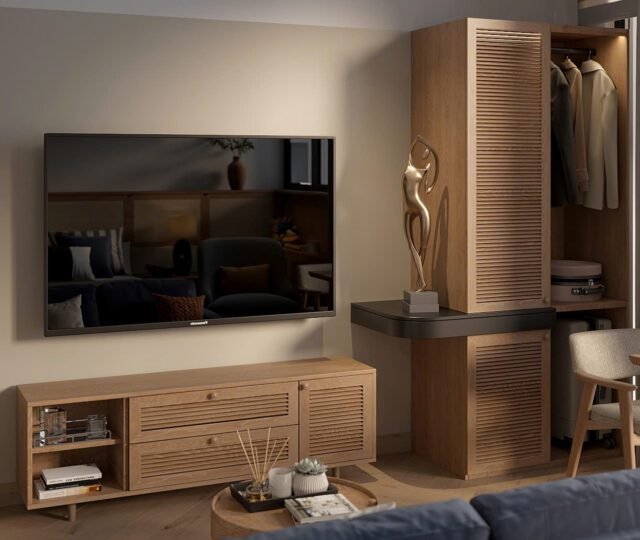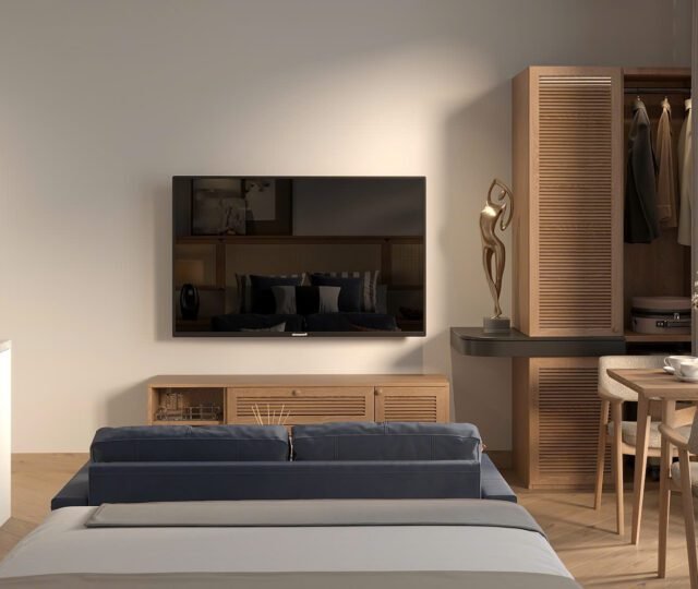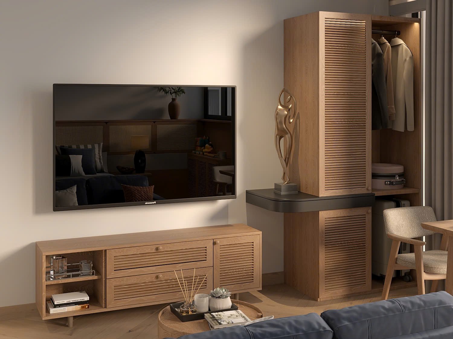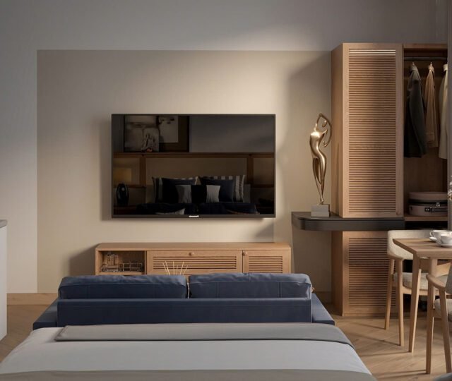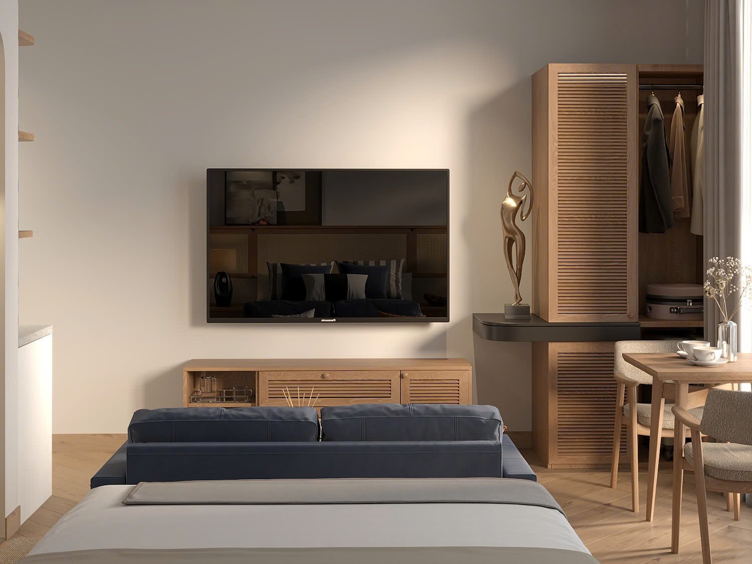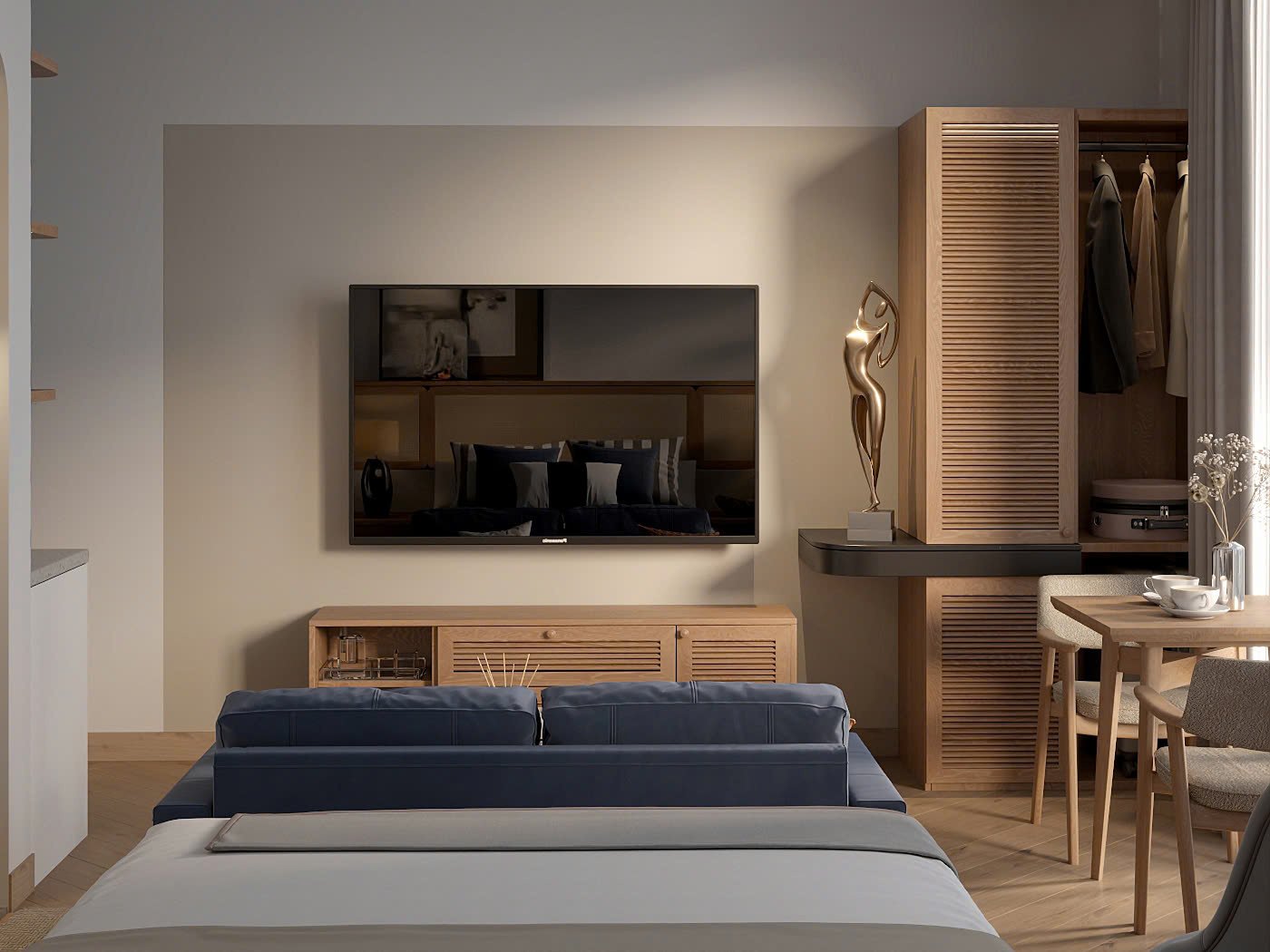 Fully furnished with A/C, fridge, TV, bed, and wardrobe