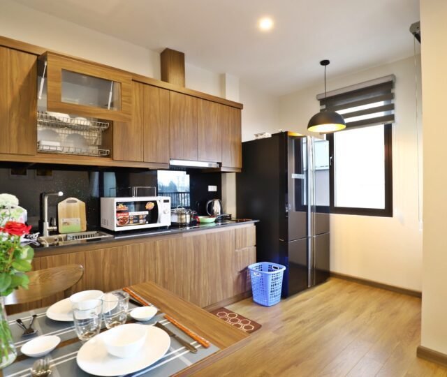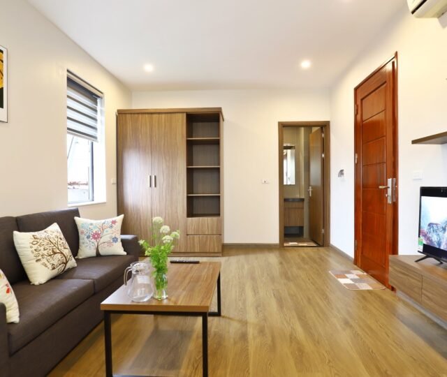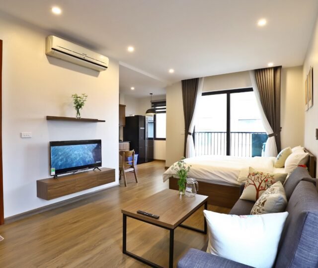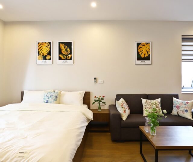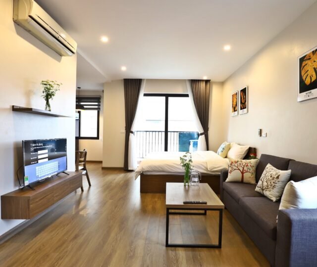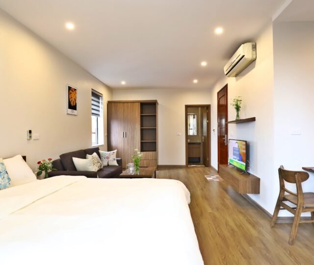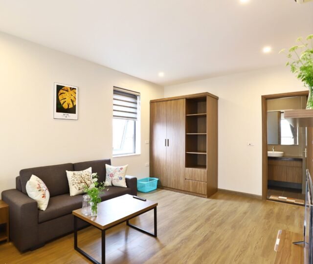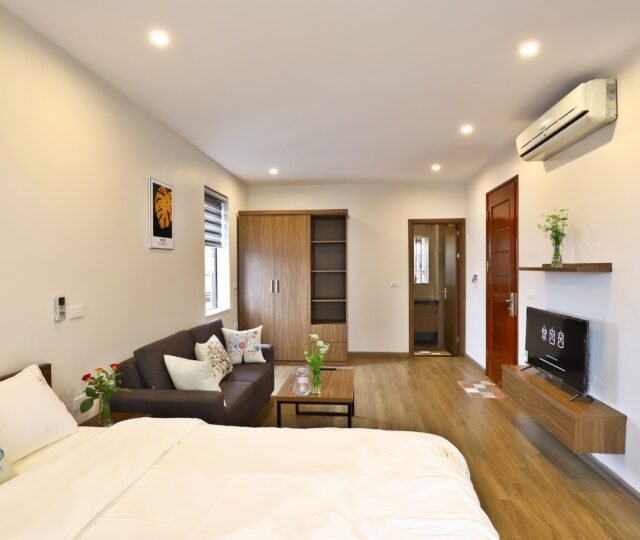 Bright and cozy studio apartment for rent on Lane 9 Dang Thai Mai, Tay Ho. Enjoy abundant natural light, modern amenities, and a peaceful location near the heart of Hanoi.