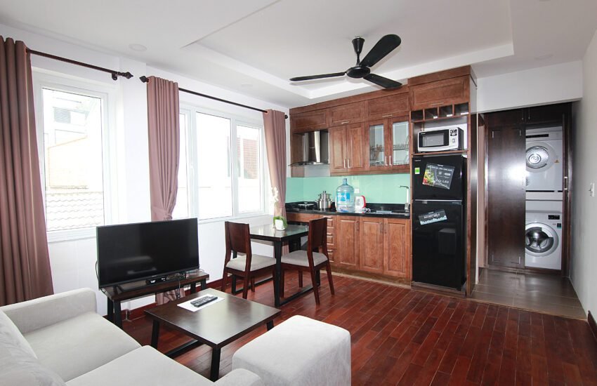 Charming studio apartment for rent on Dang Thai Mai, nestled in the heart of Tay Ho. This fully furnished unit features a bright, open-plan layout with modern décor and all the essentials for comfortable living. Ideal for singles or couples, the apartment includes a compact kitchen, private bathroom, and large windows that fill the space with natural light. Located on a quiet street just minutes from West Lake, international cafes, and shops—perfect for expat living.