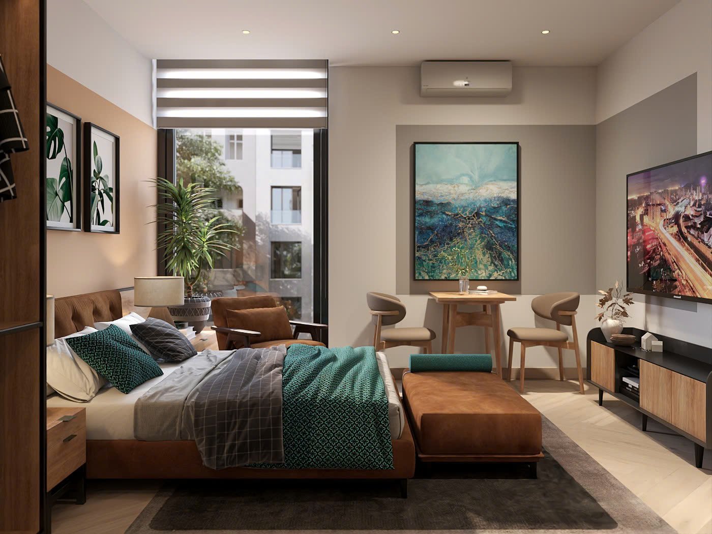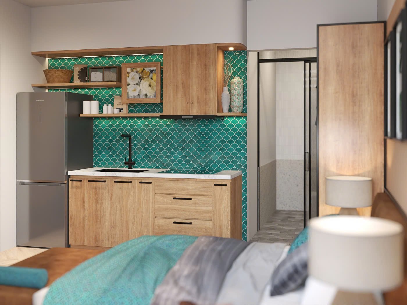 Fully furnished studio with 1 bed and 1 bathroom