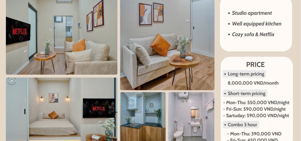 Charming studio apartment for rent in Hoan Kiem, Hanoi, available for both short-term and long-term stays. Fully furnished with modern amenities in a prime location.