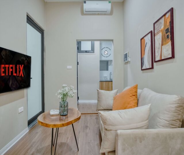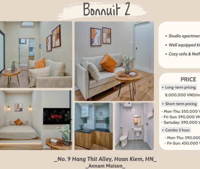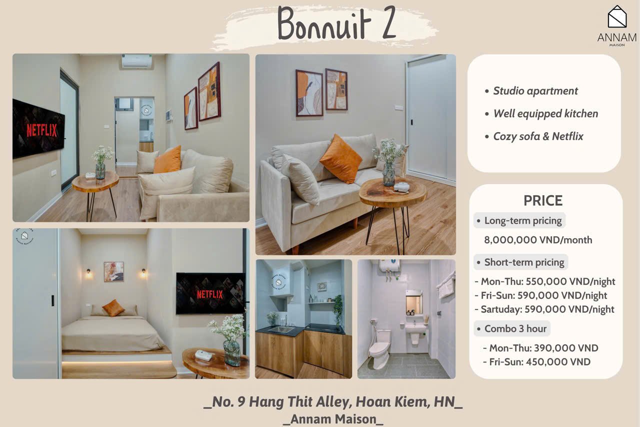 Charming studio apartment for rent in Hoan Kiem, Hanoi, available for both short-term and long-term stays. Fully furnished with modern amenities in a prime location.