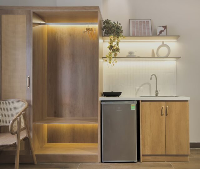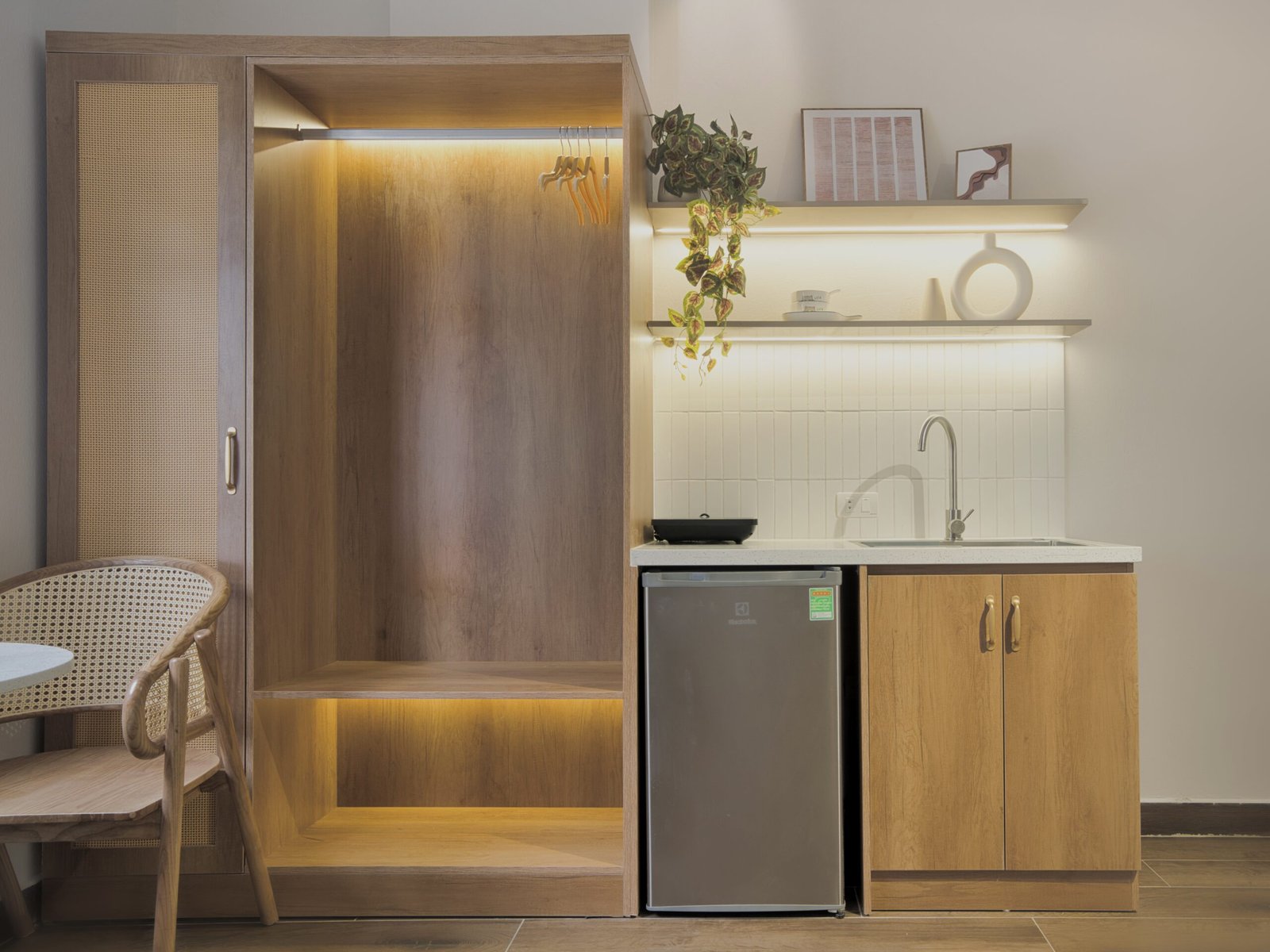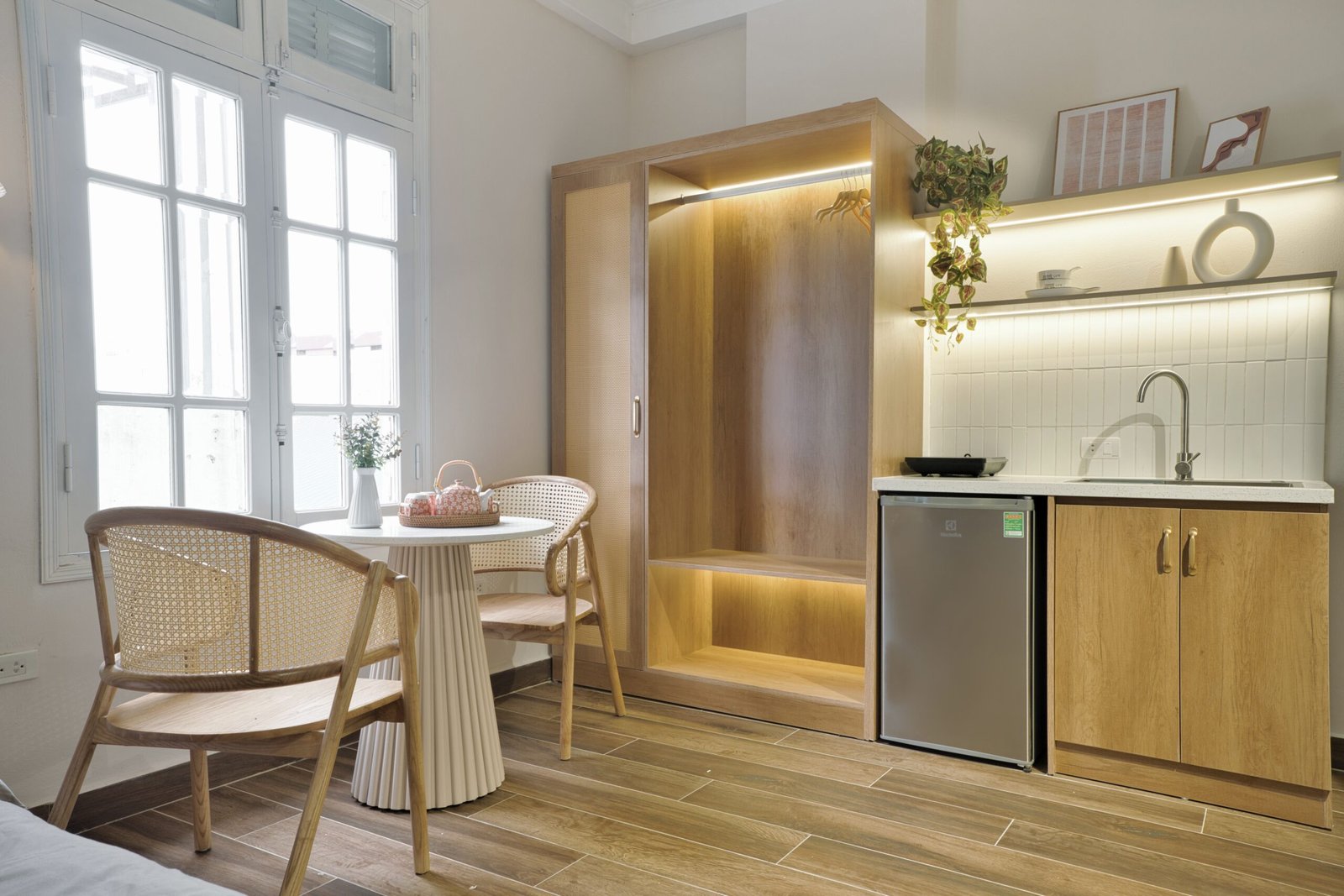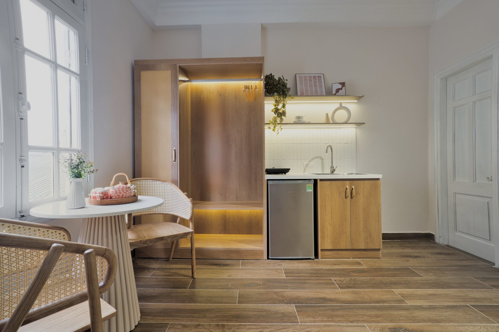 Find your perfect home in our stylish studio rental on Pham Hong Thai, Ba Dinh. Enjoy modern design, an equipped kitchen, and a smart projector with Netflix.