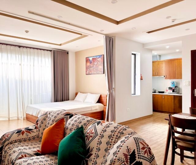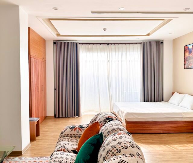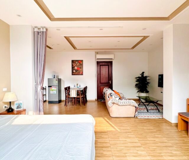 Studio apartment for rent on the 5th floor of a building on Truc Bach Island, Hanoi. This cozy unit offers homely amenities and picturesque views. Located in a sought-after expat area, enjoy the charm of Truc Bach Lake, nearby cafes, international restaurants, and convenient access to the Old Quarter. Perfect for expats seeking a vibrant and comfortable lifestyle in Hanoi.