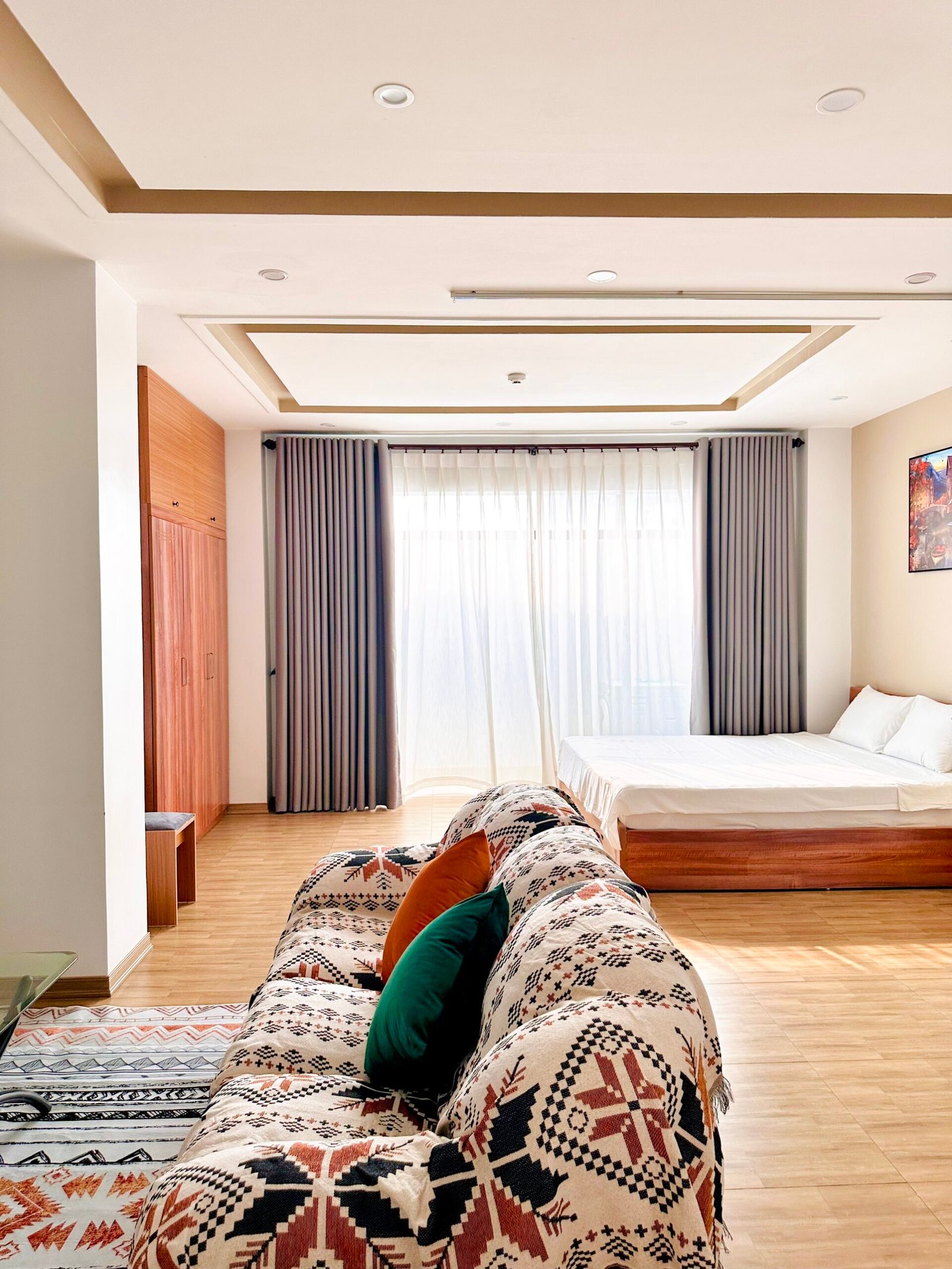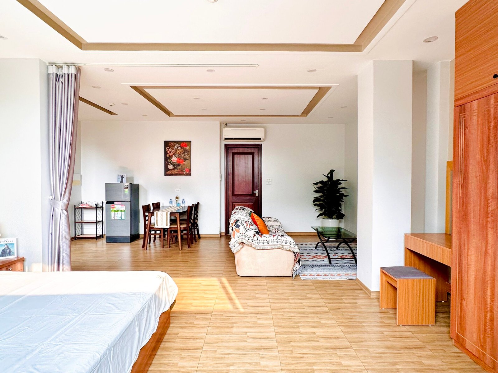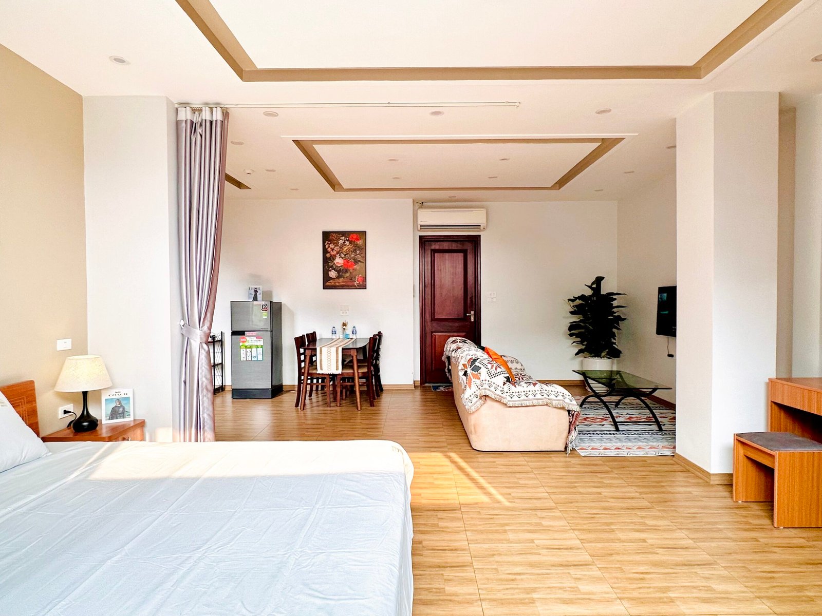 Studio apartment for rent on the 5th floor of a building on Truc Bach Island, Hanoi. This cozy unit offers homely amenities and picturesque views. Located in a sought-after expat area, enjoy the charm of Truc Bach Lake, nearby cafes, international restaurants, and convenient access to the Old Quarter. Perfect for expats seeking a vibrant and comfortable lifestyle in Hanoi.