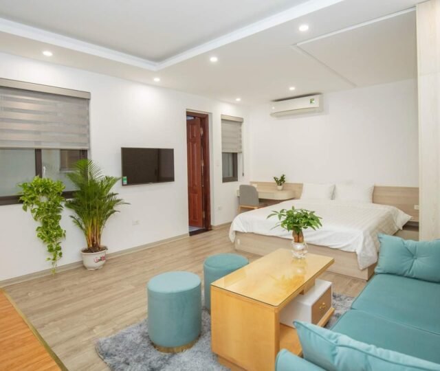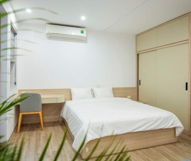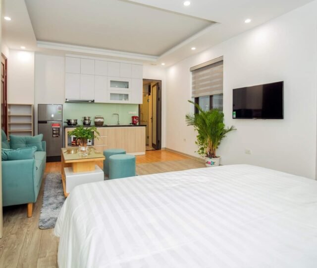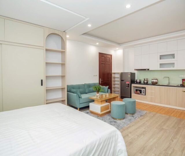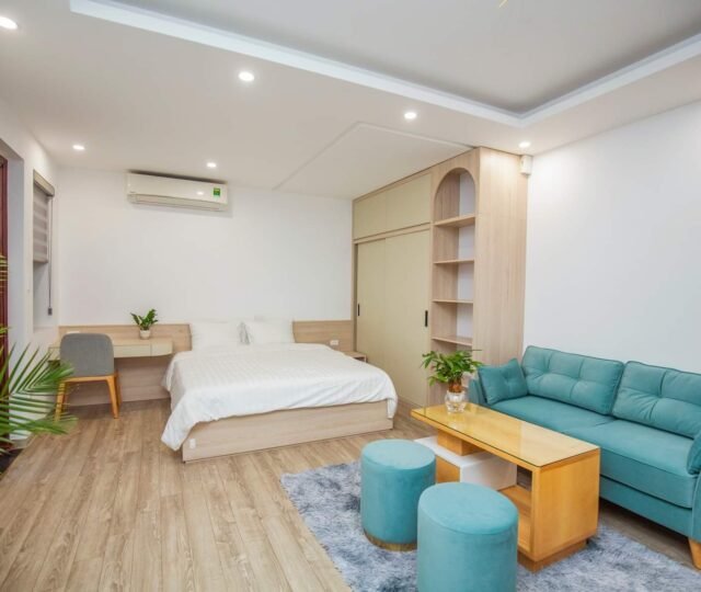 A cozy and modern studio apartment with a lake view in Vu Mien, Tay Ho, is perfect for singles or couples seeking convenience and tranquillity in Hanoi’s bustling expat-friendly district.