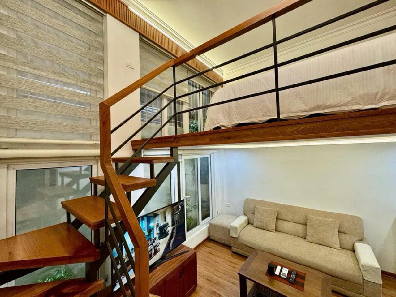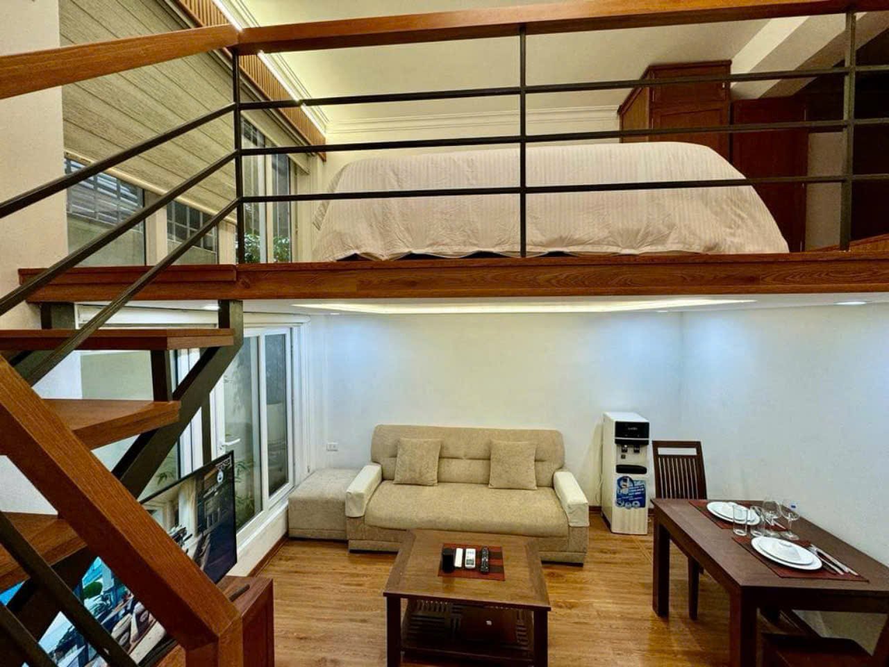 Located in Nam Tu Liem District, this stylish 1-bedroom loft apartment offers a bright, modern living space perfect for singles or couples. Designed with high ceilings and an open layout, the loft features a cozy living area, a fully equipped kitchen, and a comfortable upstairs bedroom — combining style and practicality in one elegant space.