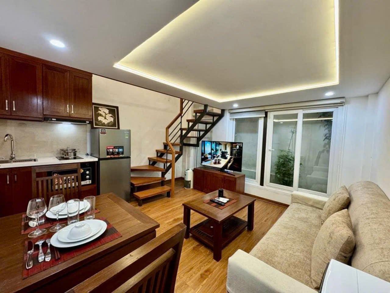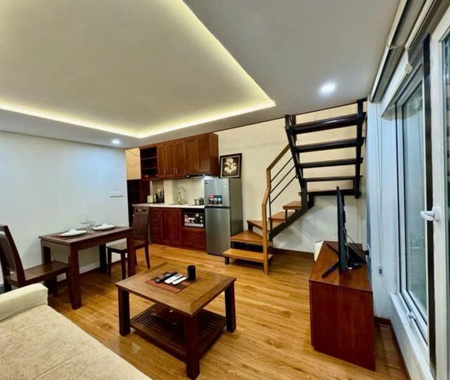 Situated in a quiet, convenient neighborhood with easy access to main roads, shops, and cafés, this loft apartment is a great choice for anyone seeking modern comfort in Nam Tu Liem, Hanoi.