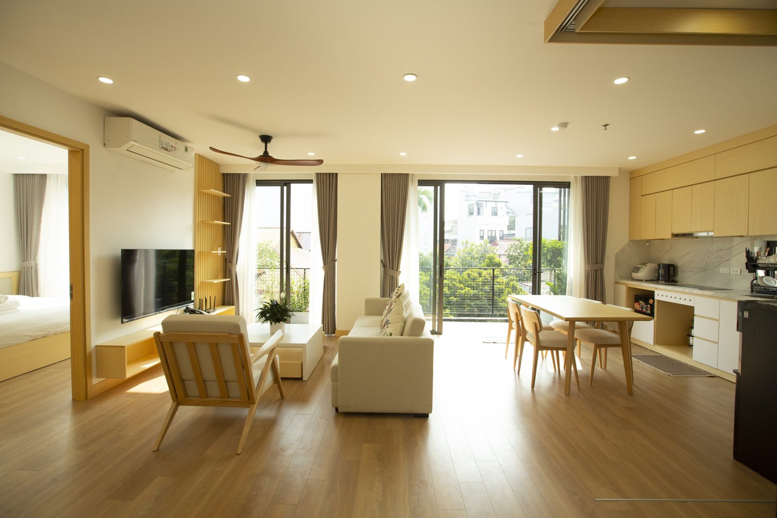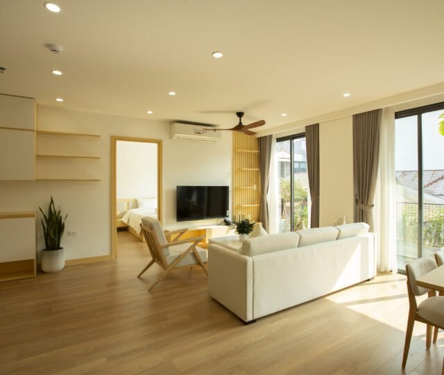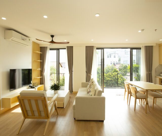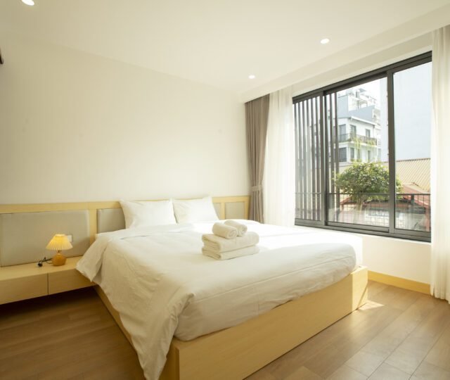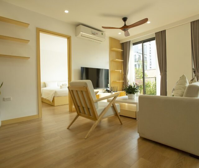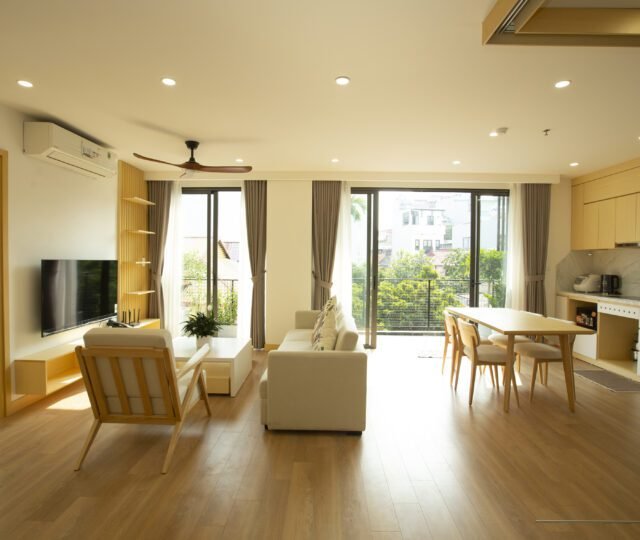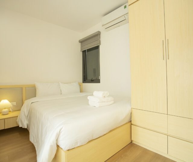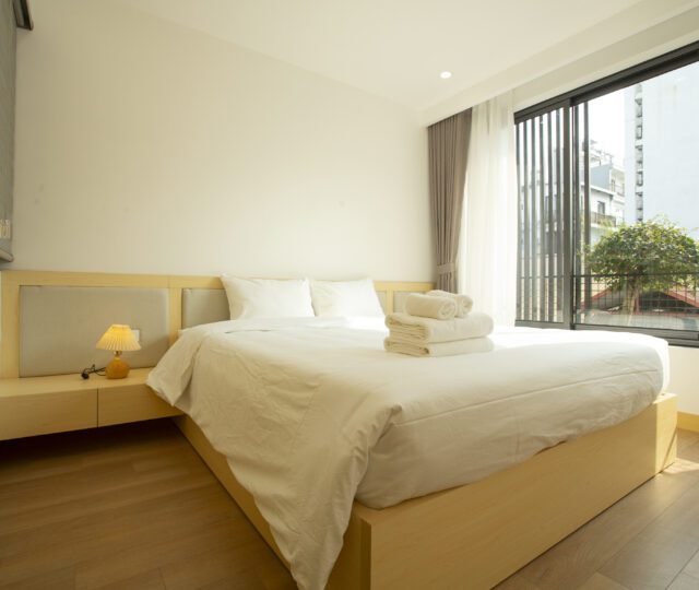Enjoy modern Japanese-style comfort in this 2-bedroom serviced apartment at Sumitomo Serviced Apartment, ideally located in a quiet alley near West Lake. Designed for both comfort and convenience, this apartment features a private balcony, gym access, and elegant interiors that blend functionality with warmth.