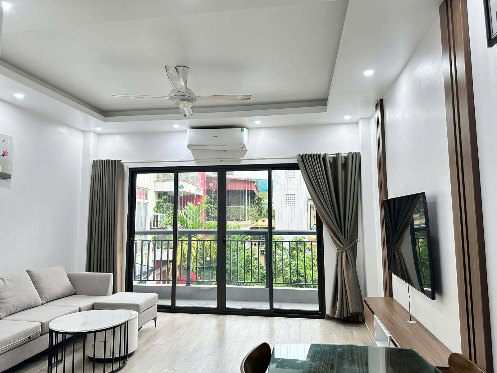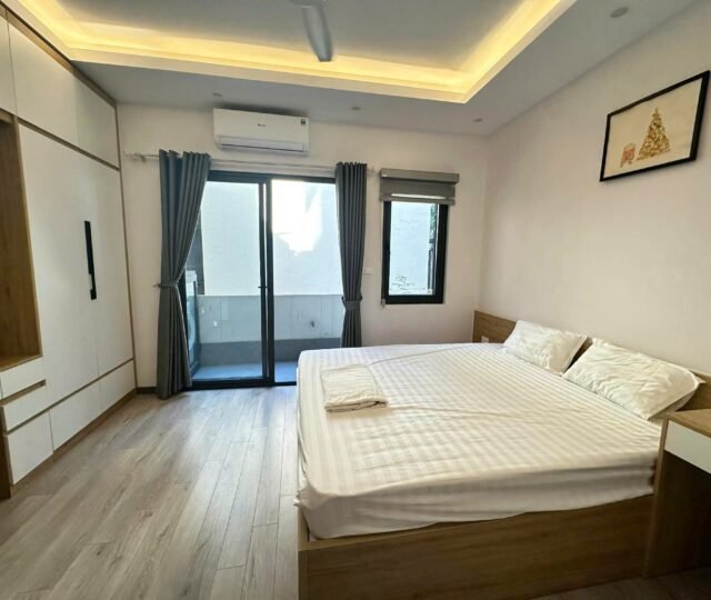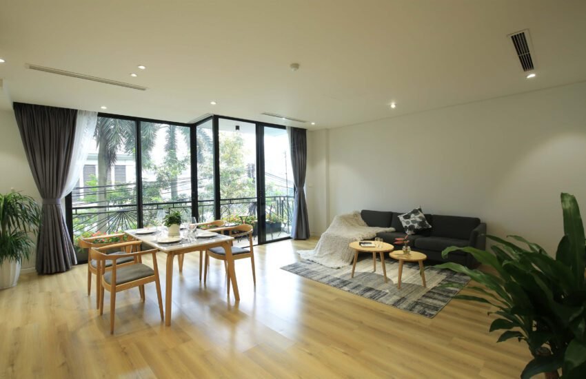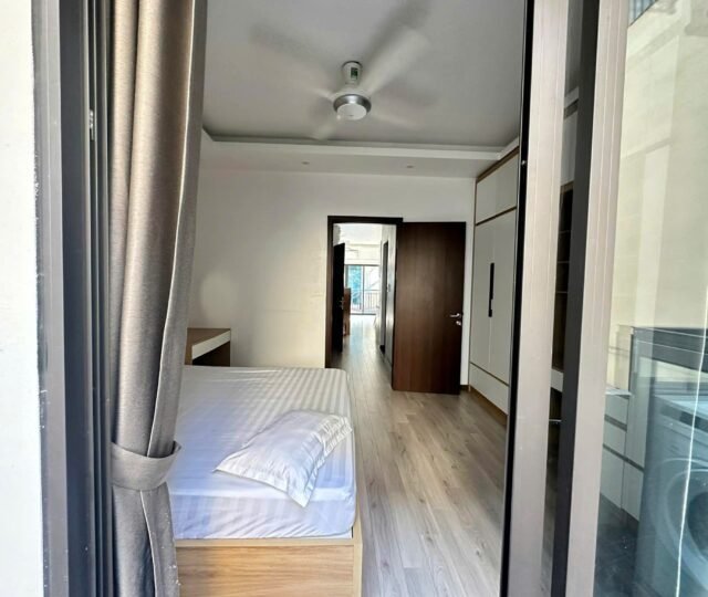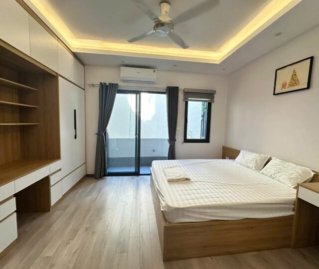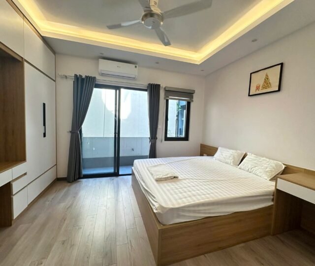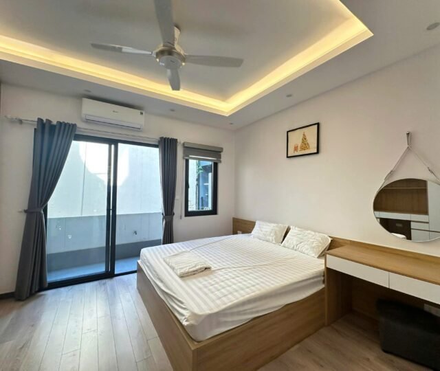 Bright, airy, and ultra-convenient. This 55m² serviced apartment at 31 Xuan Dieu is the perfect urban retreat for a professional or solo traveler. Featuring two private balconies, the space is flooded with natural light and offers a refreshing cross-breeze.