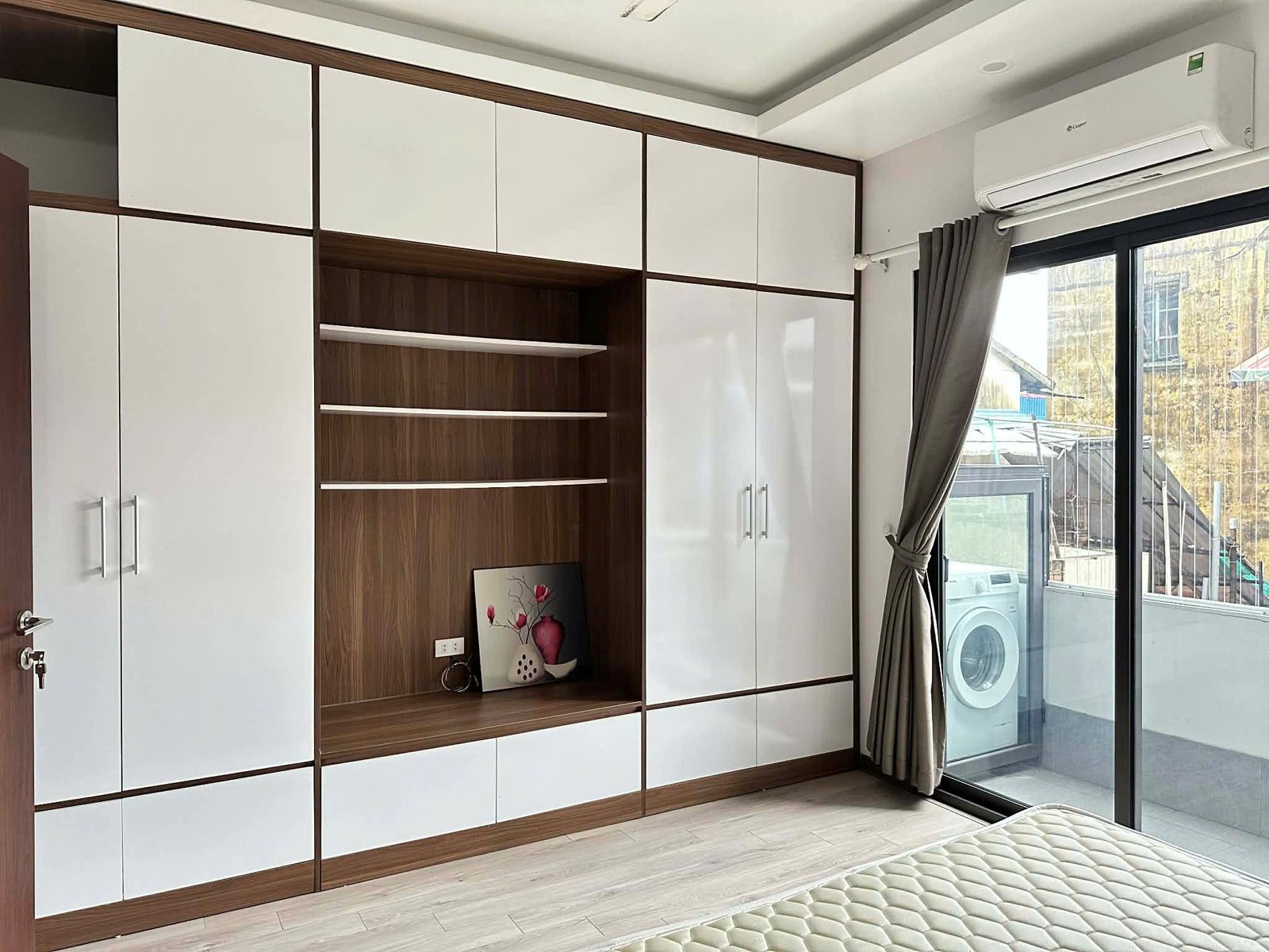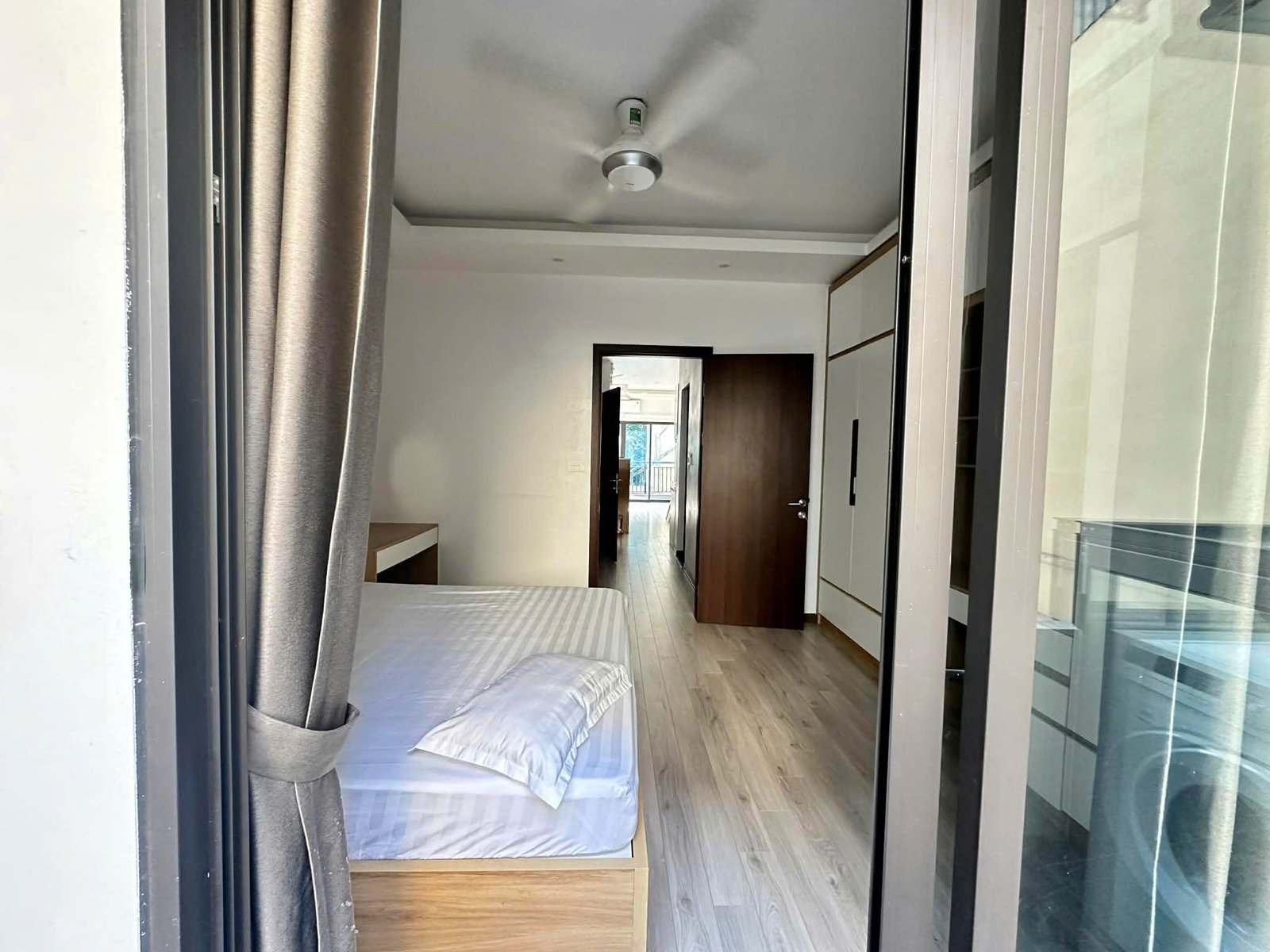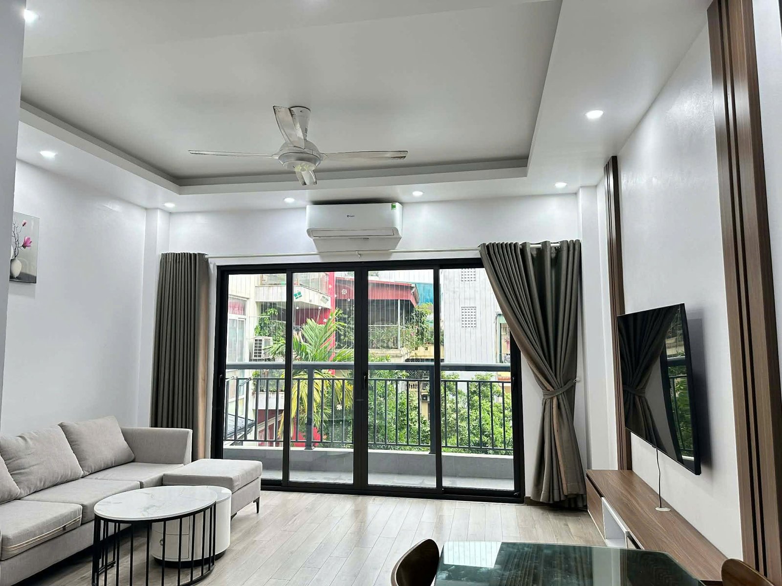 Bright, airy, and ultra-convenient. This 55m² serviced apartment at 31 Xuan Dieu is the perfect urban retreat for a professional or solo traveler. Featuring two private balconies, the space is flooded with natural light and offers a refreshing cross-breeze.