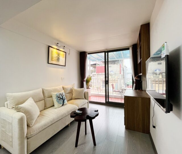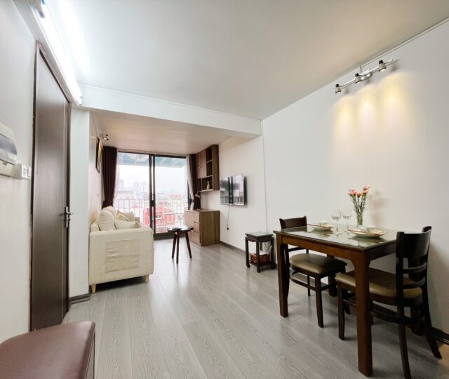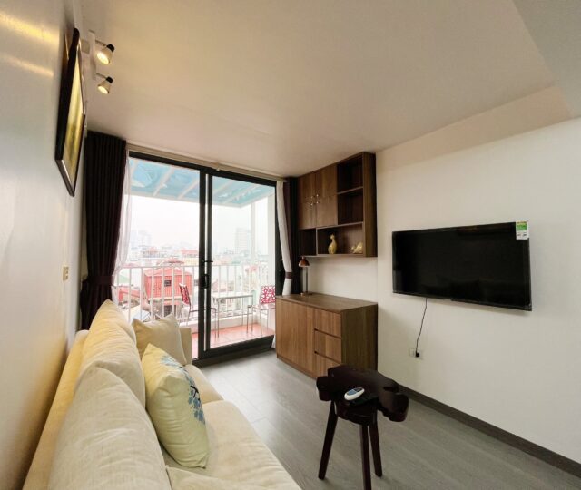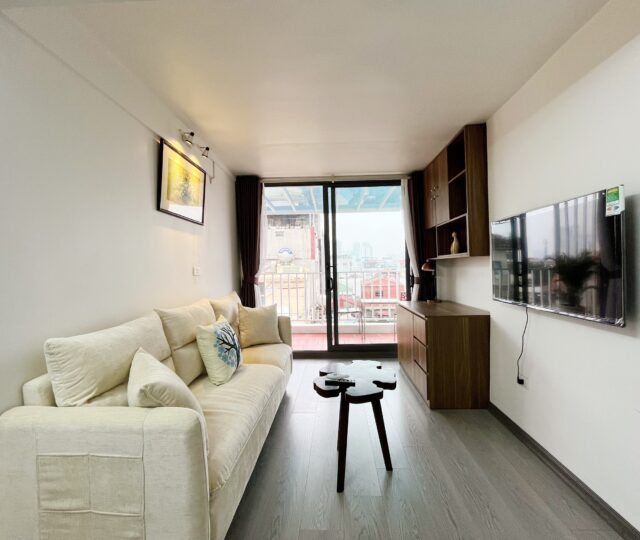 New serviced studio apartment on the top floor of a modern building in Vong Thi, Hanoi. Bright, fully furnished space with a cozy layout and great natural light. Quiet location near West Lake, cafes, and local amenities