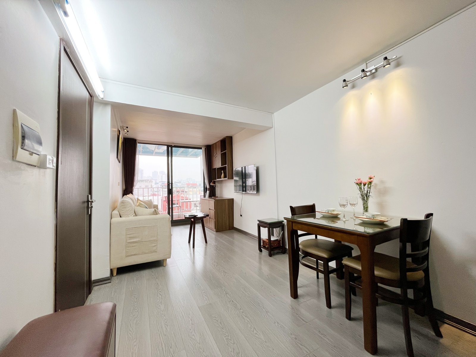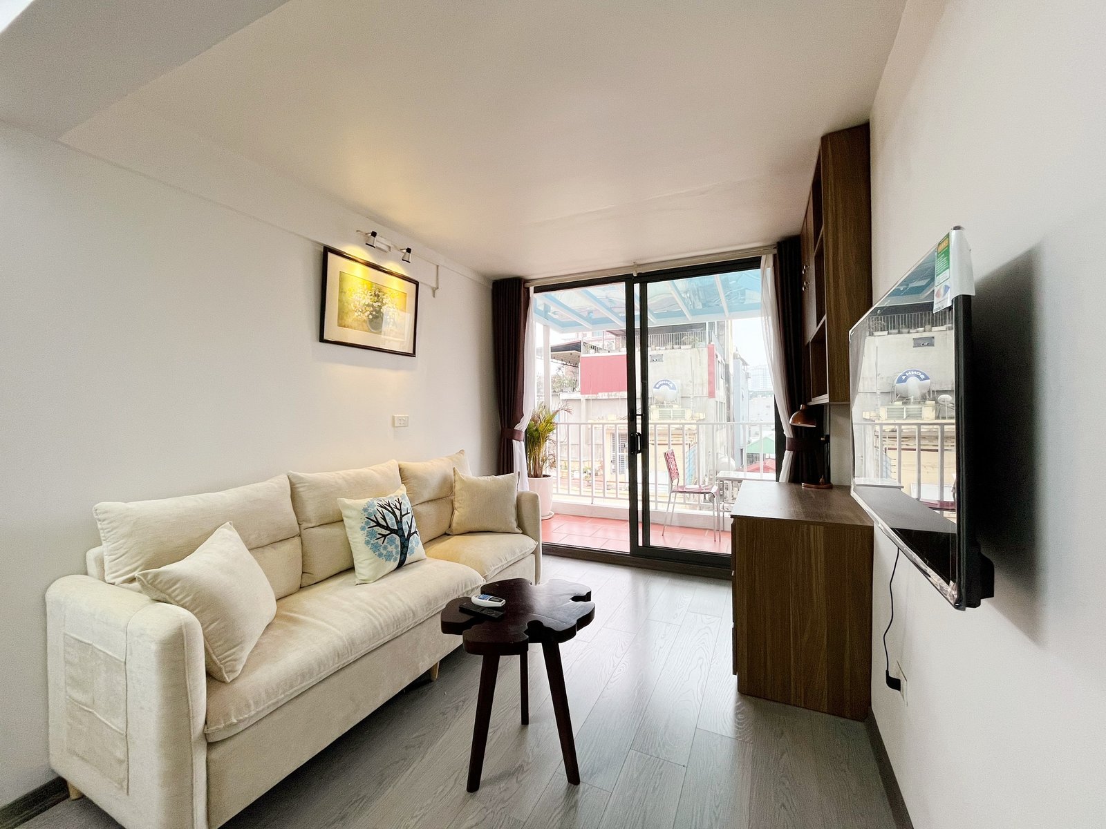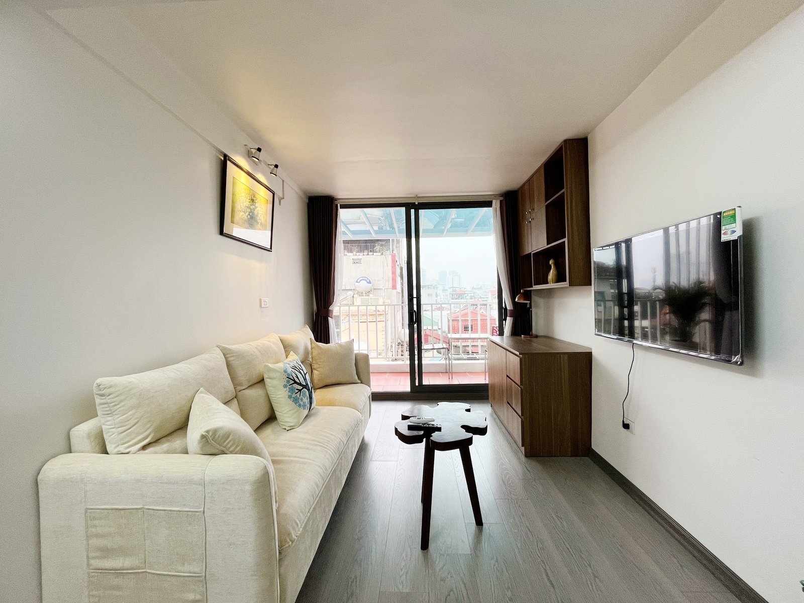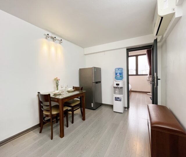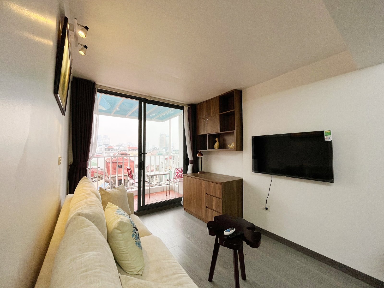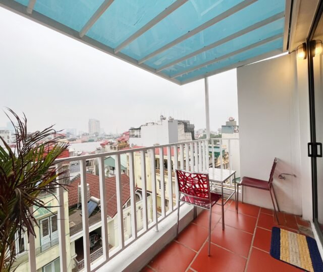New serviced studio apartment on the top floor of a modern building in Vong Thi, Hanoi. Bright, fully furnished space with a cozy layout and great natural light. Quiet location near West Lake, cafes, and local amenities