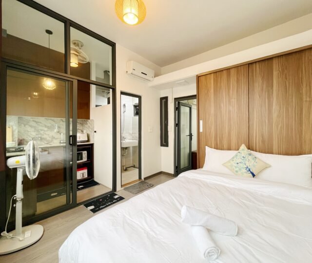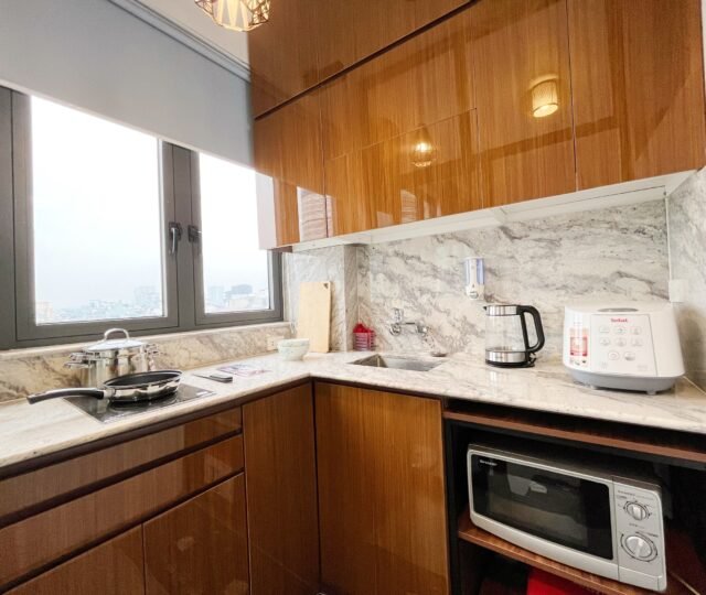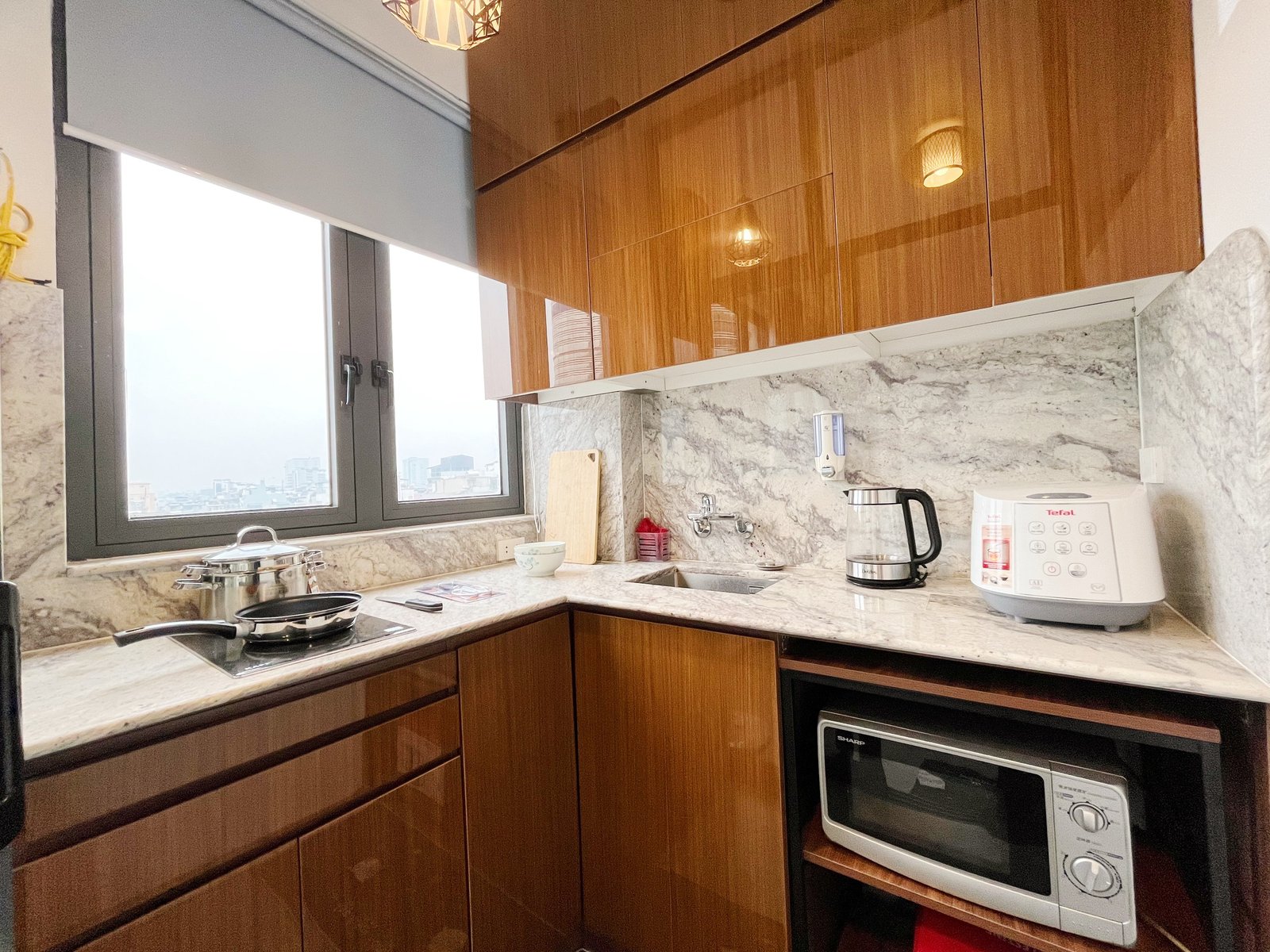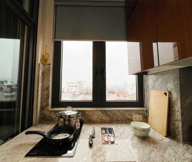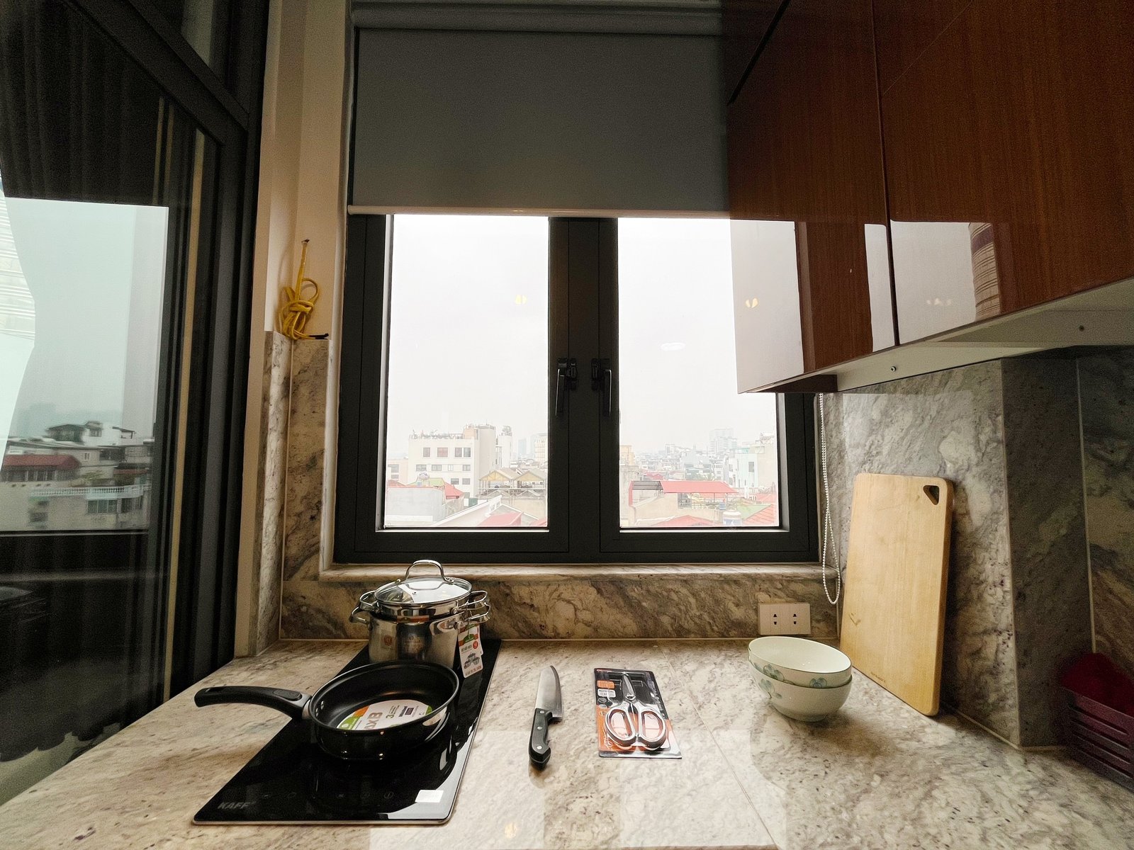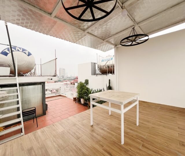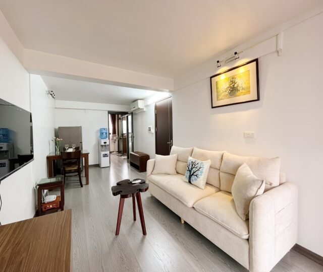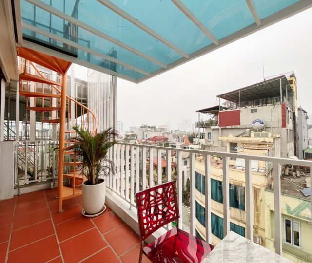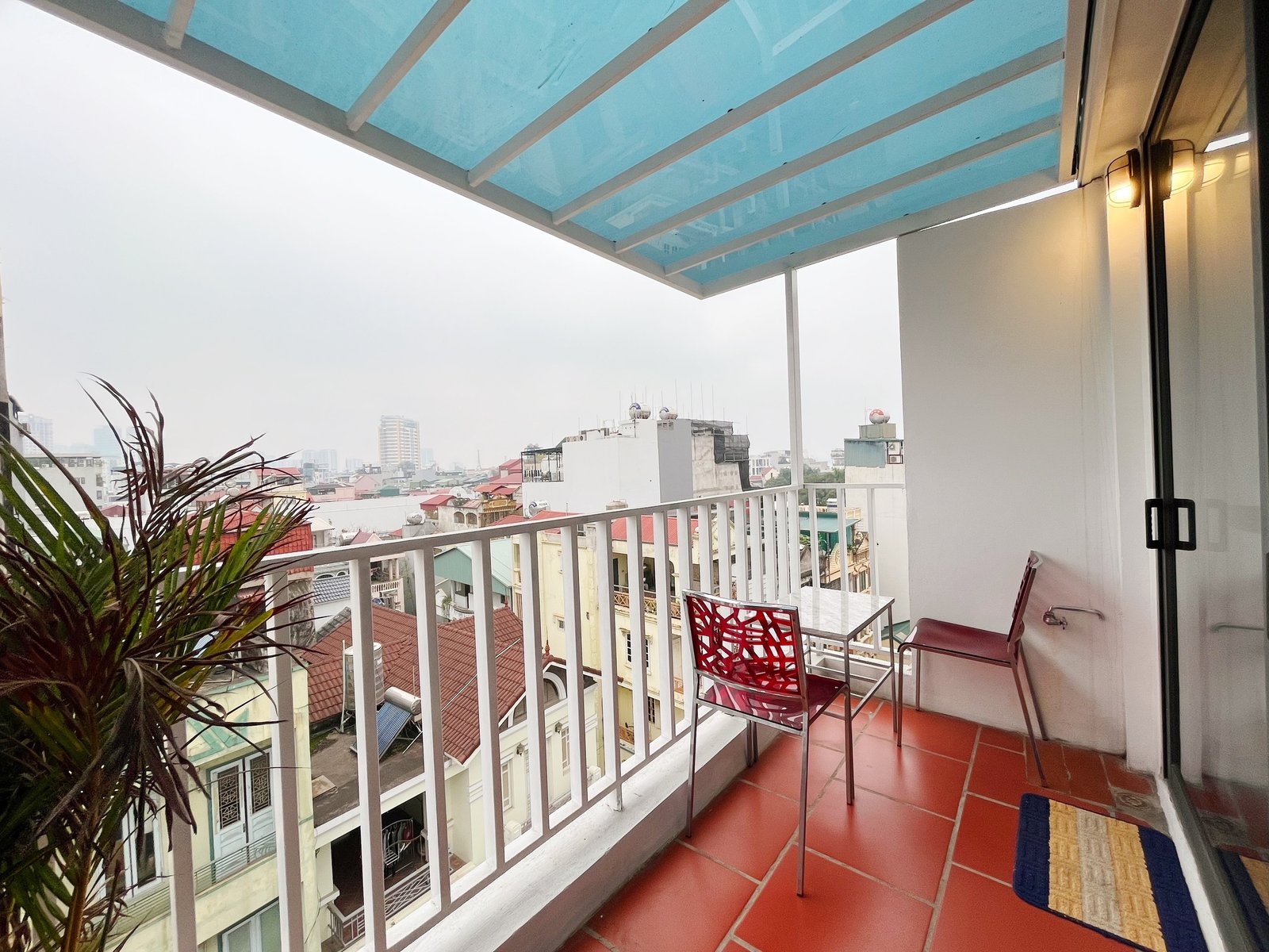New serviced studio apartment on the top floor of a modern building in Vong Thi, Hanoi. Bright, fully furnished space with a cozy layout and great natural light. Quiet location near West Lake, cafes, and local amenities