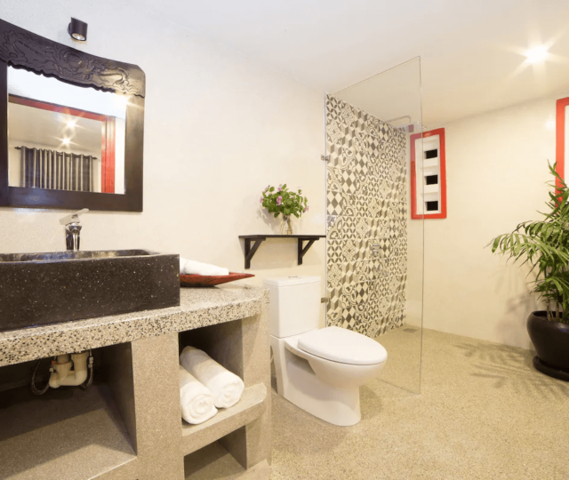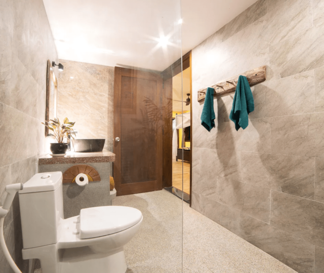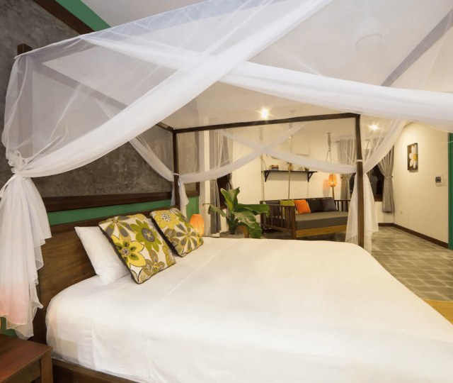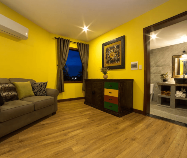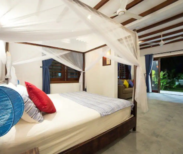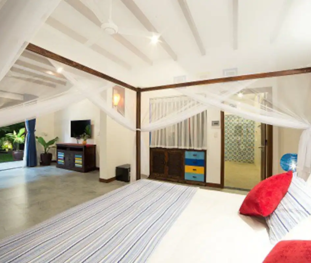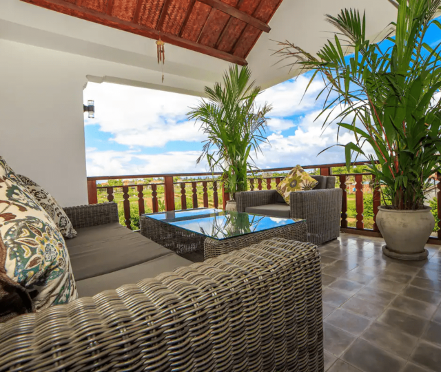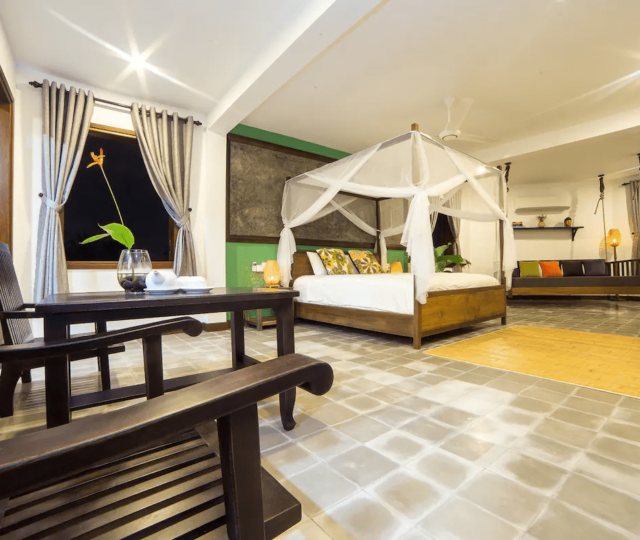 Each of the 4 uniquely styled bedrooms offers a king-sized bed, sofa, balcony with a day bed, tables and chairs, air conditioning, ceiling fan, Wi-Fi, refrigerator, safe, and a spacious bathroom with shower and hot and cold water. The Air Room on the 3rd floor even includes a bathtub.