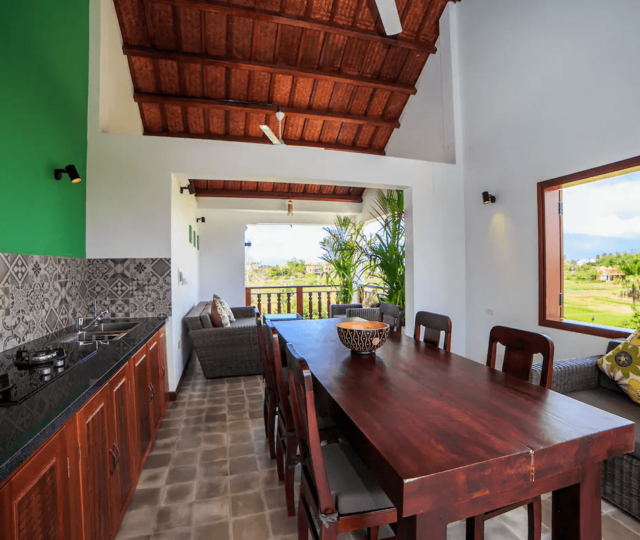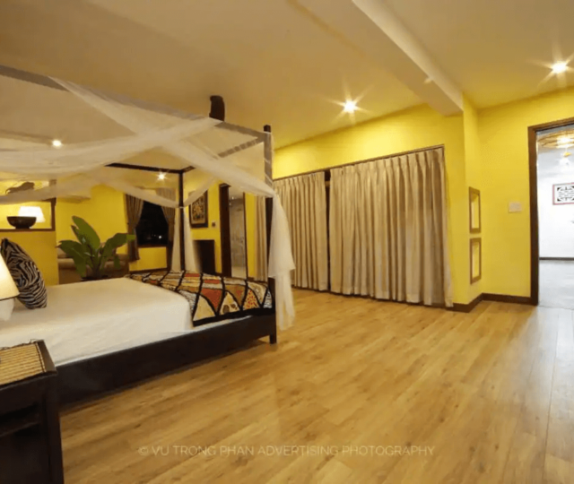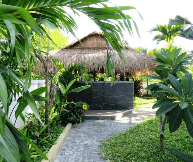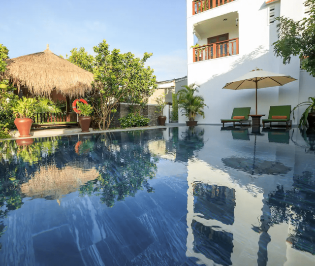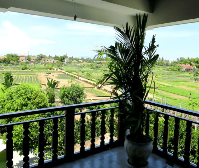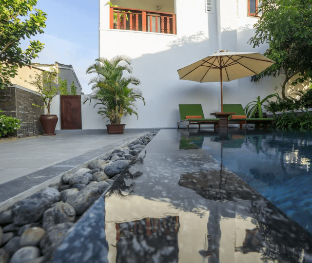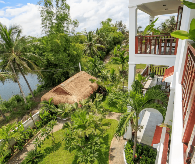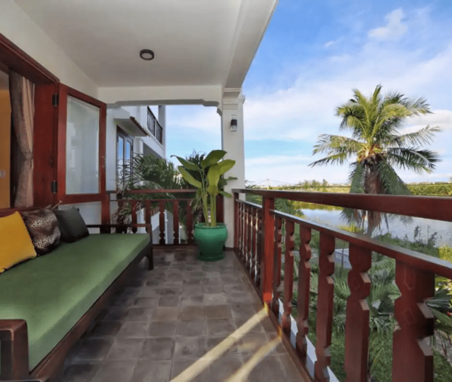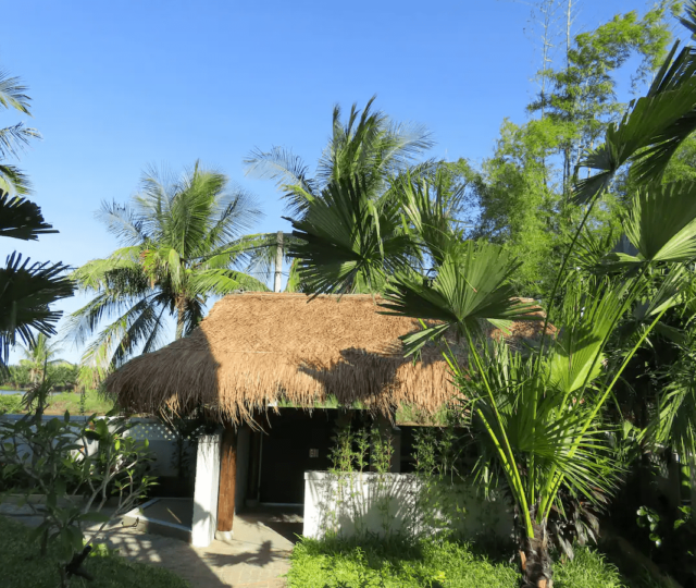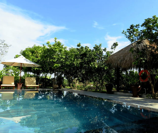 During your stay at Tranquil Villa Tra Que, you can immerse yourself in the tranquil ambiance of the countryside. Watch as local farmers begin their day in the gardens, listen to the melodies of birdsong, and observe water buffalos and cows passing by. Take a refreshing swim in the pool or unwind poolside in the garden hut or on your balcony, soaking in the views.
