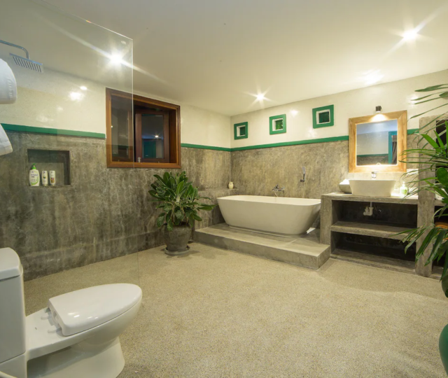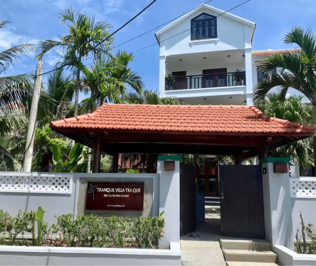 Tranquil Villa Tra Que is a serene retreat nestled in the quiet surroundings of Tra Que Vegetable and Herb Village, just 3 kilometers from Hoi An Old Town and 1 kilometer from An Bang Beach. This spacious villa features 4 large bedrooms, each with its own bathroom, along with 2 kitchens and a refreshing swimming pool in the back garden. From the villa, guests can enjoy picturesque views of the river, garden, and pool.