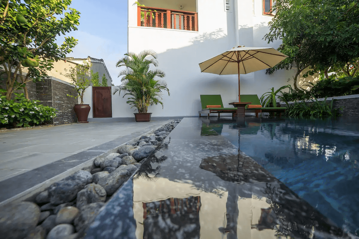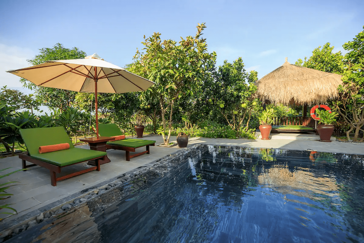 During your stay at Tranquil Villa Tra Que, you can immerse yourself in the tranquil ambiance of the countryside. Watch as local farmers begin their day in the gardens, listen to the melodies of birdsong, and observe water buffalos and cows passing by. Take a refreshing swim in the pool or unwind poolside in the garden hut or on your balcony, soaking in the views.