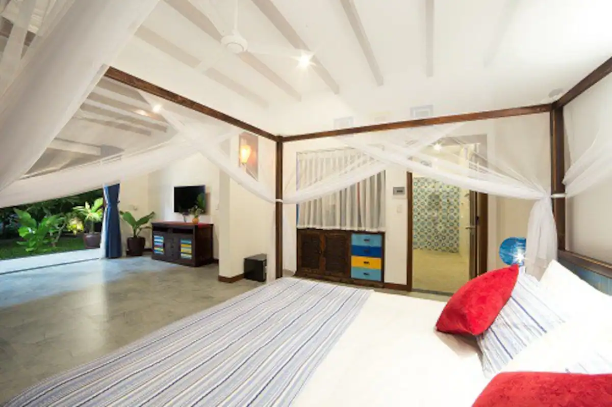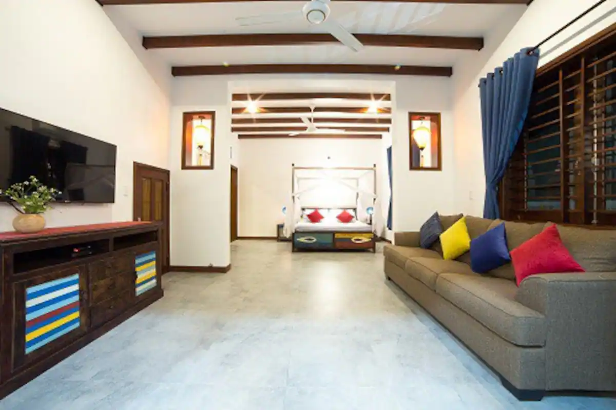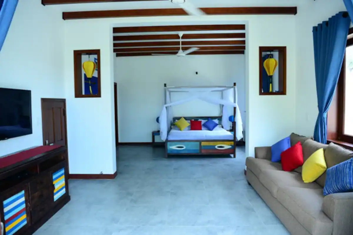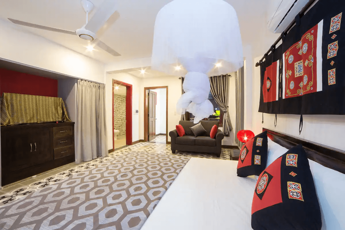 Each of the 4 uniquely styled bedrooms offers a king-sized bed, sofa, balcony with a day bed, tables and chairs, air conditioning, ceiling fan, Wi-Fi, refrigerator, safe, and a spacious bathroom with shower and hot and cold water. The Air Room on the 3rd floor even includes a bathtub.