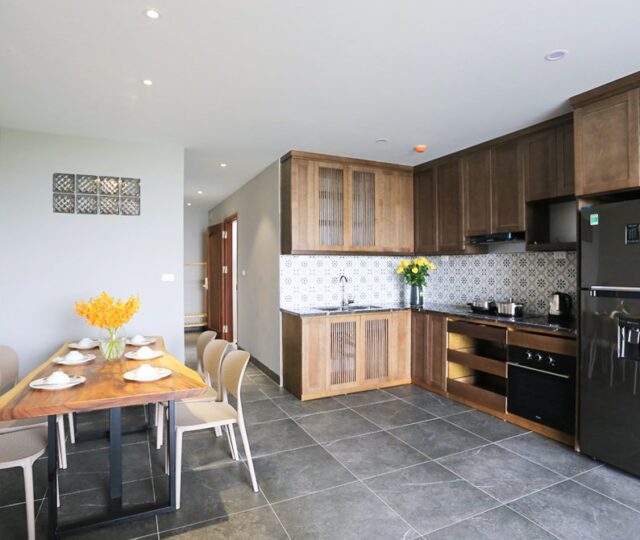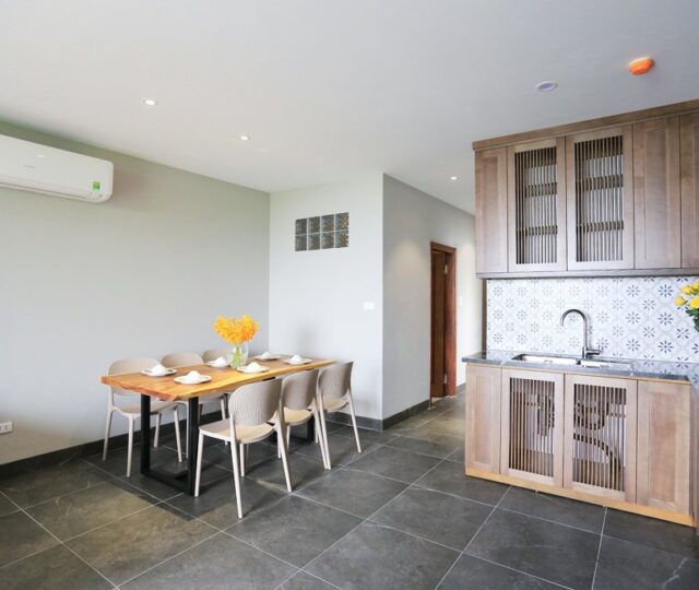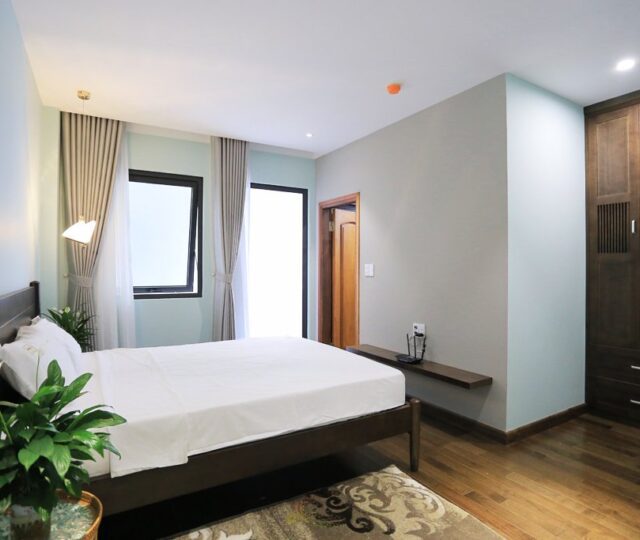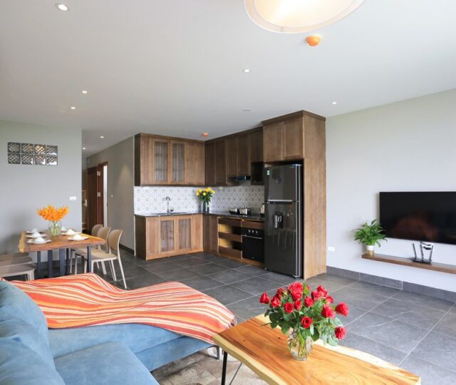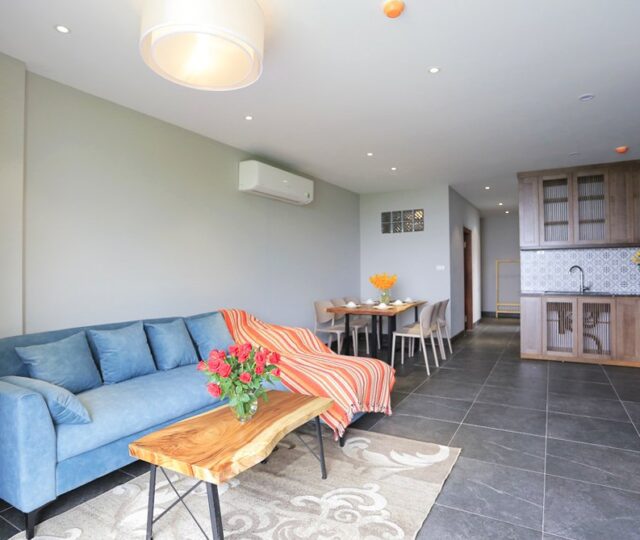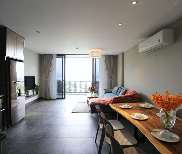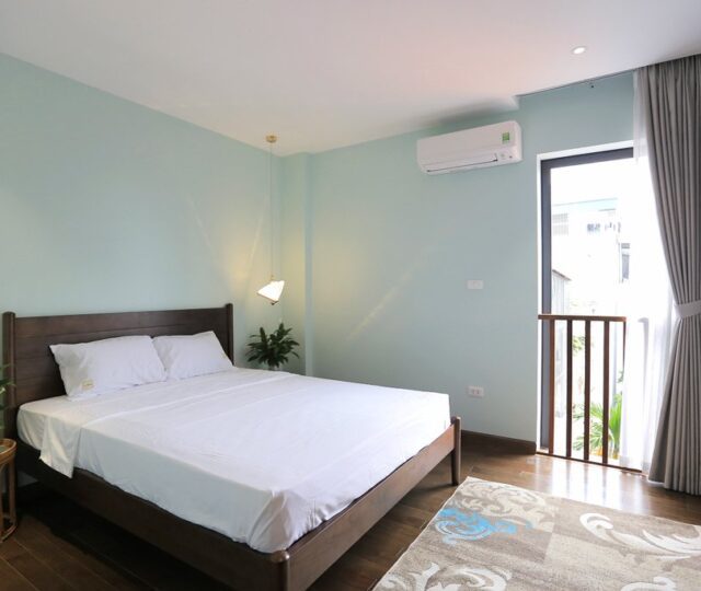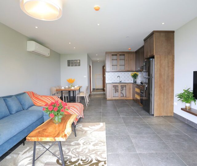 Renovated 2-bedroom serviced apartment on 399 Au Co, Hanoi. Features modern interiors, full furnishings, weekly housekeeping, and access to a shared garden and rooftop – ideal for comfortable living near Tay Ho.