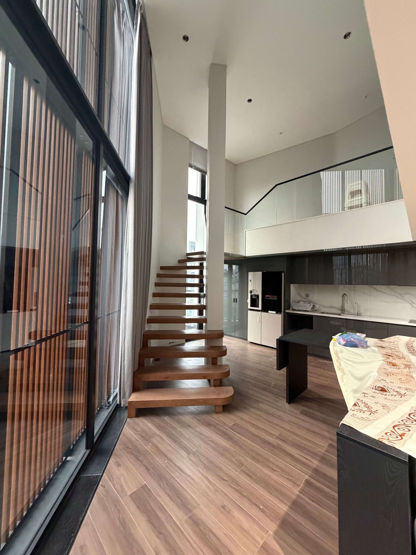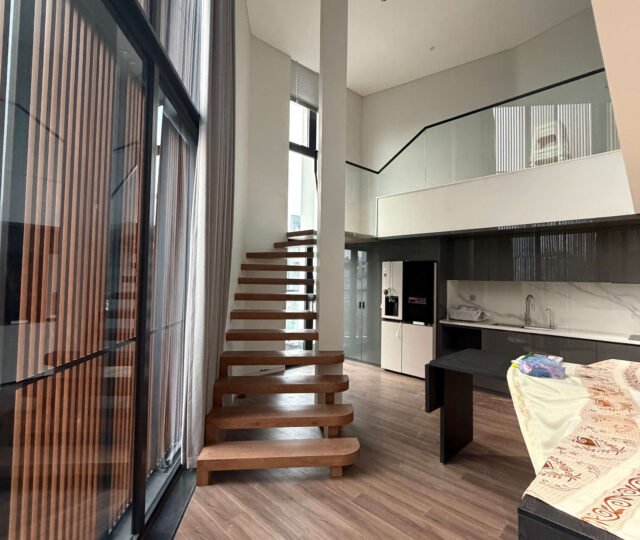 • Expansive Design: The “thông tầng” (open-void) duplex design creates a dramatic, airy atmosphere with soaring ceilings and a private balcony for outdoor relaxation.