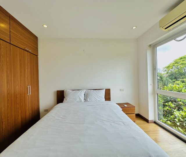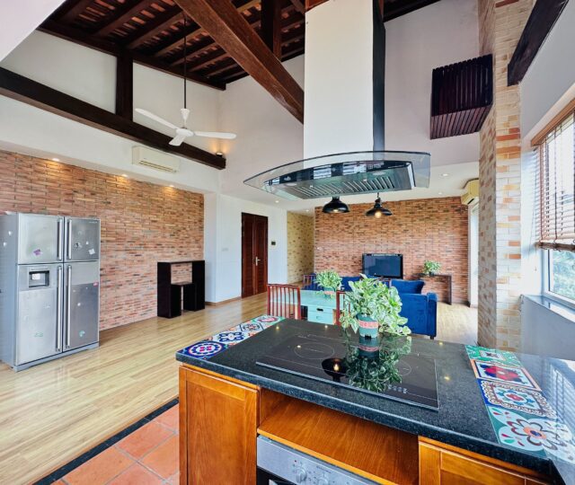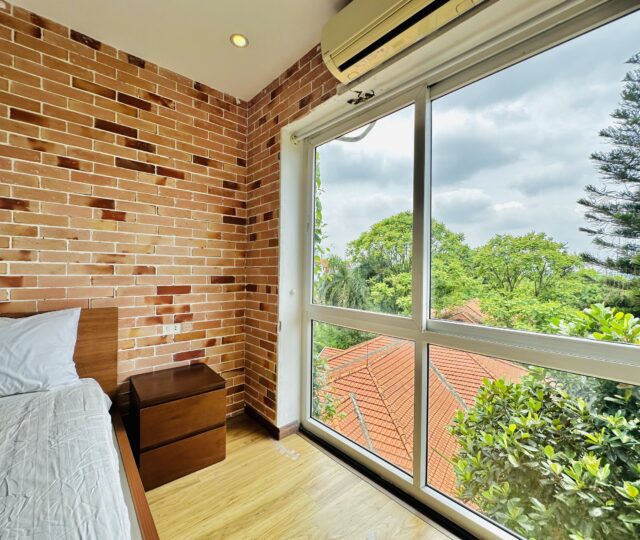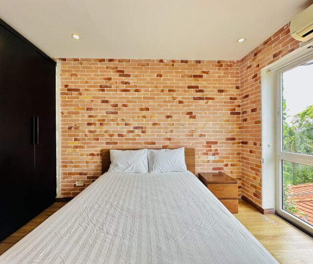 The one you’ve been waiting for ! Unique 2-bedroom apartment in a quiet corner of Dang Thai Mai, Hanoi. Features exposed facebrick walls, abundant windows, and lush greenery – a peaceful, light-filled retreat in Tay Ho