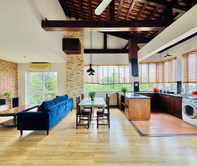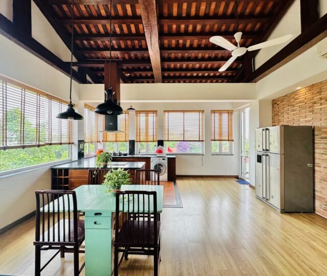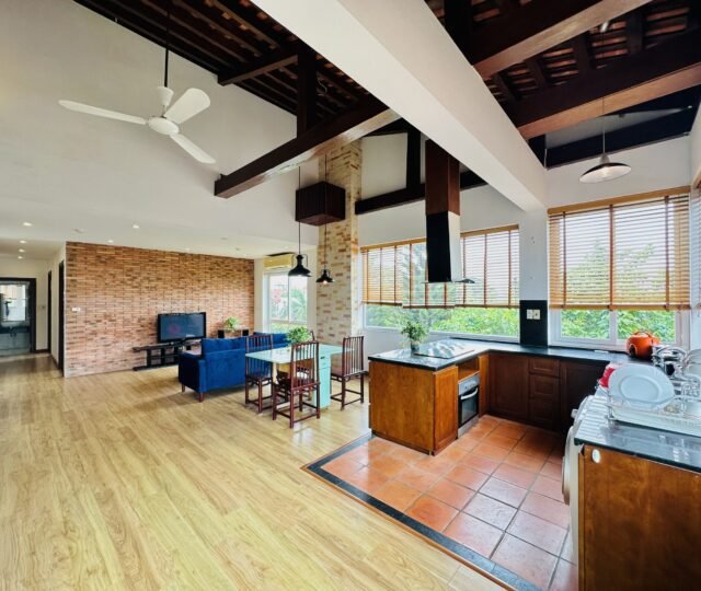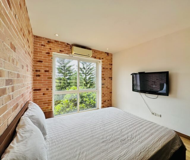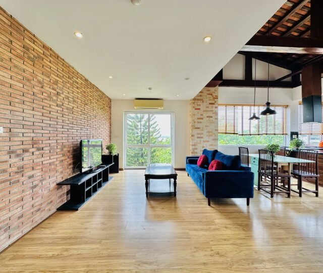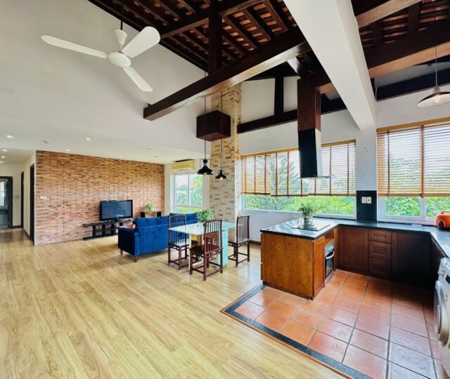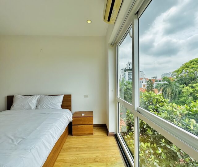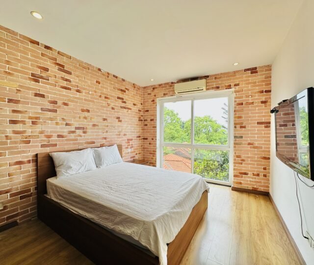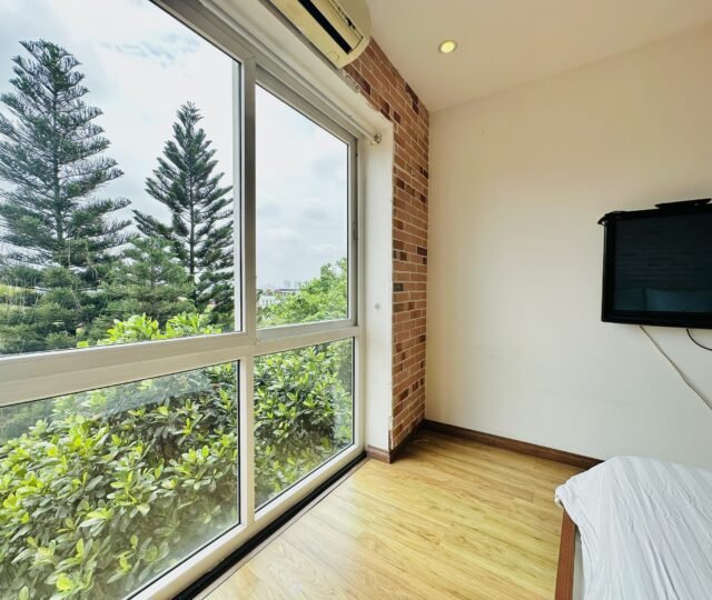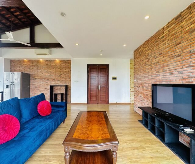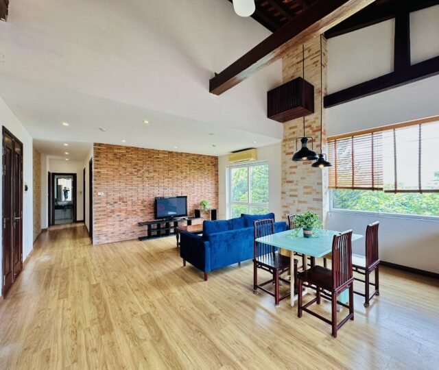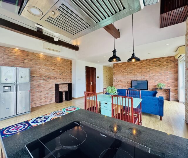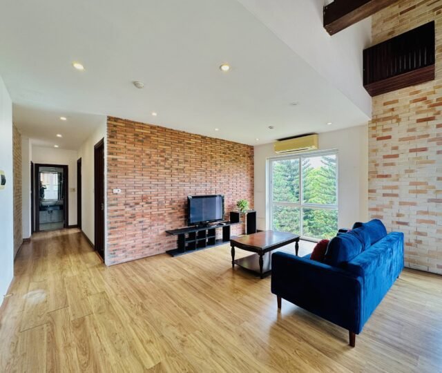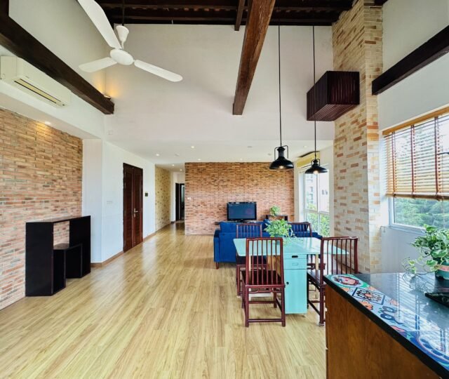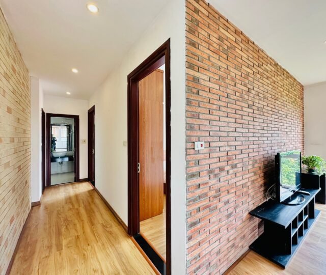 The one you’ve been waiting for ! Unique 2-bedroom apartment in a quiet corner of Dang Thai Mai, Hanoi. Features exposed facebrick walls, abundant windows, and lush greenery – a peaceful, light-filled retreat in Tay Ho