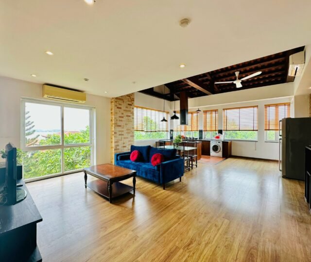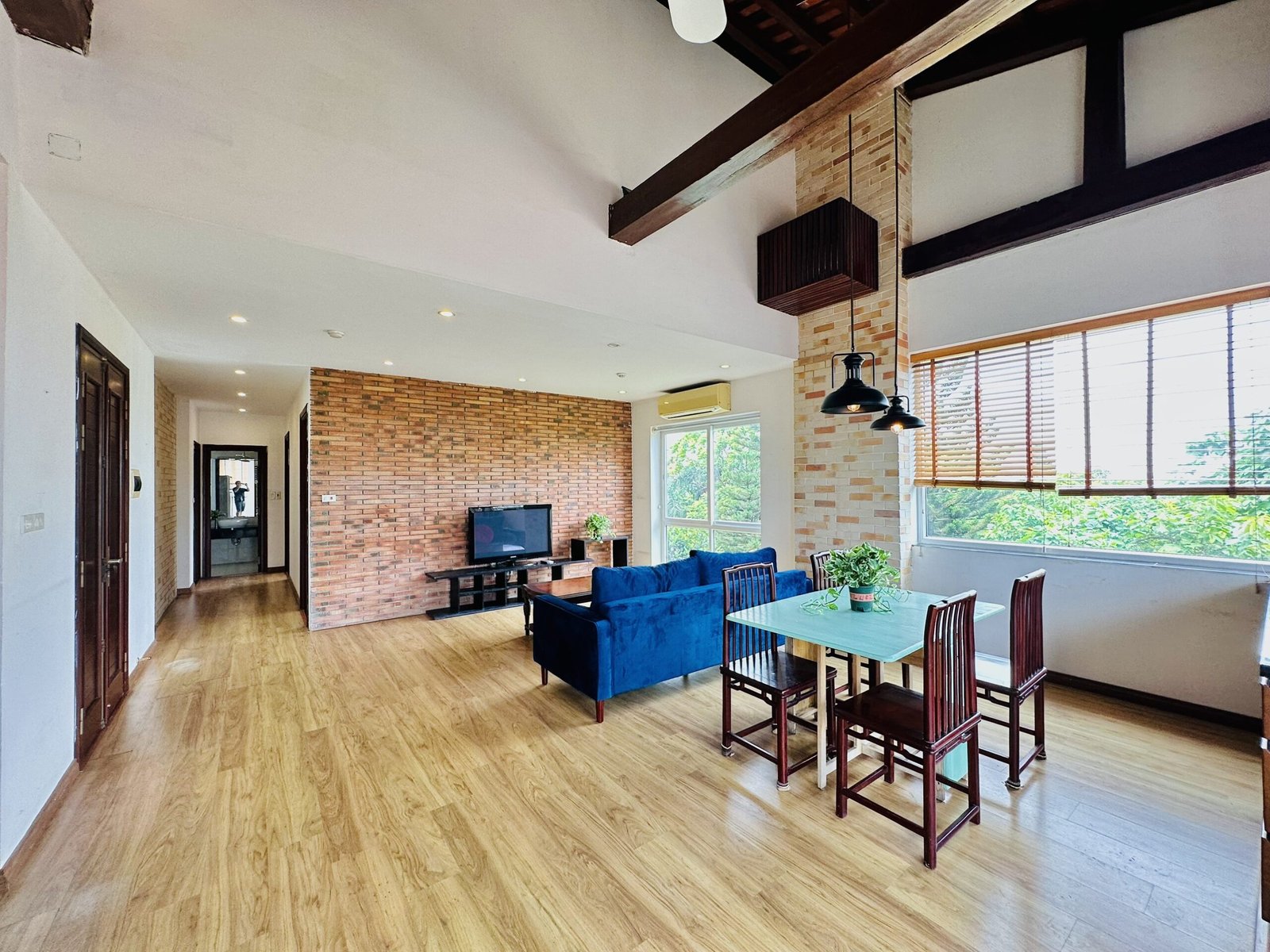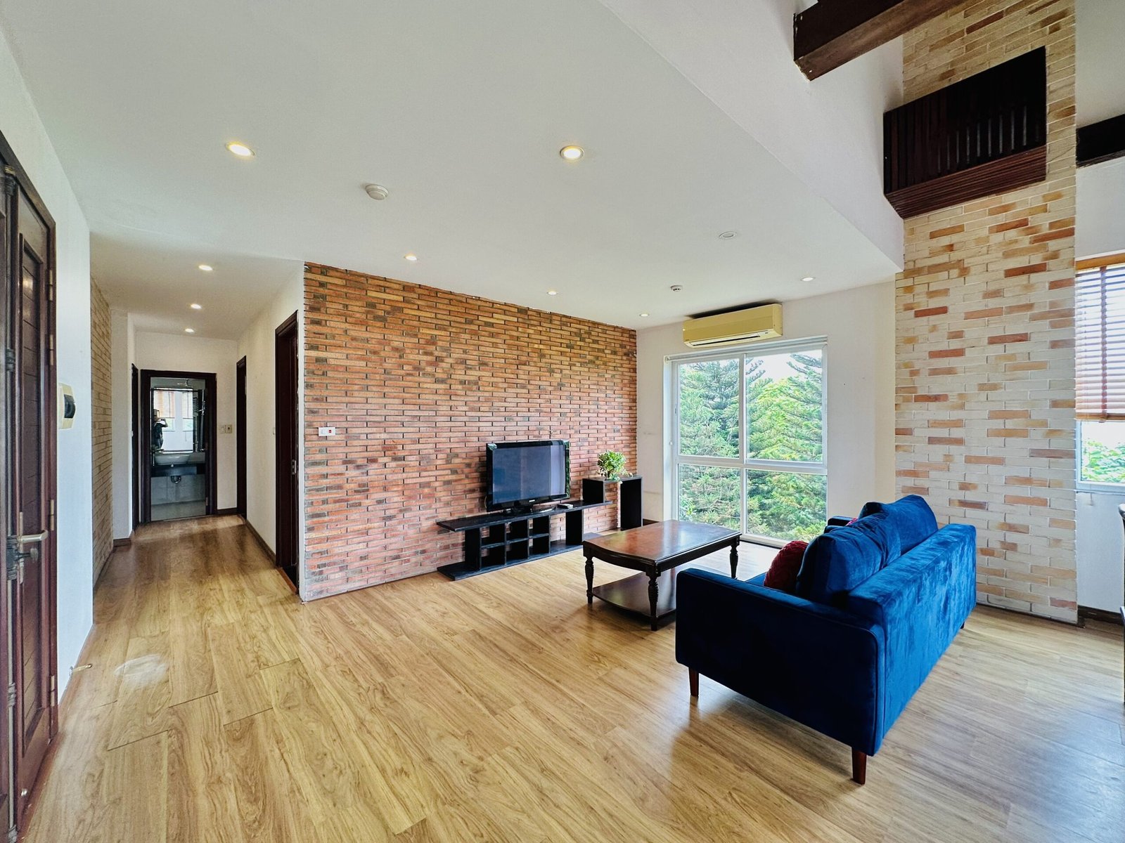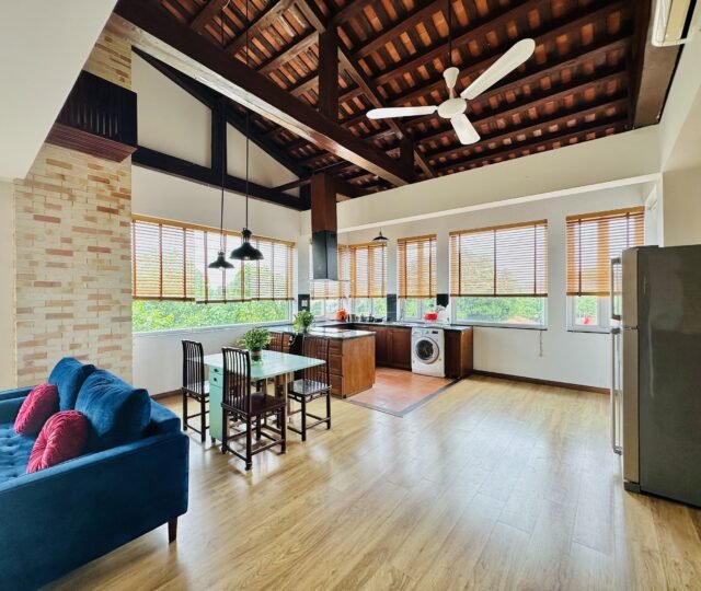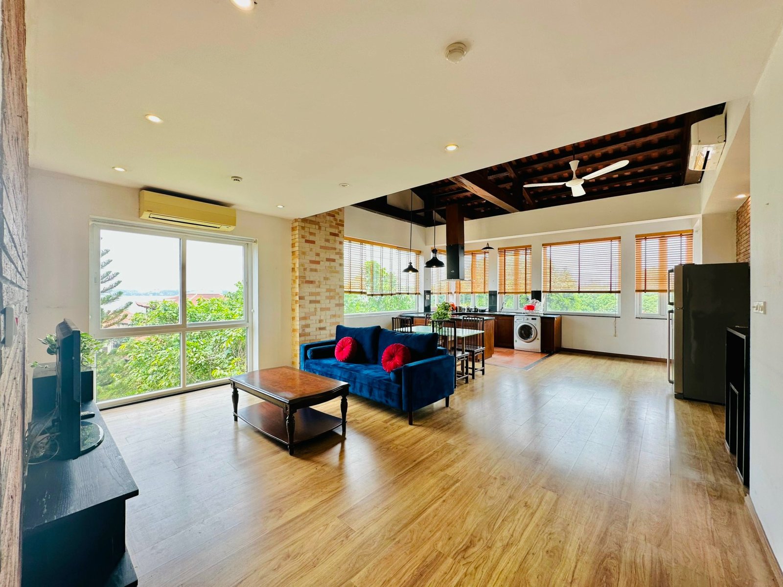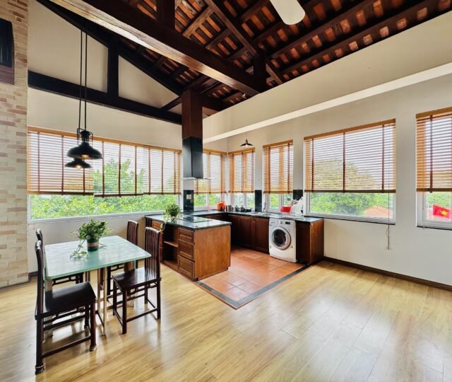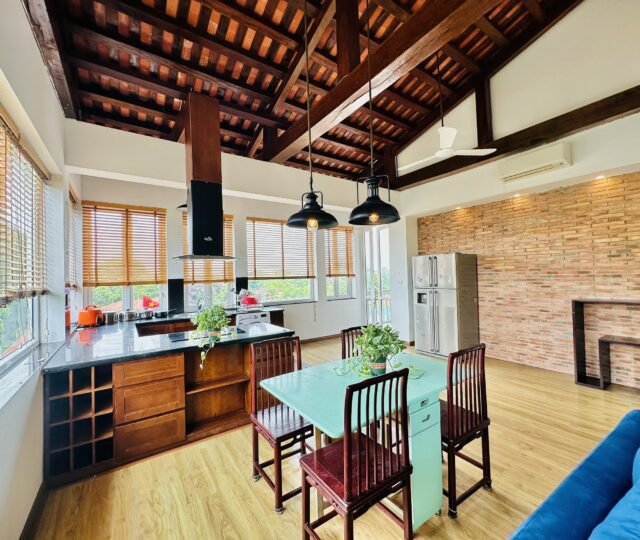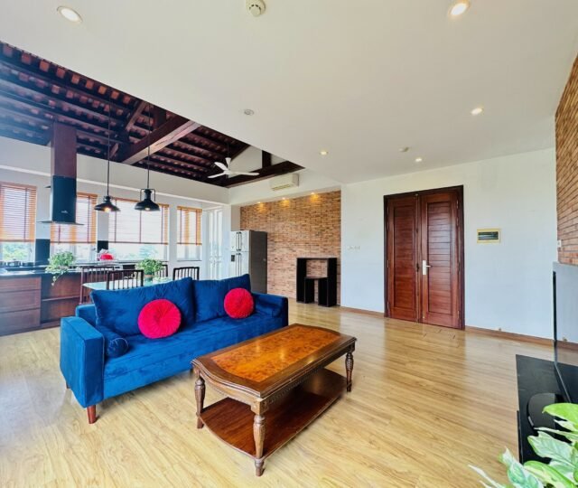 The one you’ve been waiting for ! Unique 2-bedroom apartment in a quiet corner of Dang Thai Mai, Hanoi. Features exposed facebrick walls, abundant windows, and lush greenery – a peaceful, light-filled retreat in Tay Ho