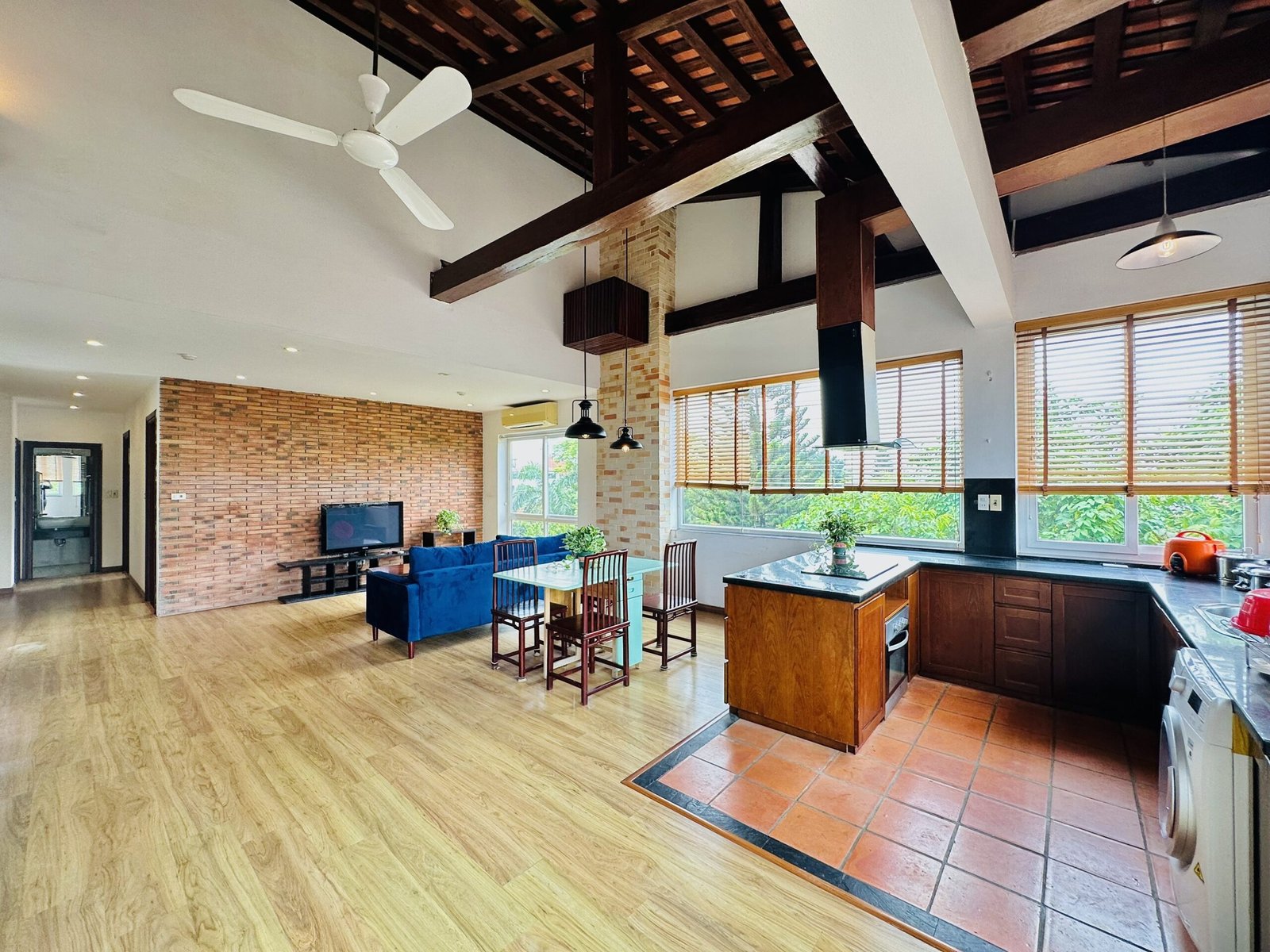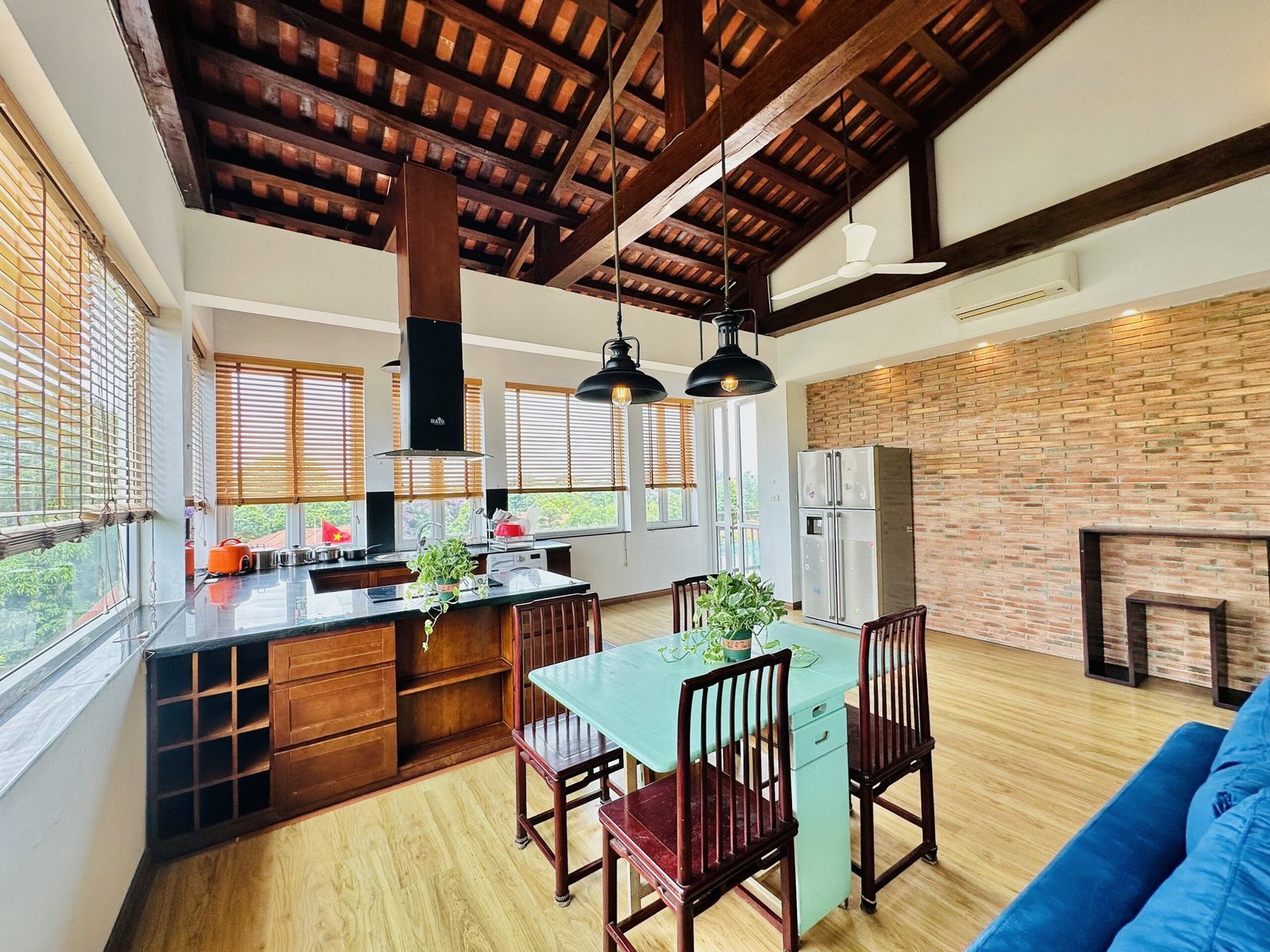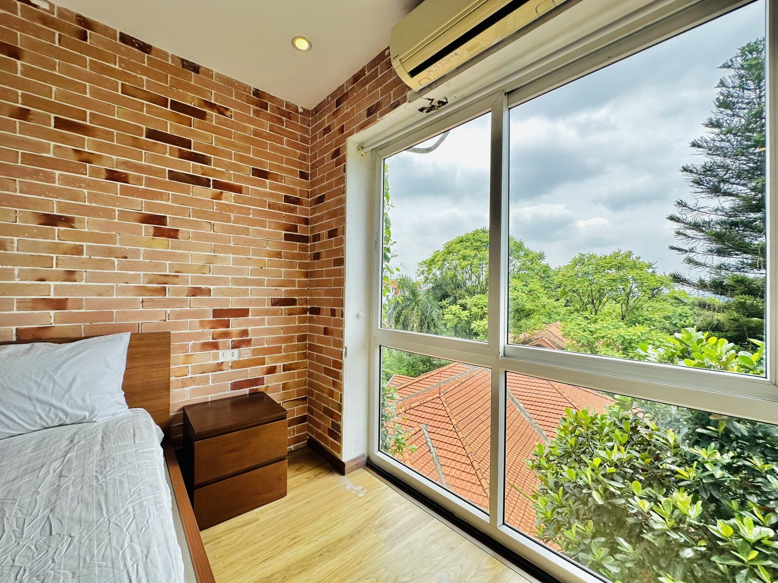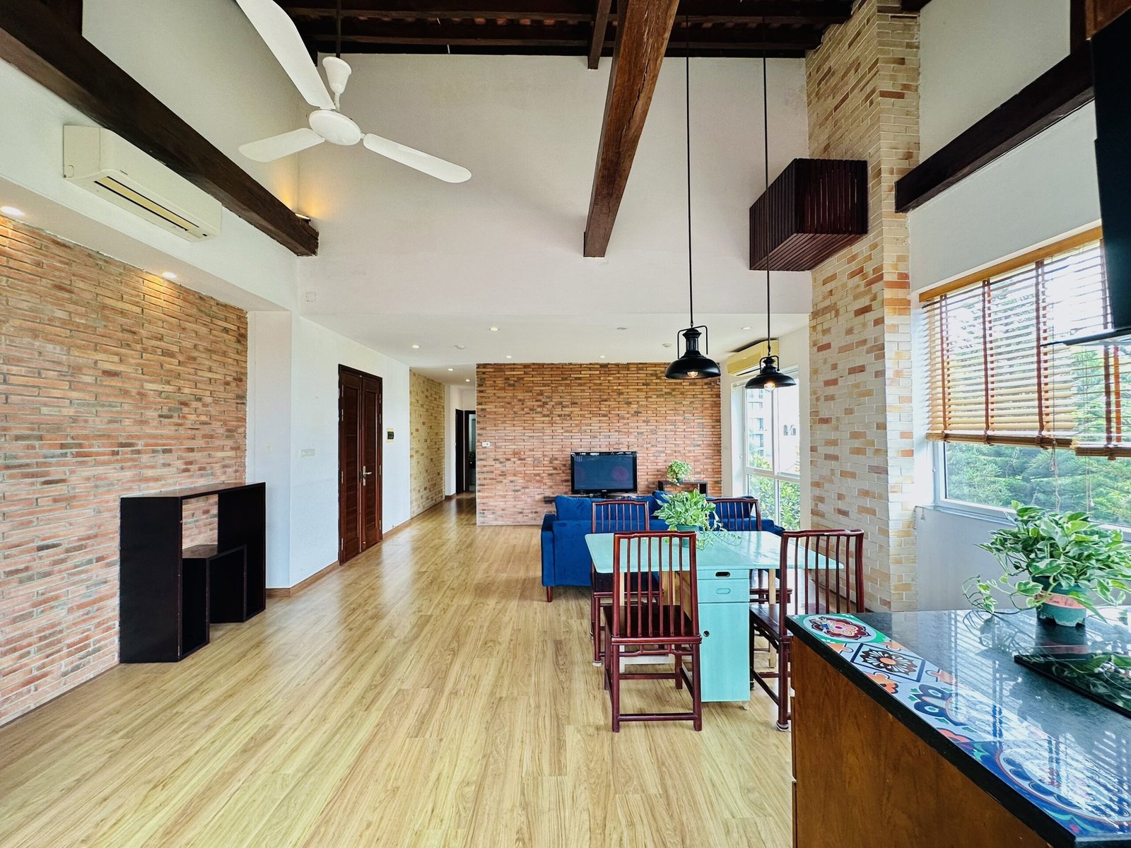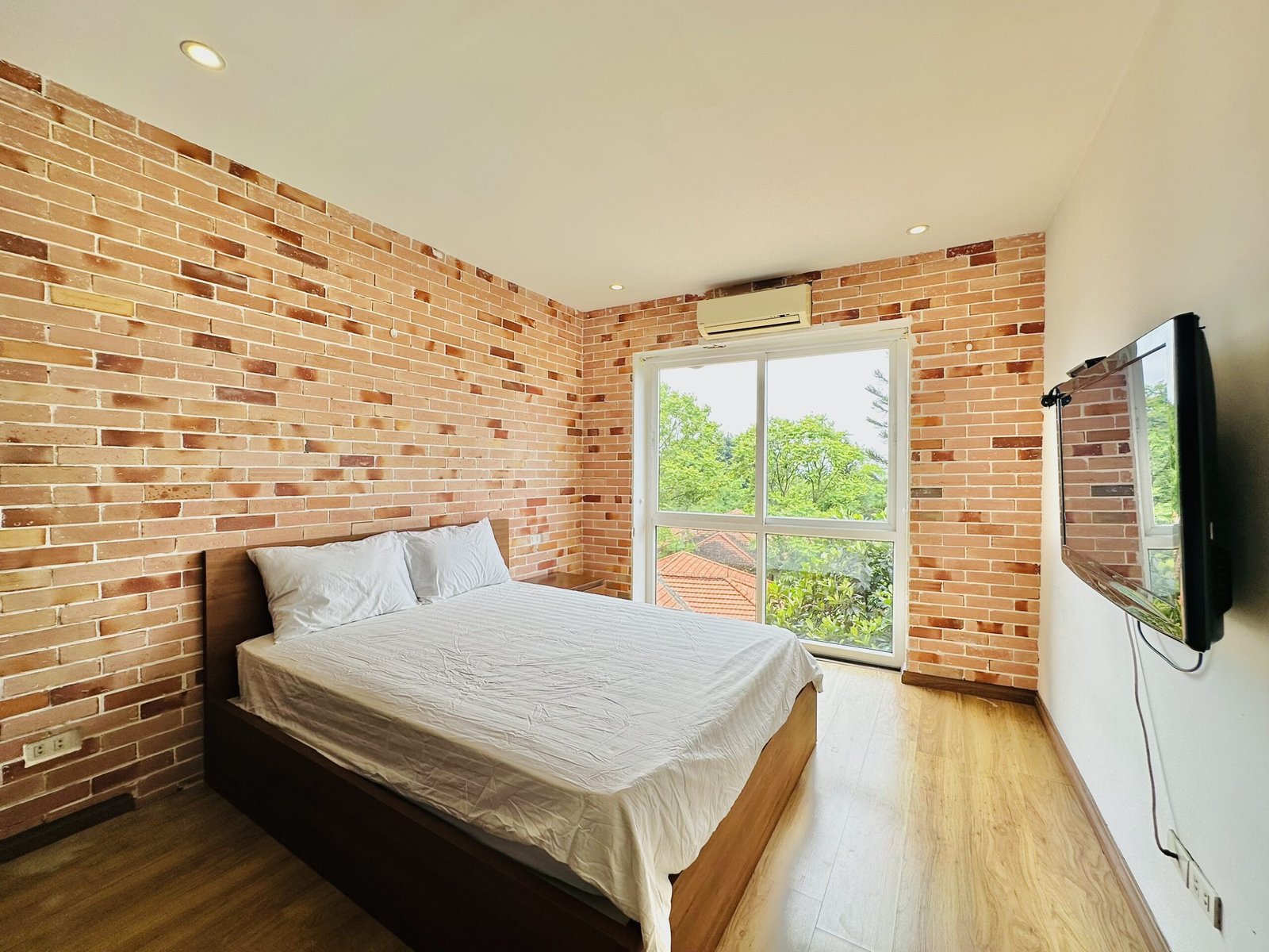 The one you’ve been waiting for ! Unique 2-bedroom apartment in a quiet corner of Dang Thai Mai, Hanoi. Features exposed facebrick walls, abundant windows, and lush greenery – a peaceful, light-filled retreat in Tay Ho
