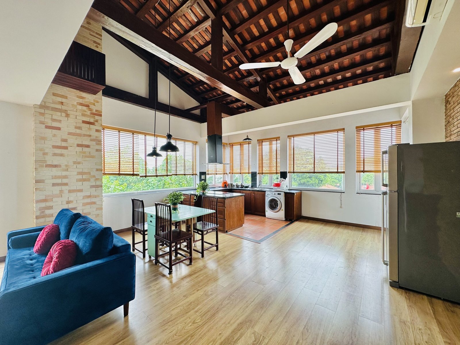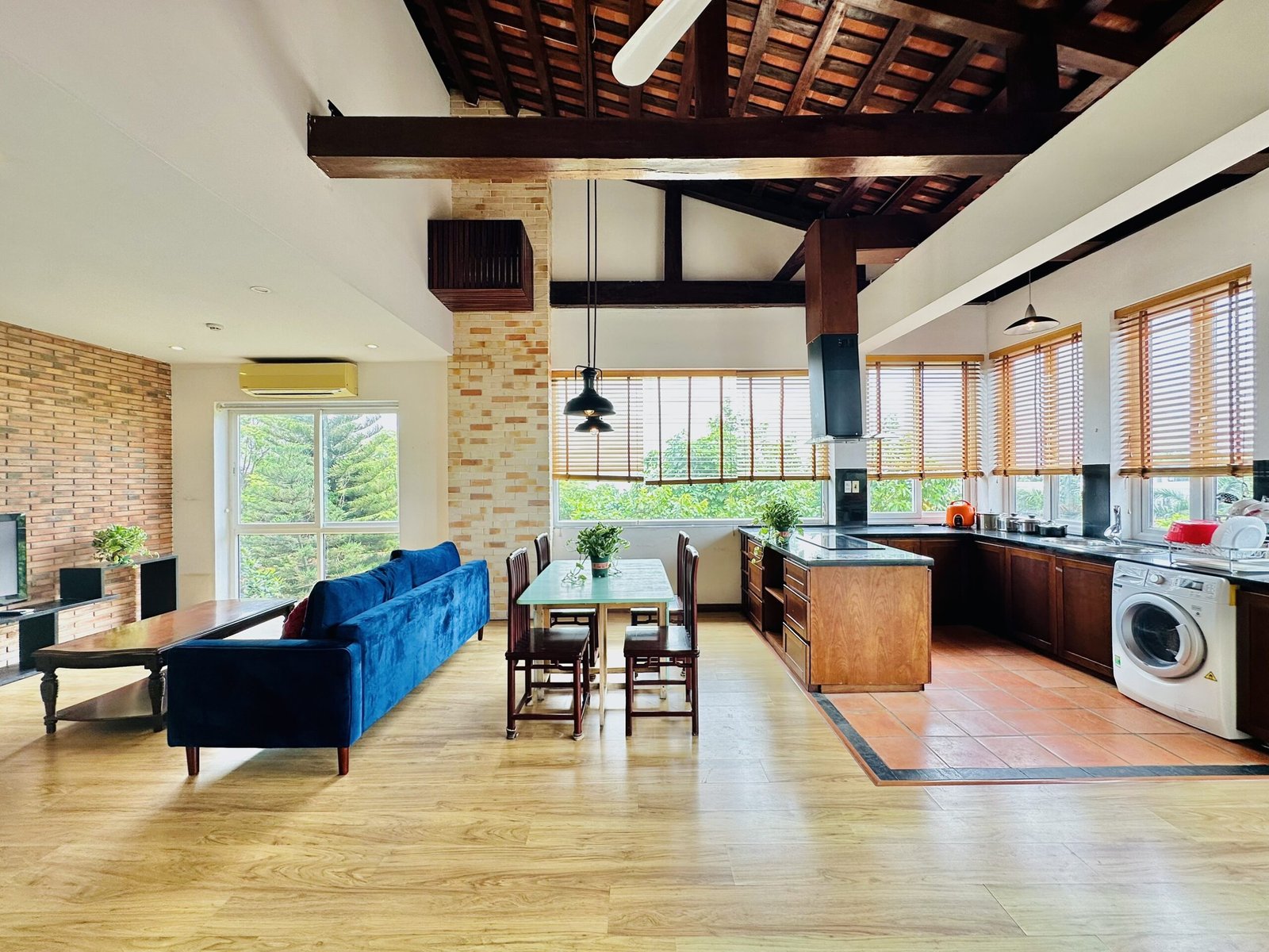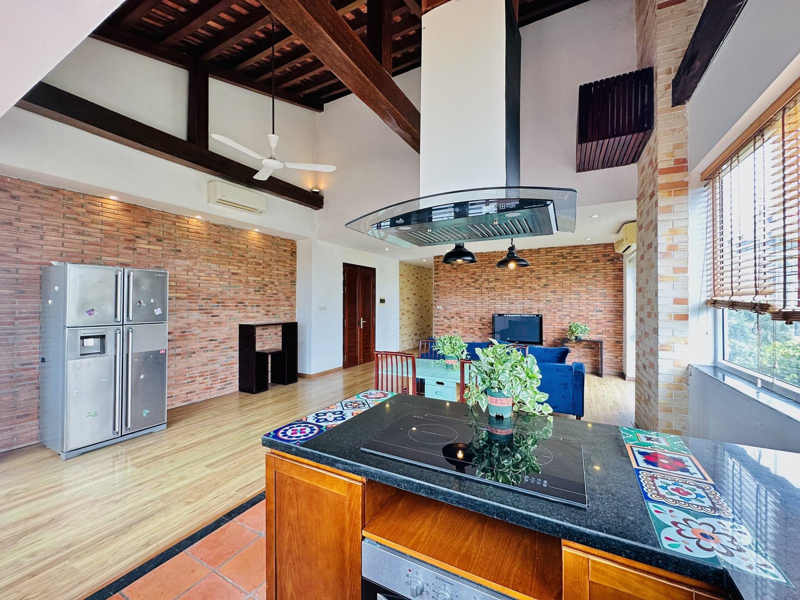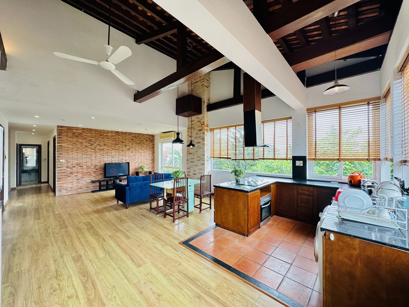 The one you’ve been waiting for ! Unique 2-bedroom apartment in a quiet corner of Dang Thai Mai, Hanoi. Features exposed facebrick walls, abundant windows, and lush greenery – a peaceful, light-filled retreat in Tay Ho