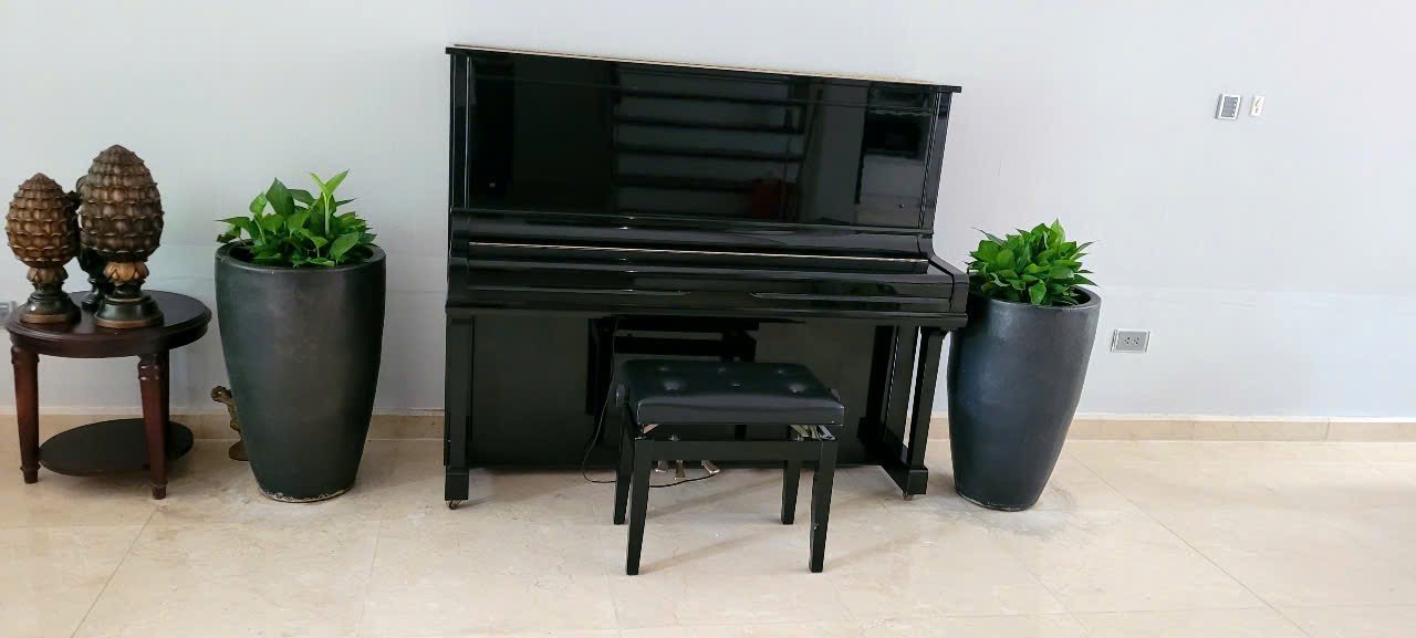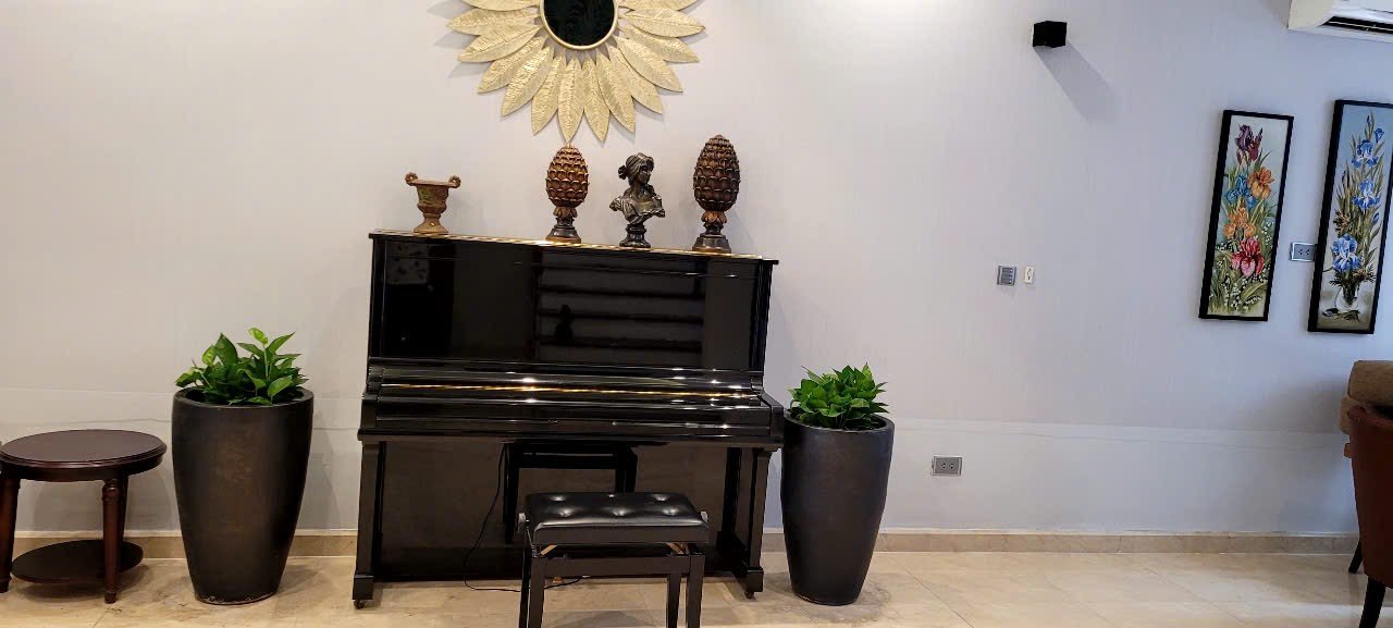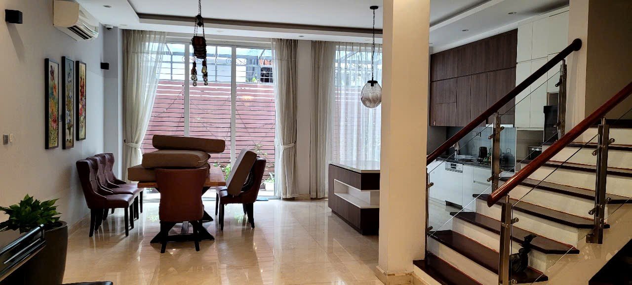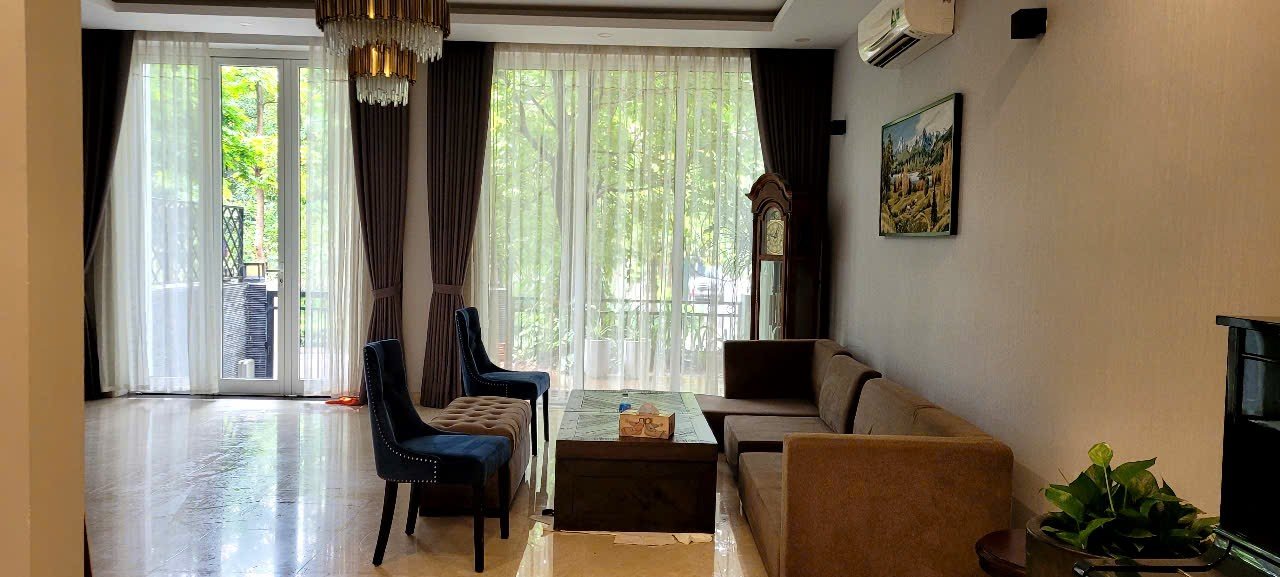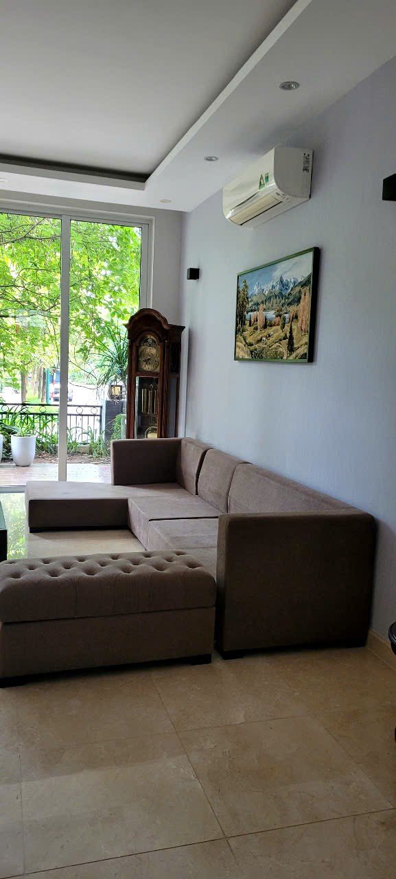 Spacious and fully furnished villa for rent in Ciputra K2-20, Hanoi. The home includes 3 bedrooms, 4 bathrooms, a family living area, and a small dressing room. The property comes as-is with all existing furniture — including a piano, clock, sofas, TV, beds, and wardrobes.