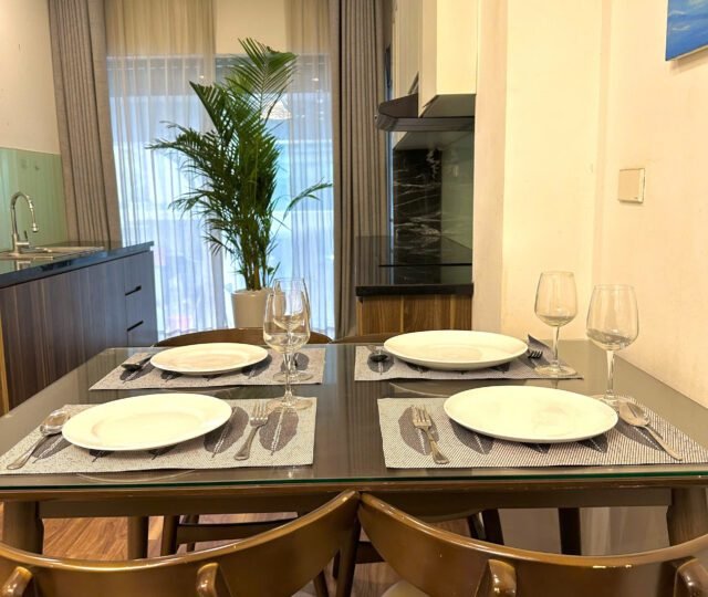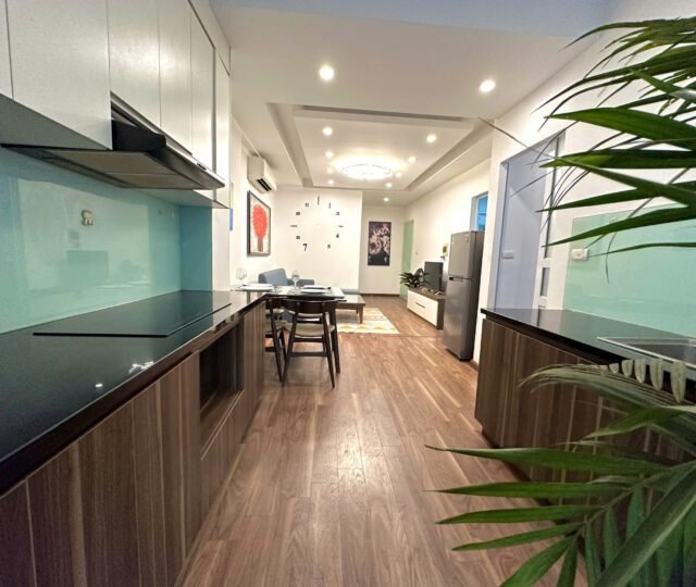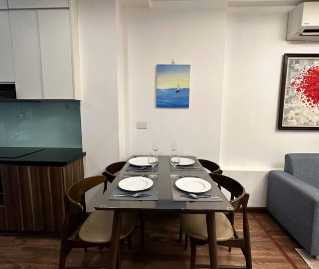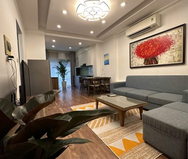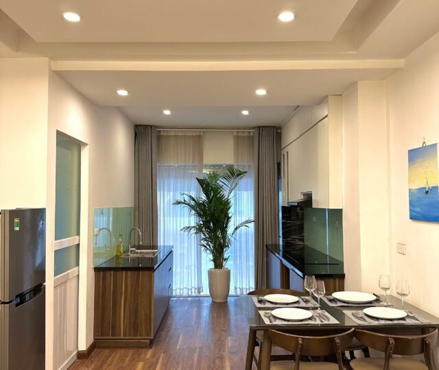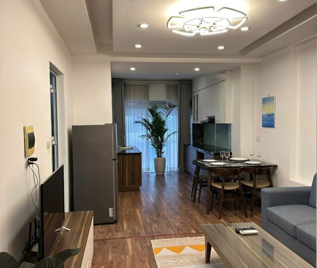 Modern 1-bedroom serviced apartment on To Ngoc Van, Tay Ho, Hanoi. Fully furnished with spacious interiors, natural light, and convenient amenities, including housekeeping. Ideal for expats or families seeking comfort in a prime location near cafes and shops.